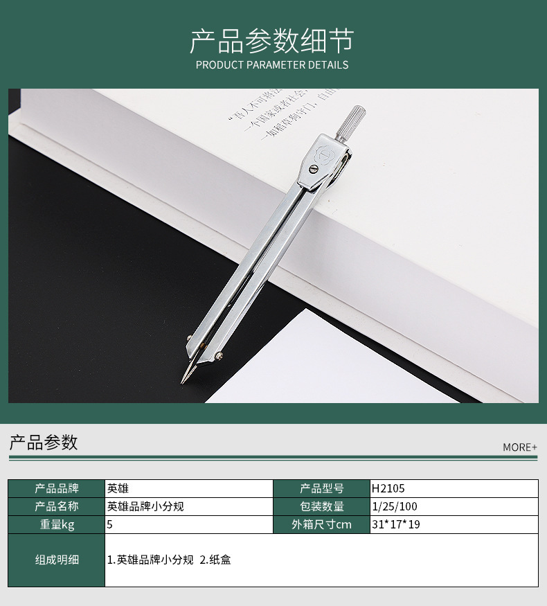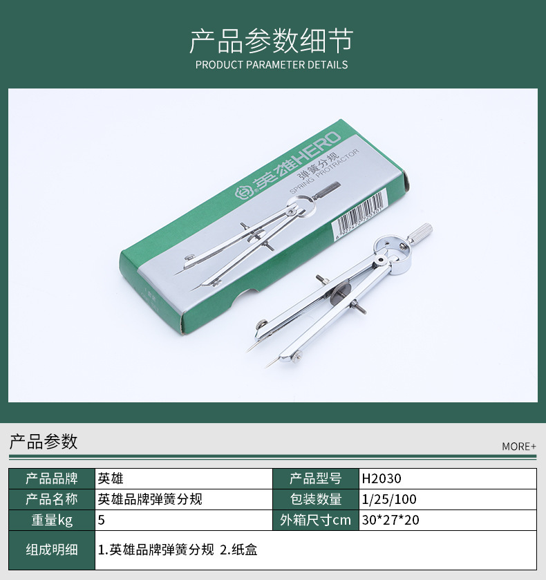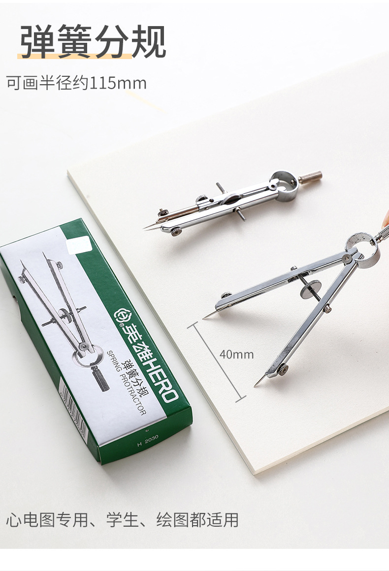 英雄大小分规弹簧分规医用心电图工程制图绘图打版打样用金属圆规