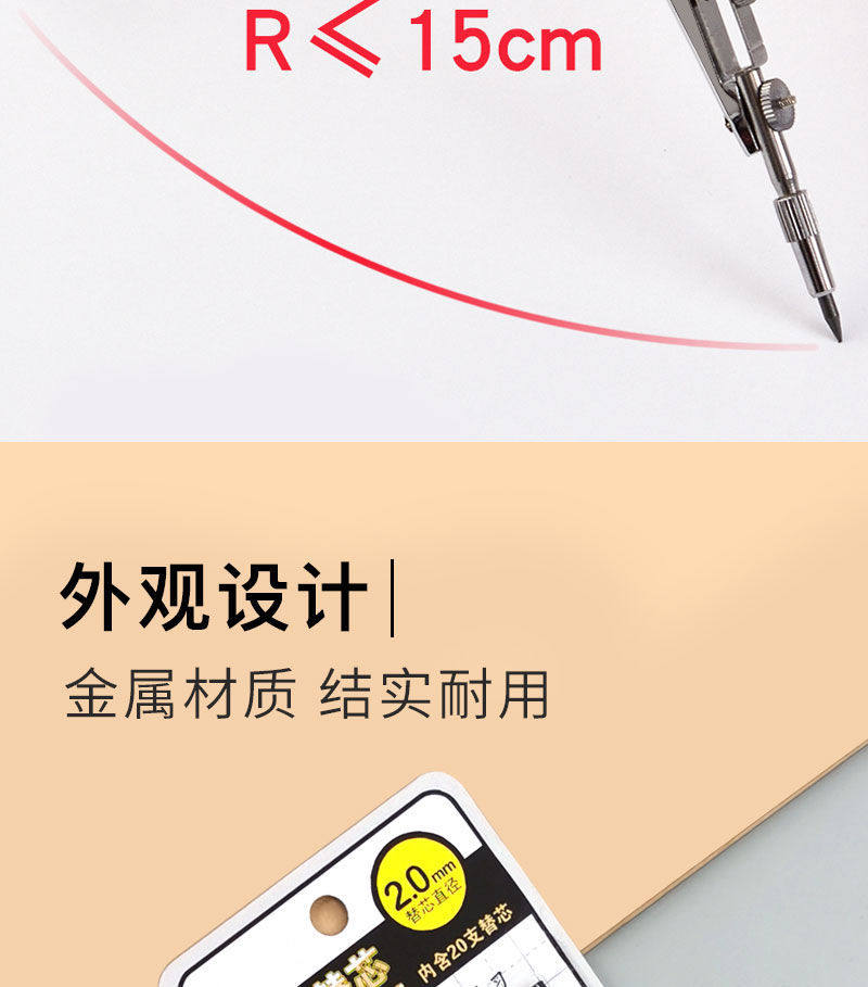 | 2 sets of compasses +20 pieces refill(2套圆规+20支替芯) | USD $2.3 | 885 piece available |