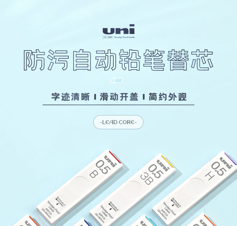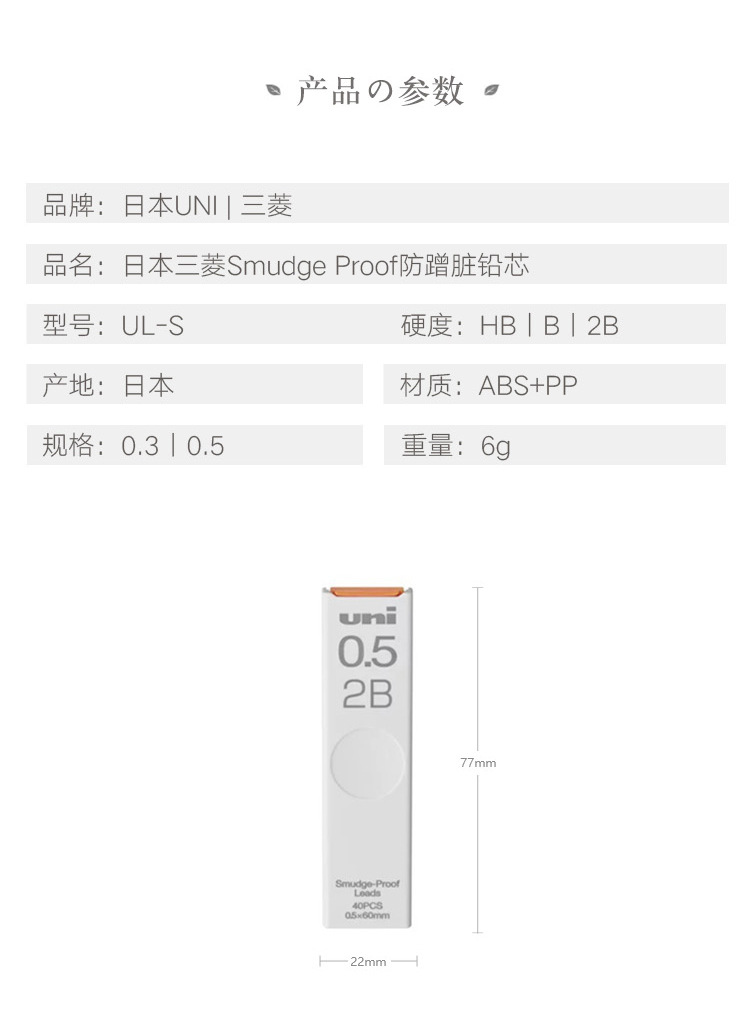 日本uni三菱UL-S自动铅笔笔芯替芯铅芯防污铅笔芯学生用0.5 HB/2B