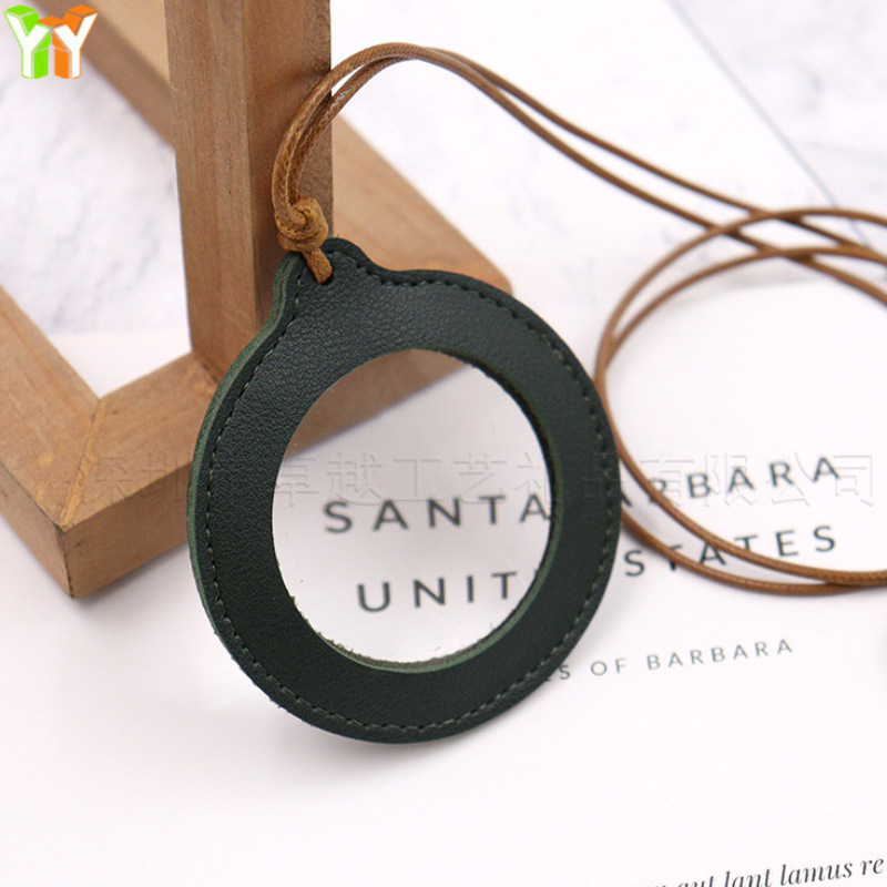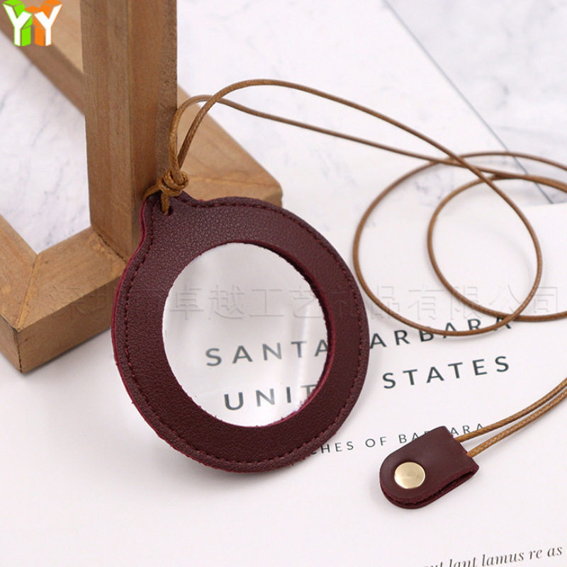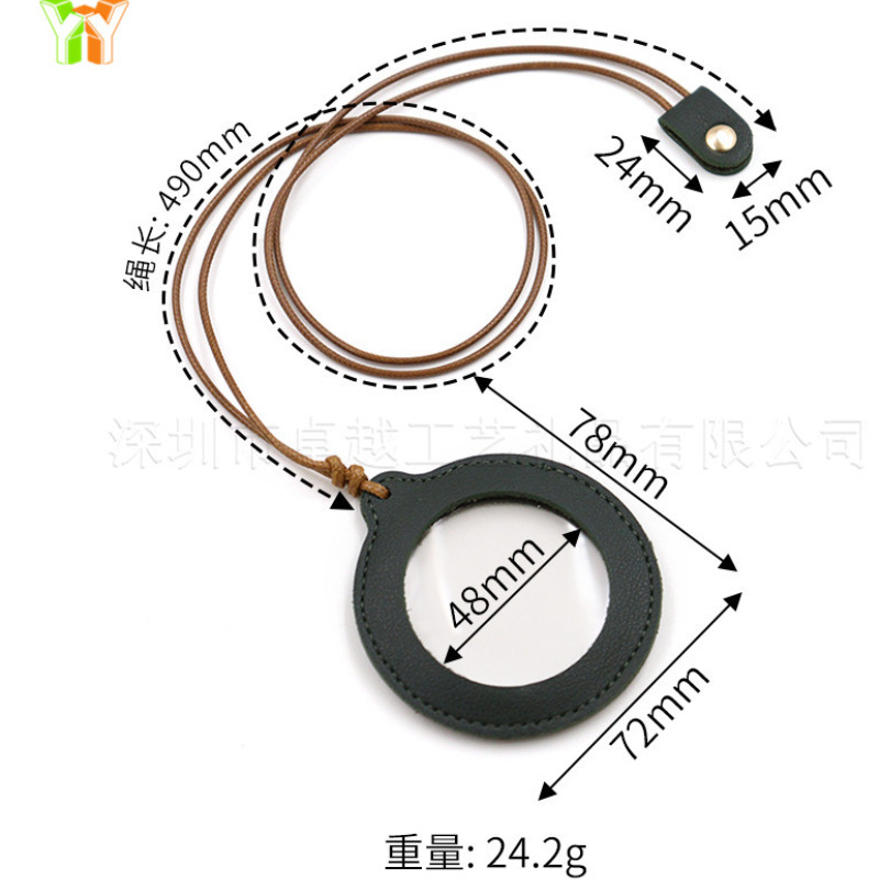 现货70mm挂脖式放大镜PU皮套皮革放大镜10倍放大阅读高档挂绳礼品