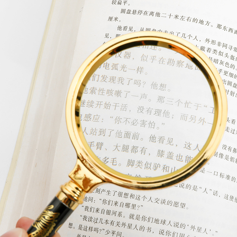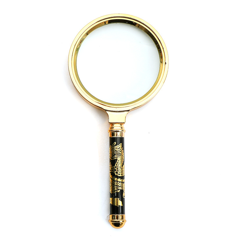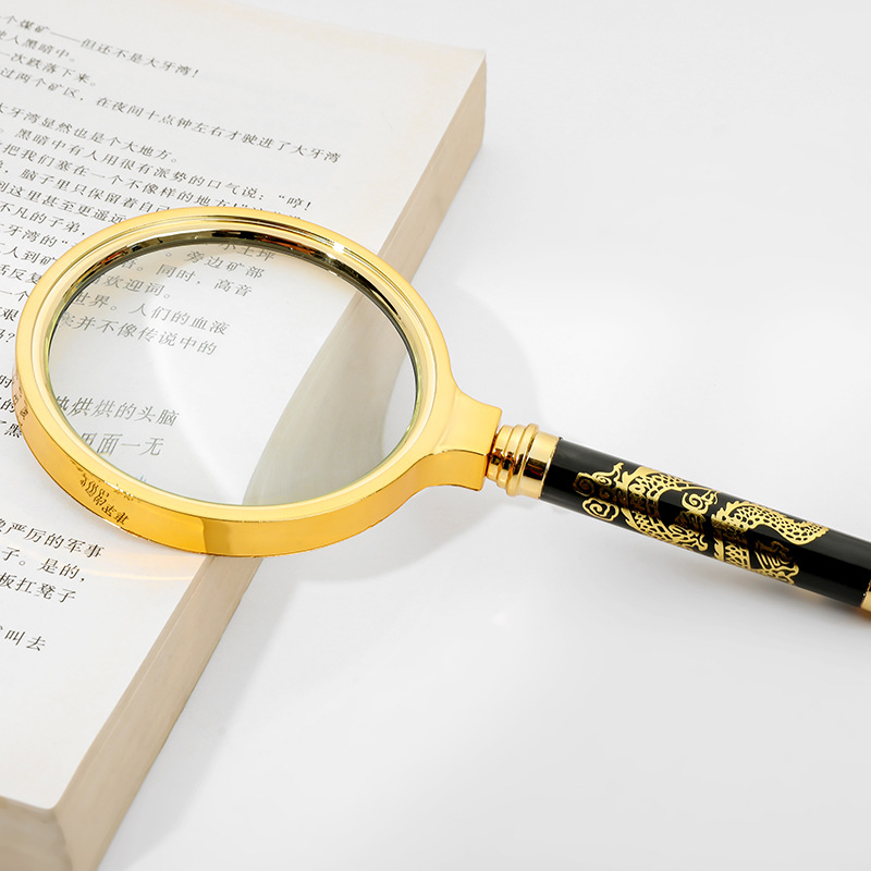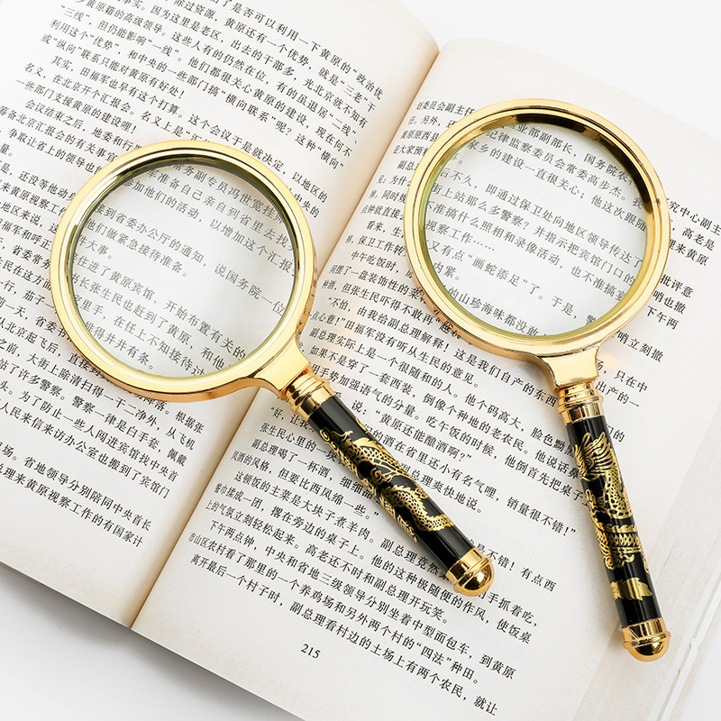 放大镜批发 80mm龙纹柄放大镜高清手持式复古老人阅读放大镜