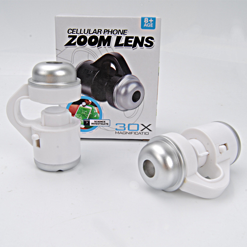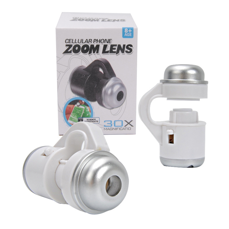 手机外置显微镜珠宝玉石微钜镜头外向放大镜30倍带LED灯外销彩盒