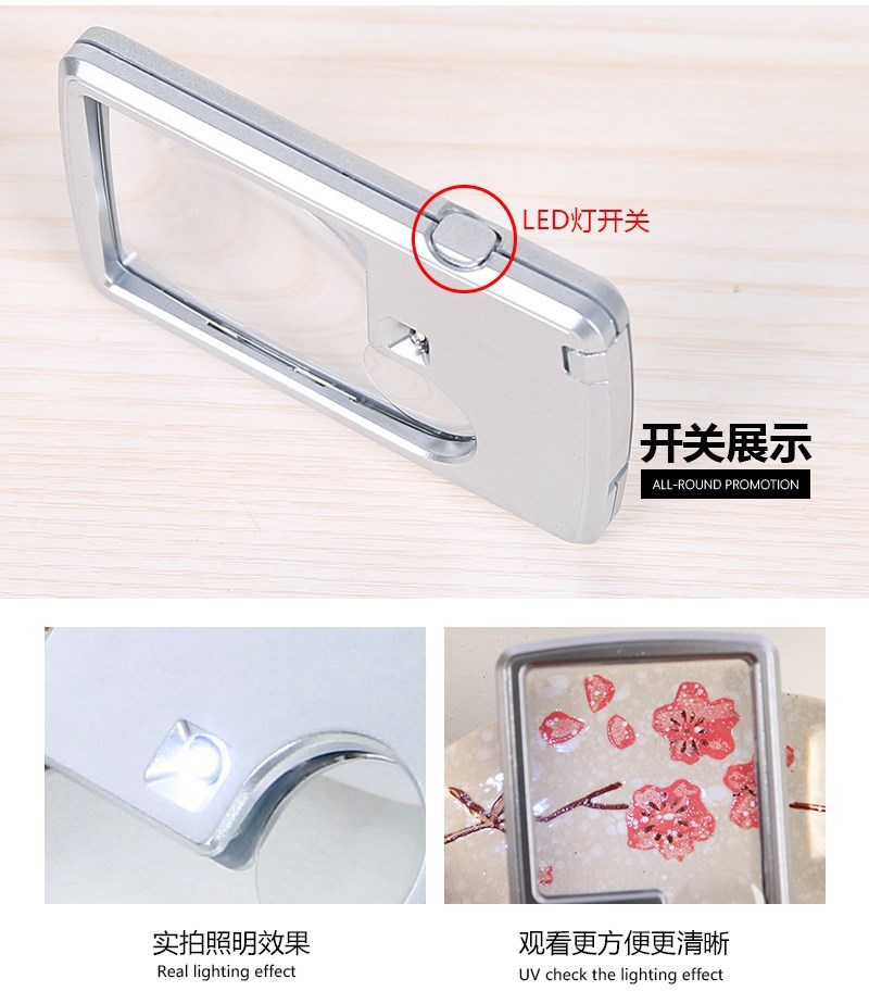 随身便携式多功能20倍卡片式放大镜高清老人阅读高倍带led灯看书
