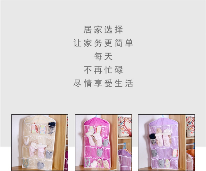 16格袜子内衣收纳挂袋 衣柜悬挂式收纳 墙壁门后兜分类整理袋