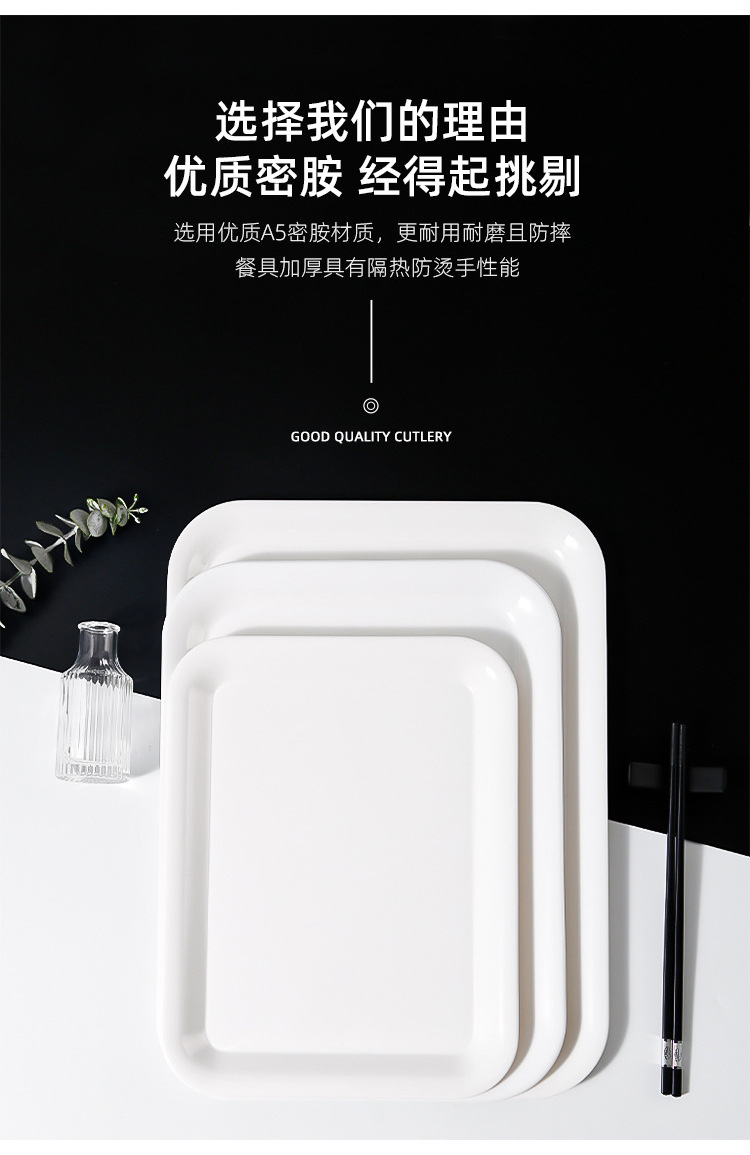 白色密胺长方形托盘饭店食堂酒店商用仿瓷塑料双耳端菜pp托盘餐盘