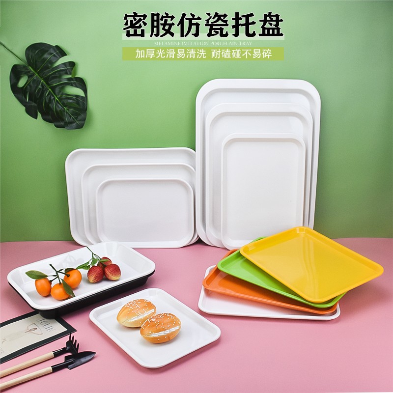 幼儿园托盘 密胺托盘快餐蛋糕盘面包店仿瓷酒店塑料托盘 白色托盘