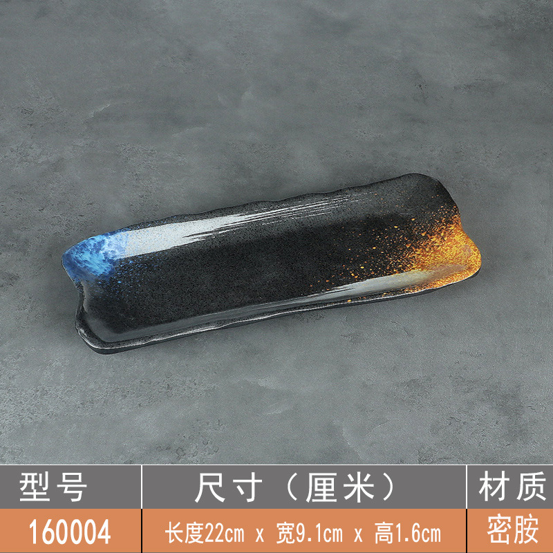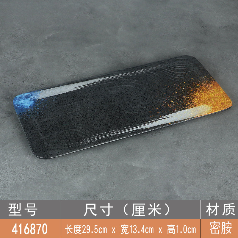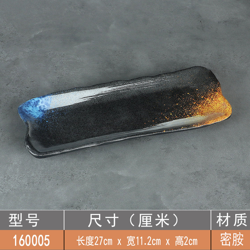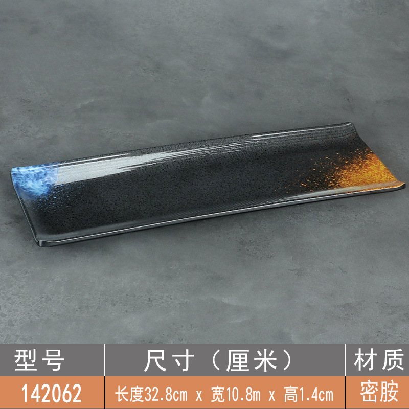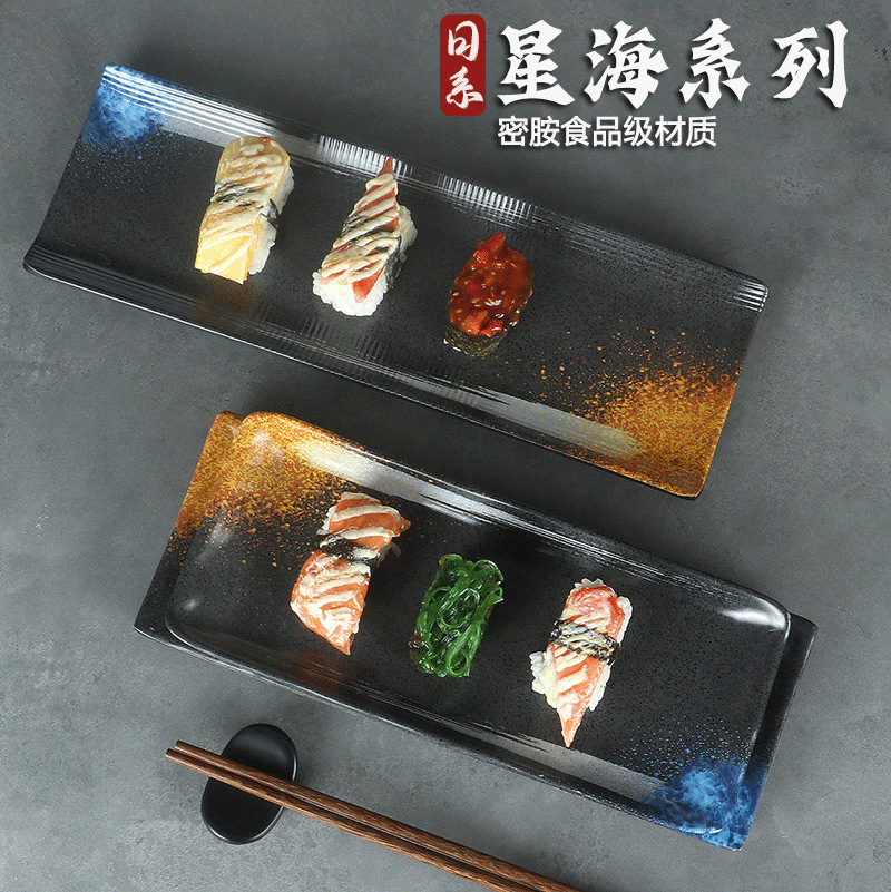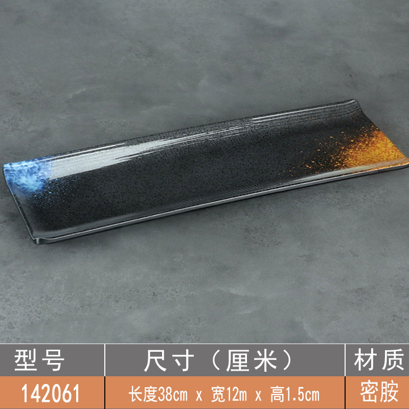日式密胺寿司盘长条盘子平盘糕点摆盘仿瓷黑色点心盘商用细长碟子