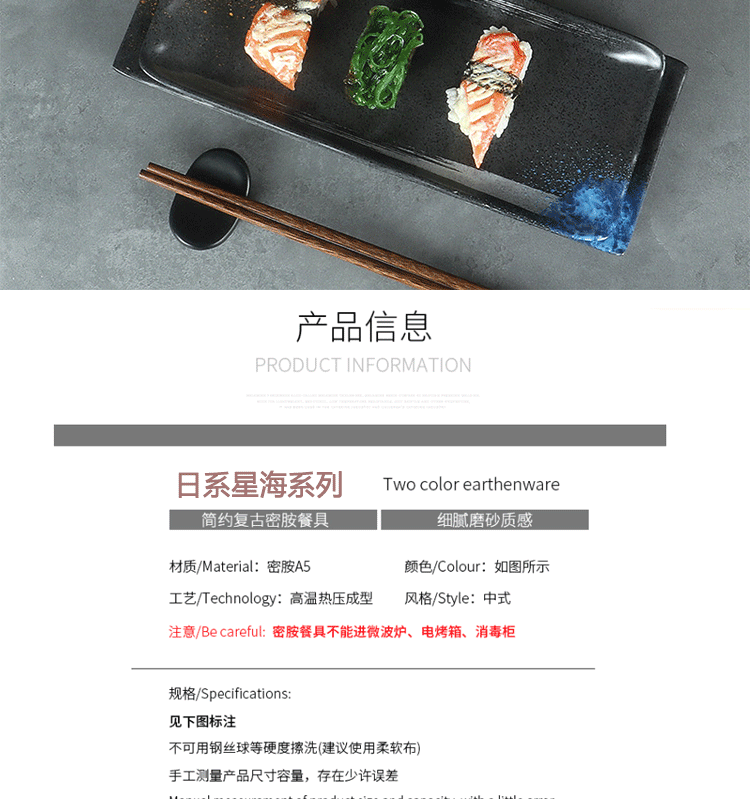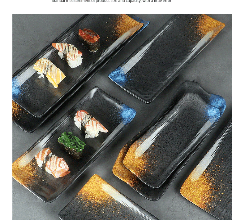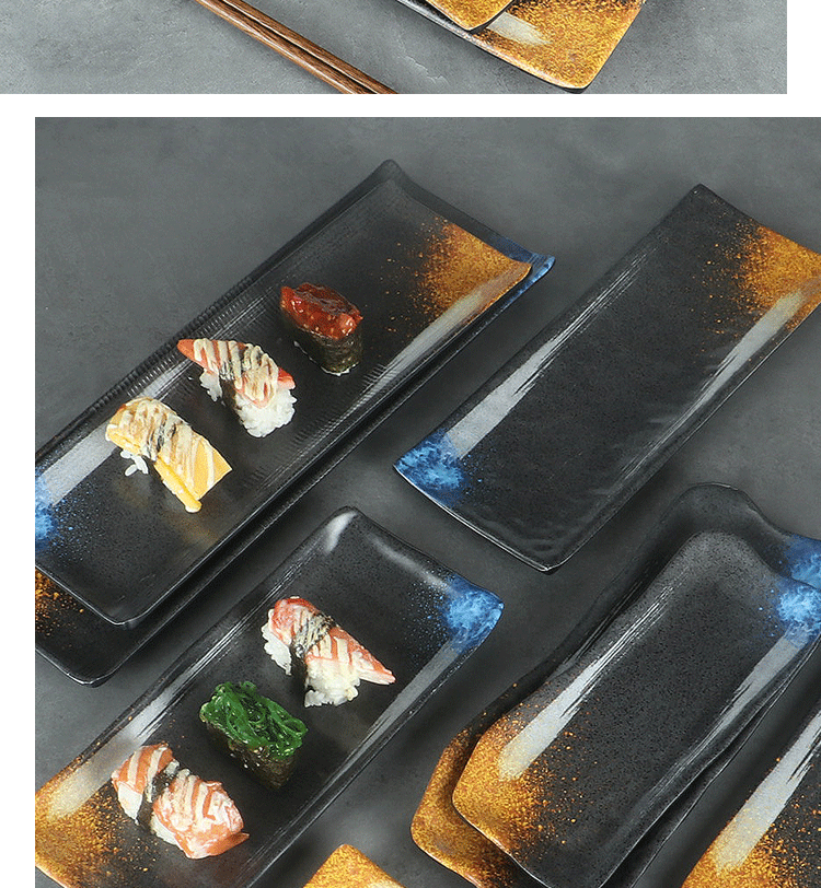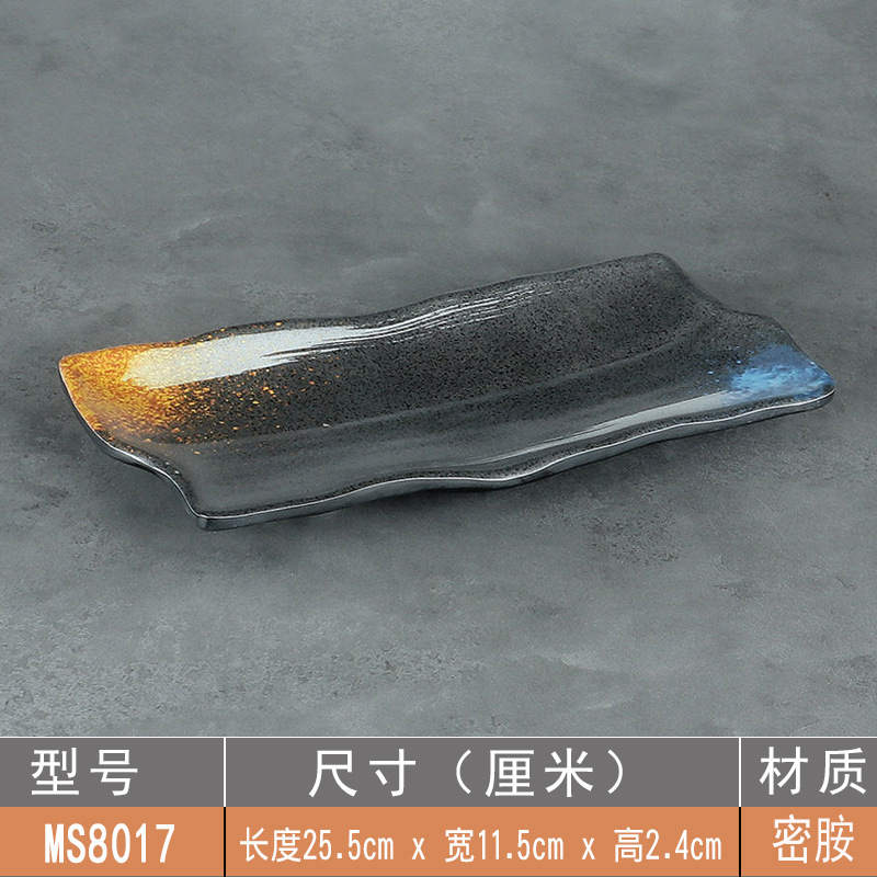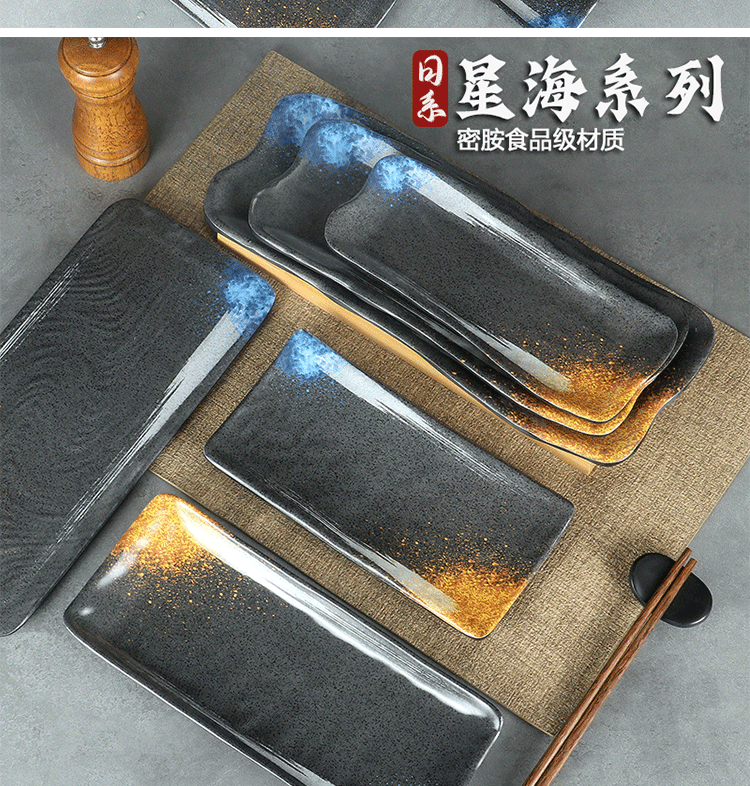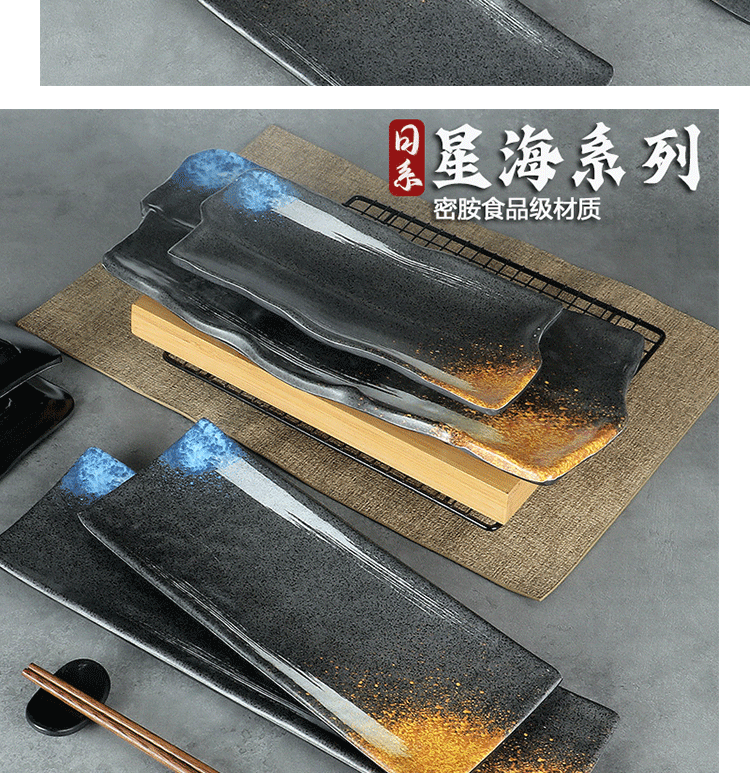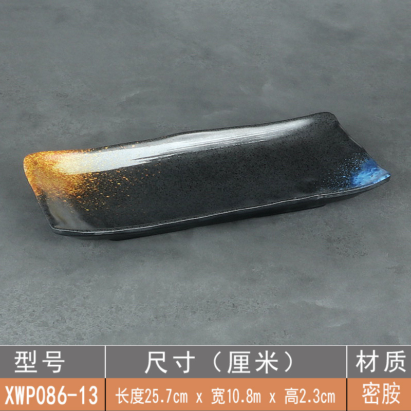 日式密胺寿司盘长条盘子平盘糕点摆盘仿瓷黑色点心盘商用细长碟子