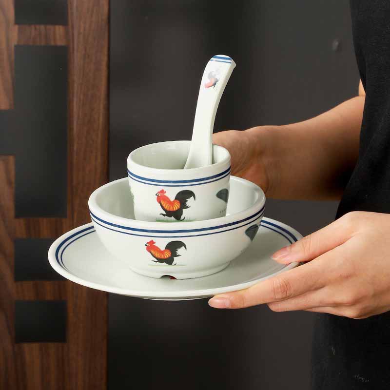 密胺碗怀旧复古公鸡碗抗摔抗高温米饭汤碗餐厅饭店商用加厚密胺碗