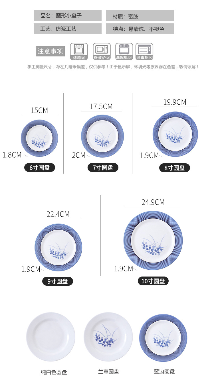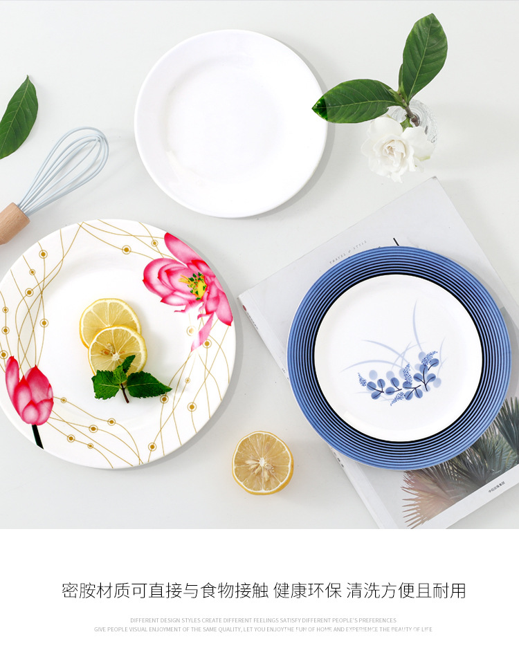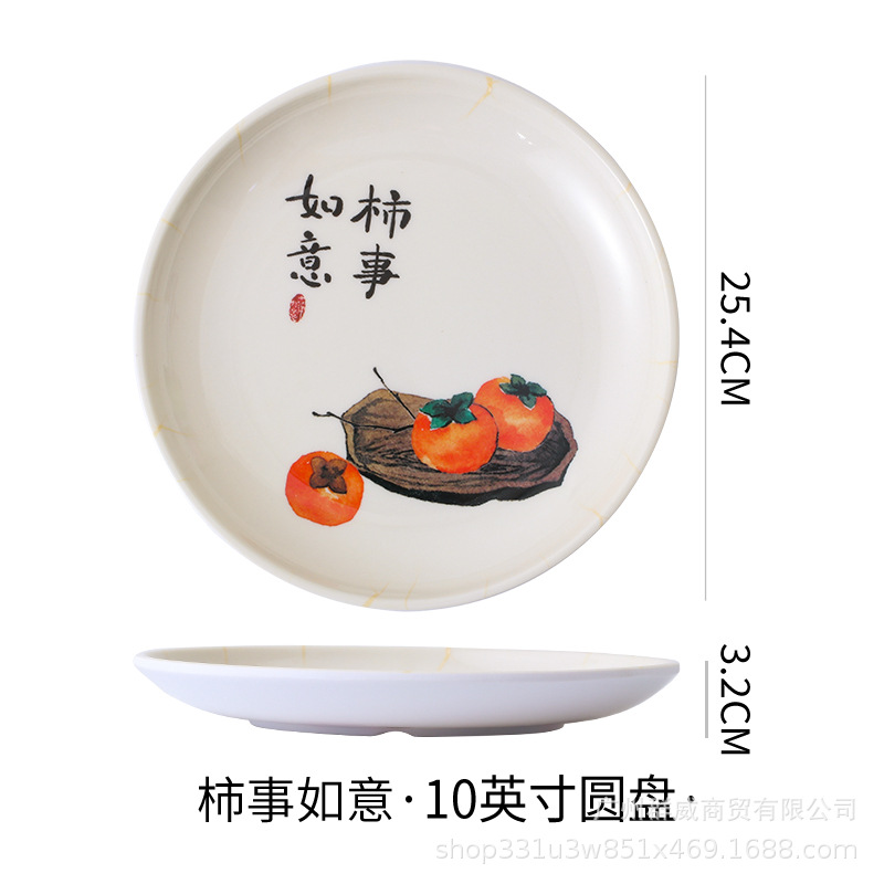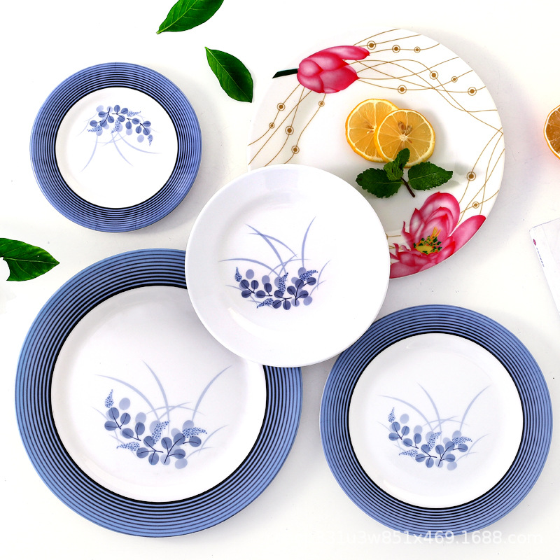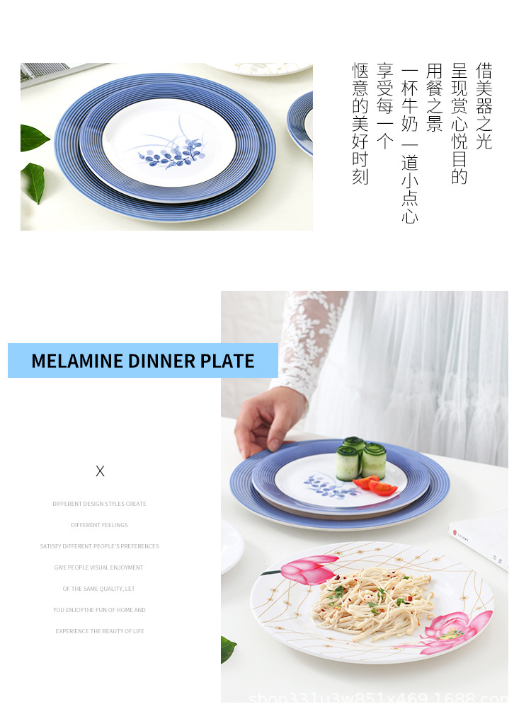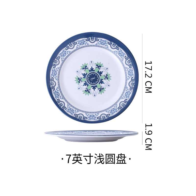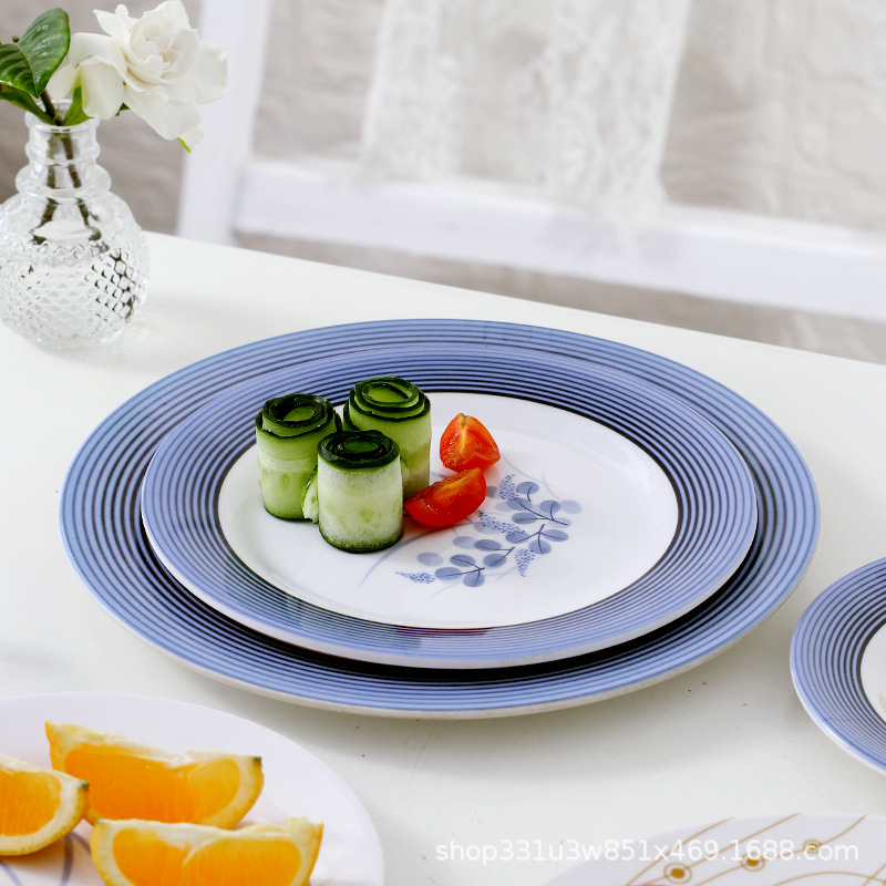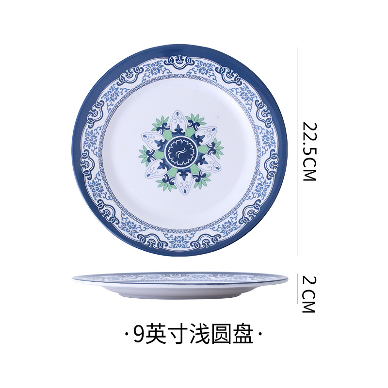 饭店圆形密胺盘子北欧风菜盘商用塑料碟子火锅菜盘餐厅快餐盘骨碟