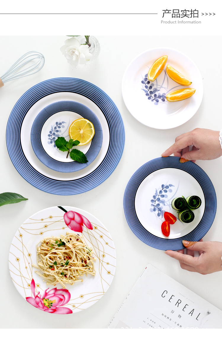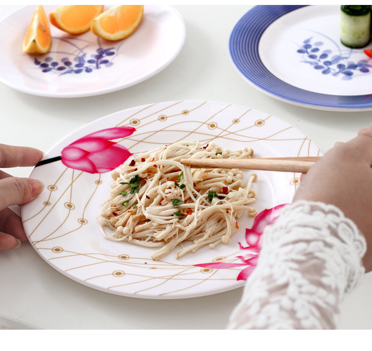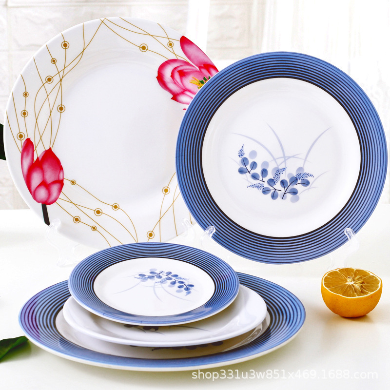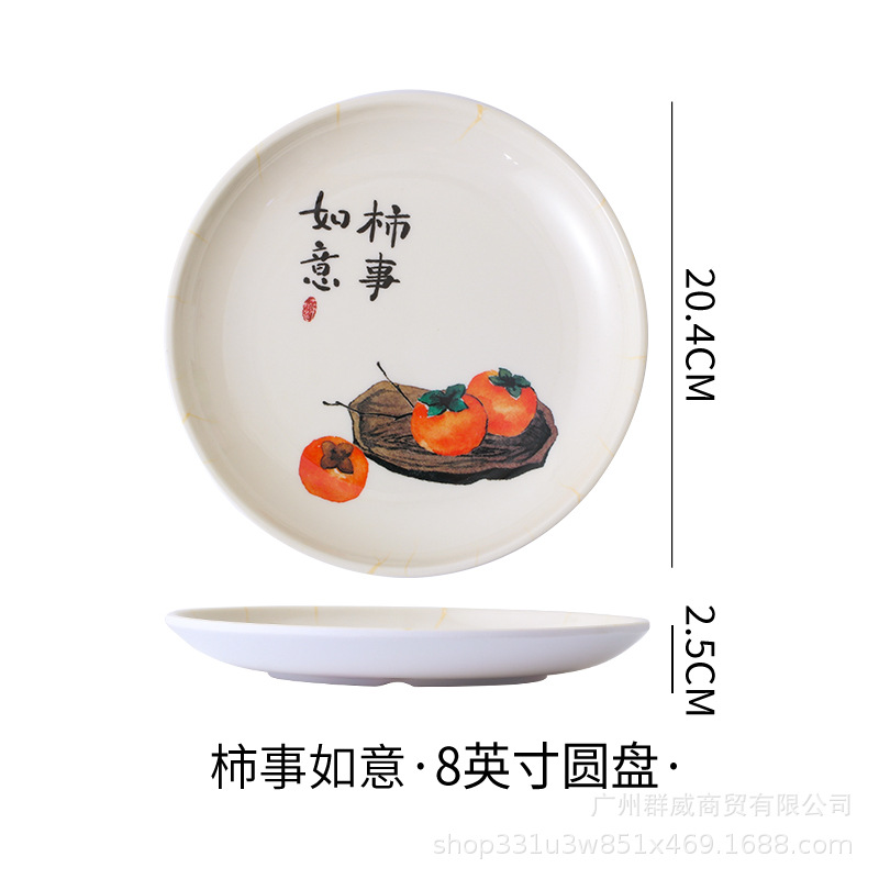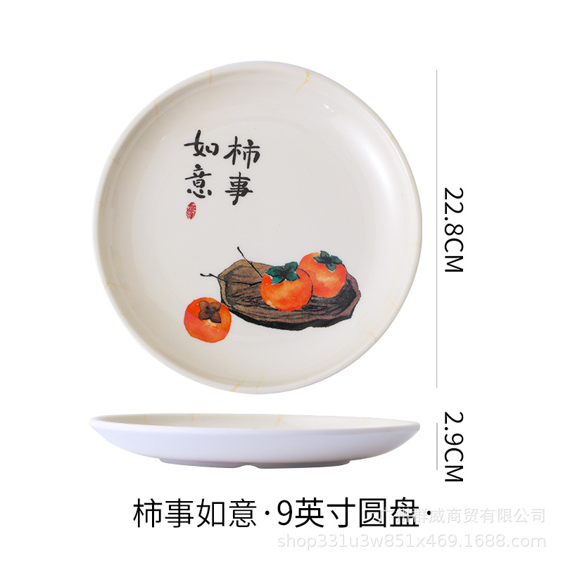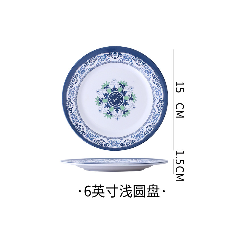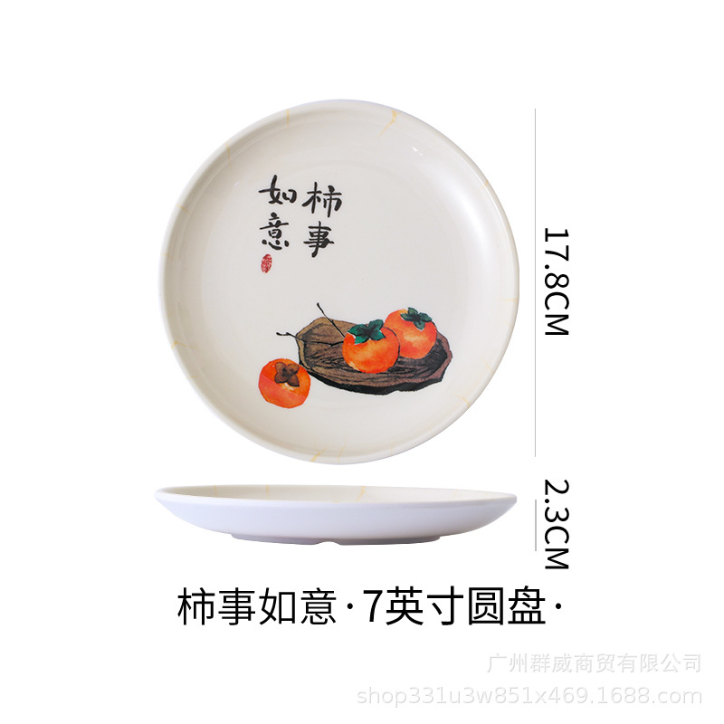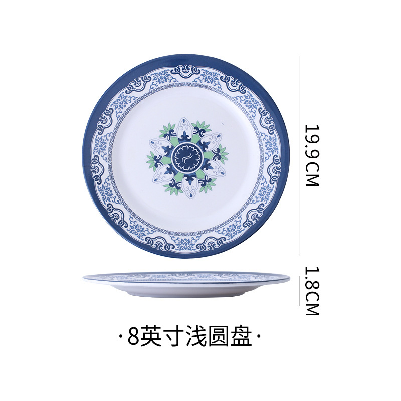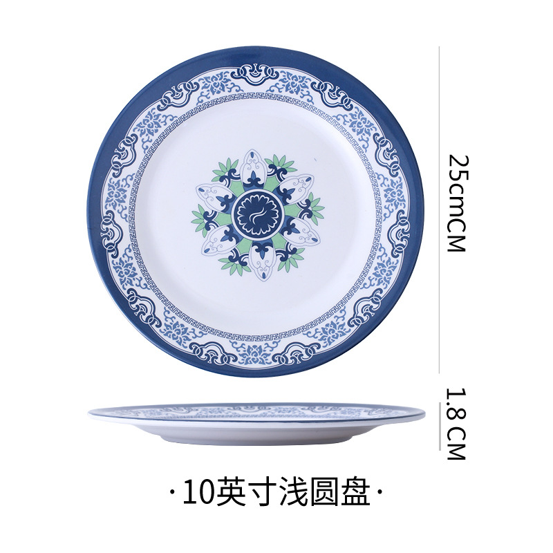 饭店圆形密胺盘子北欧风菜盘商用塑料碟子火锅菜盘餐厅快餐盘骨碟