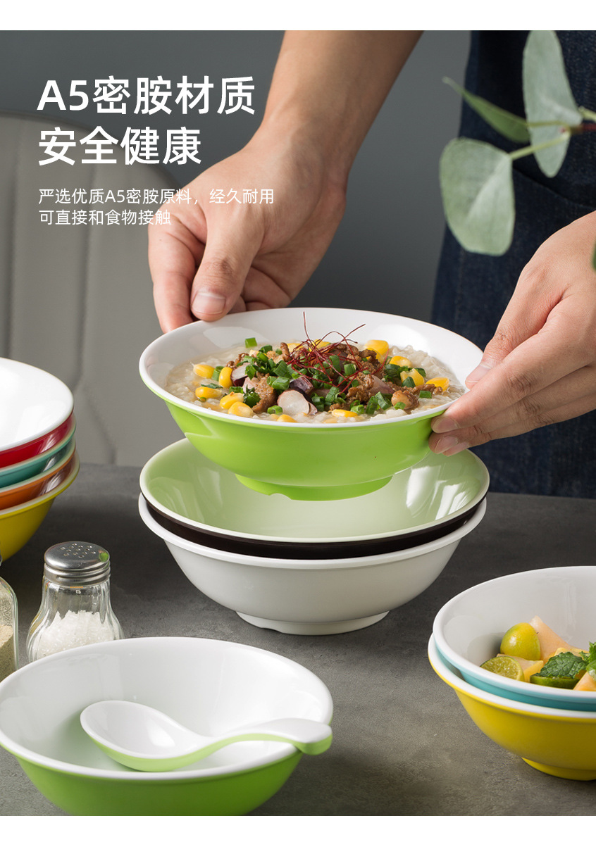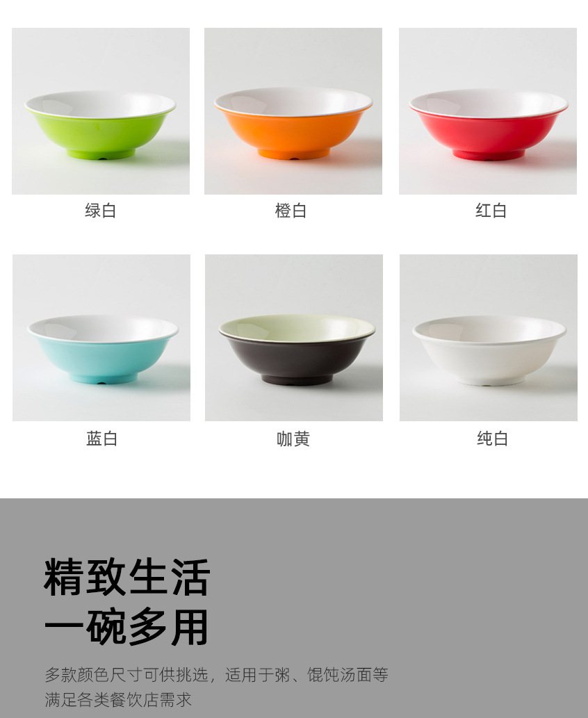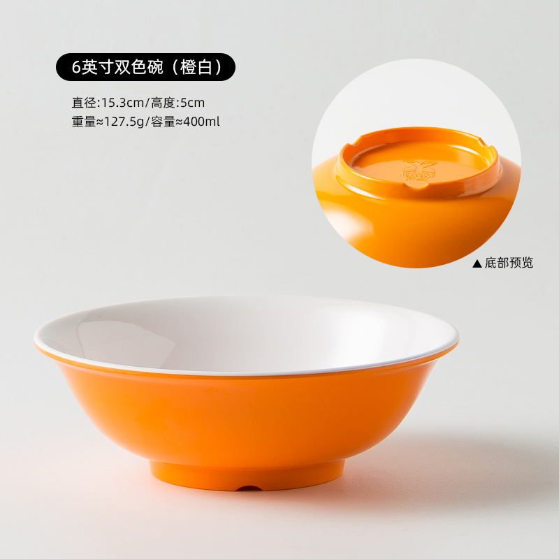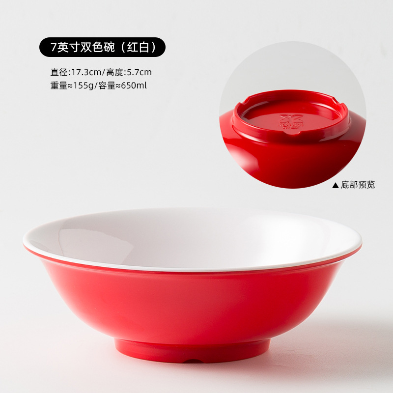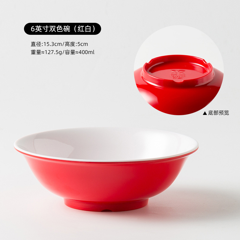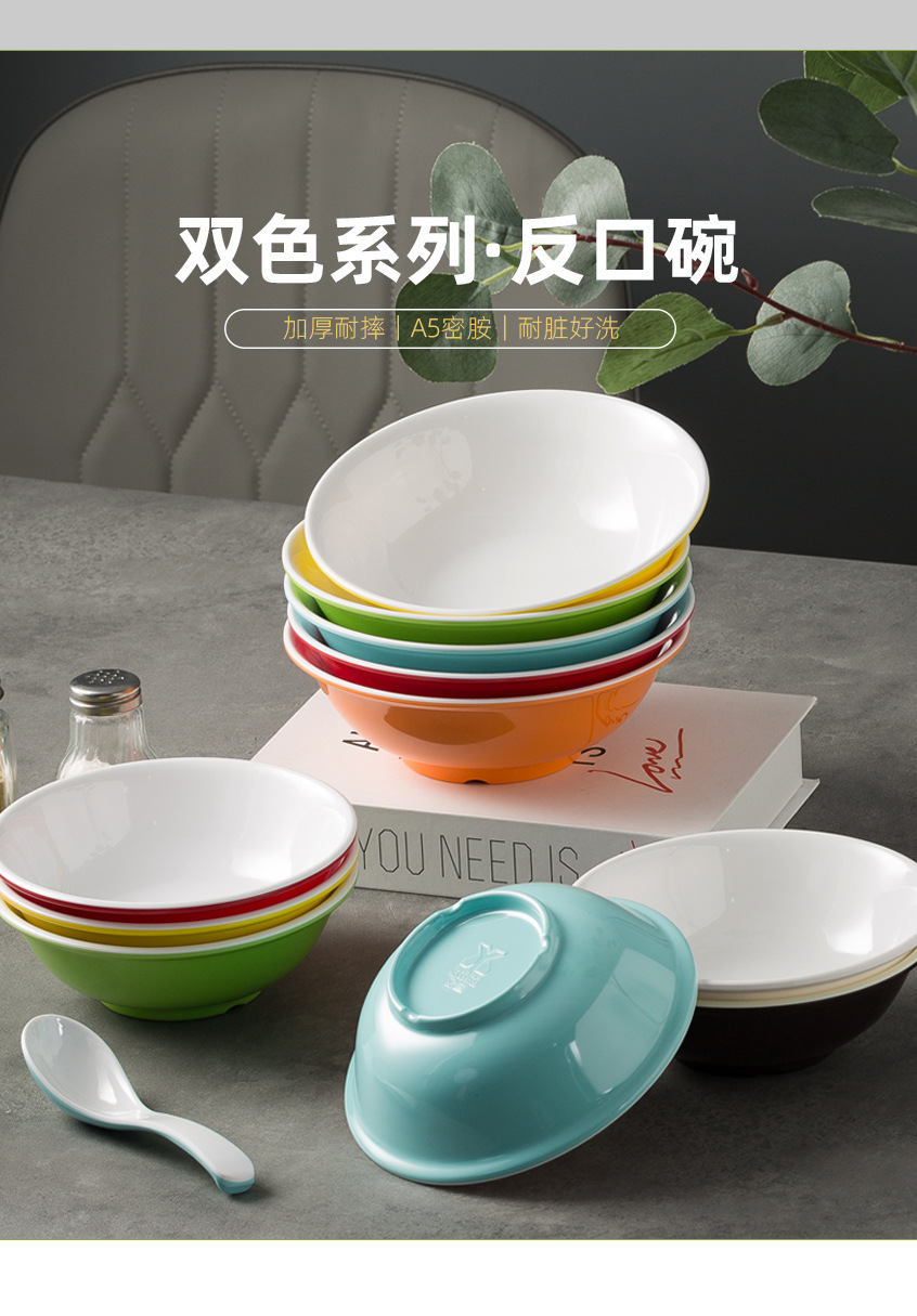 A5双色塑料反口碗仿瓷早餐店粥碗豆浆碗馄饨碗稀饭米饭碗商用密胺
