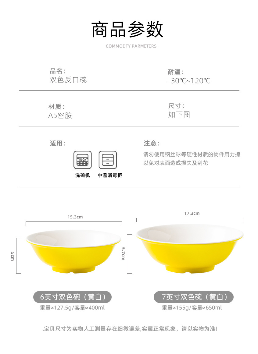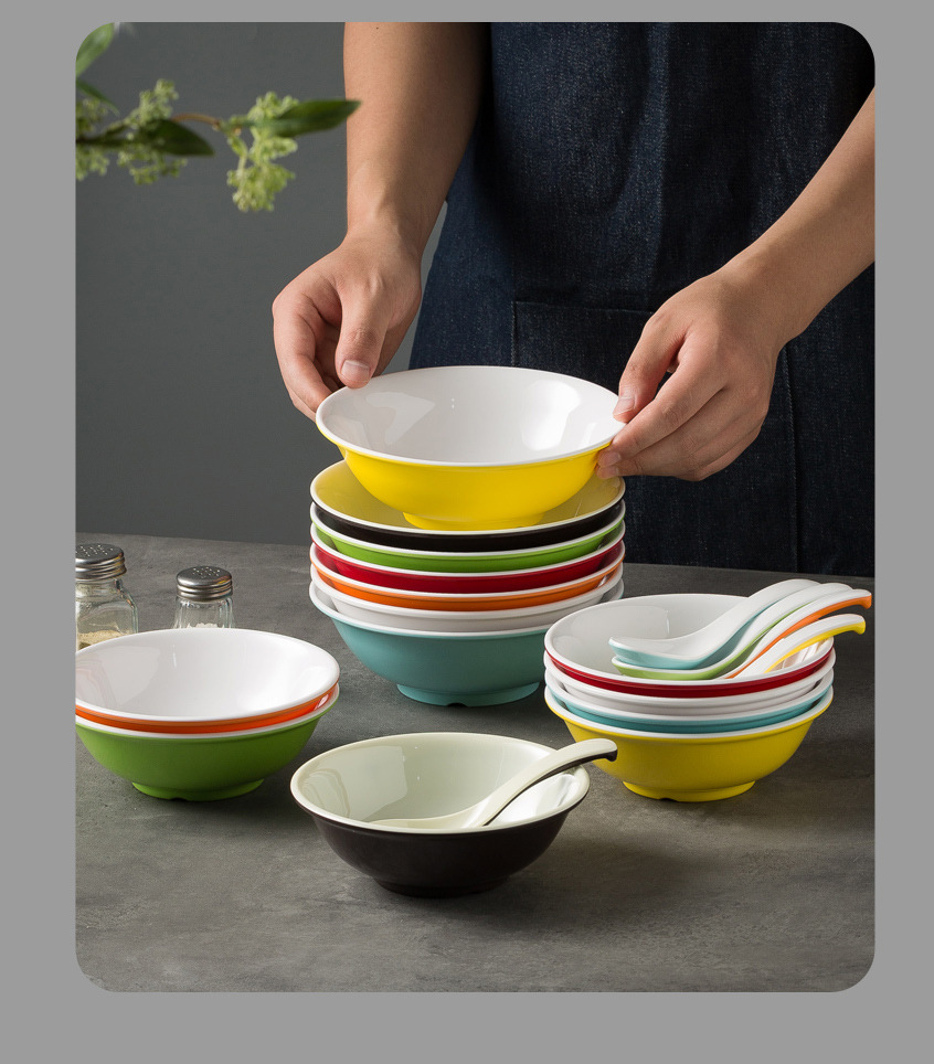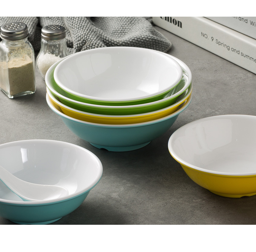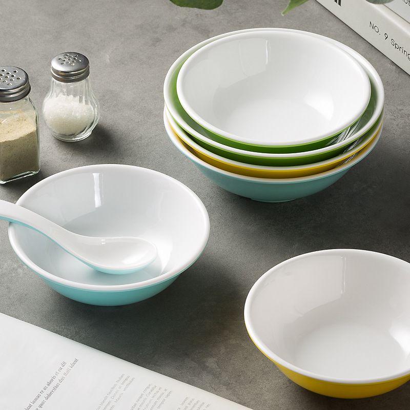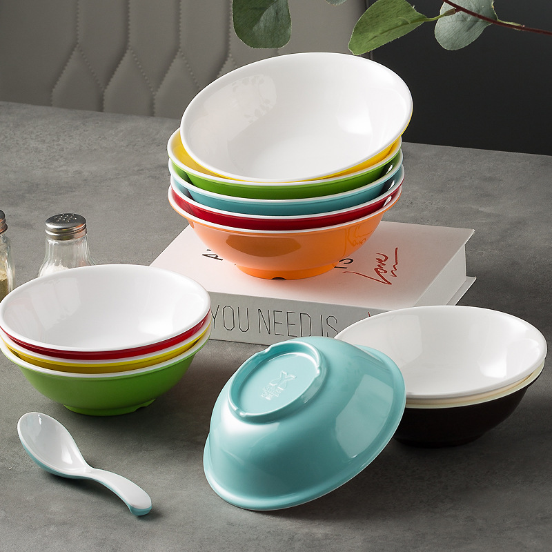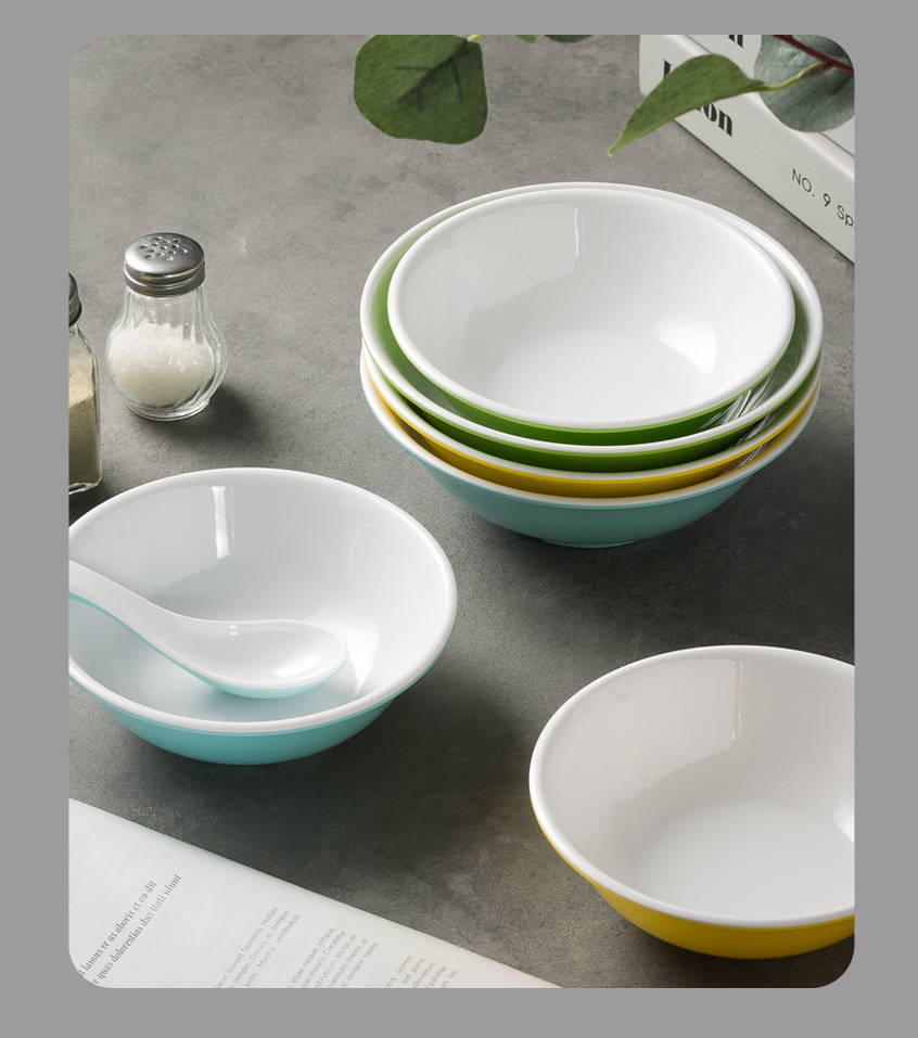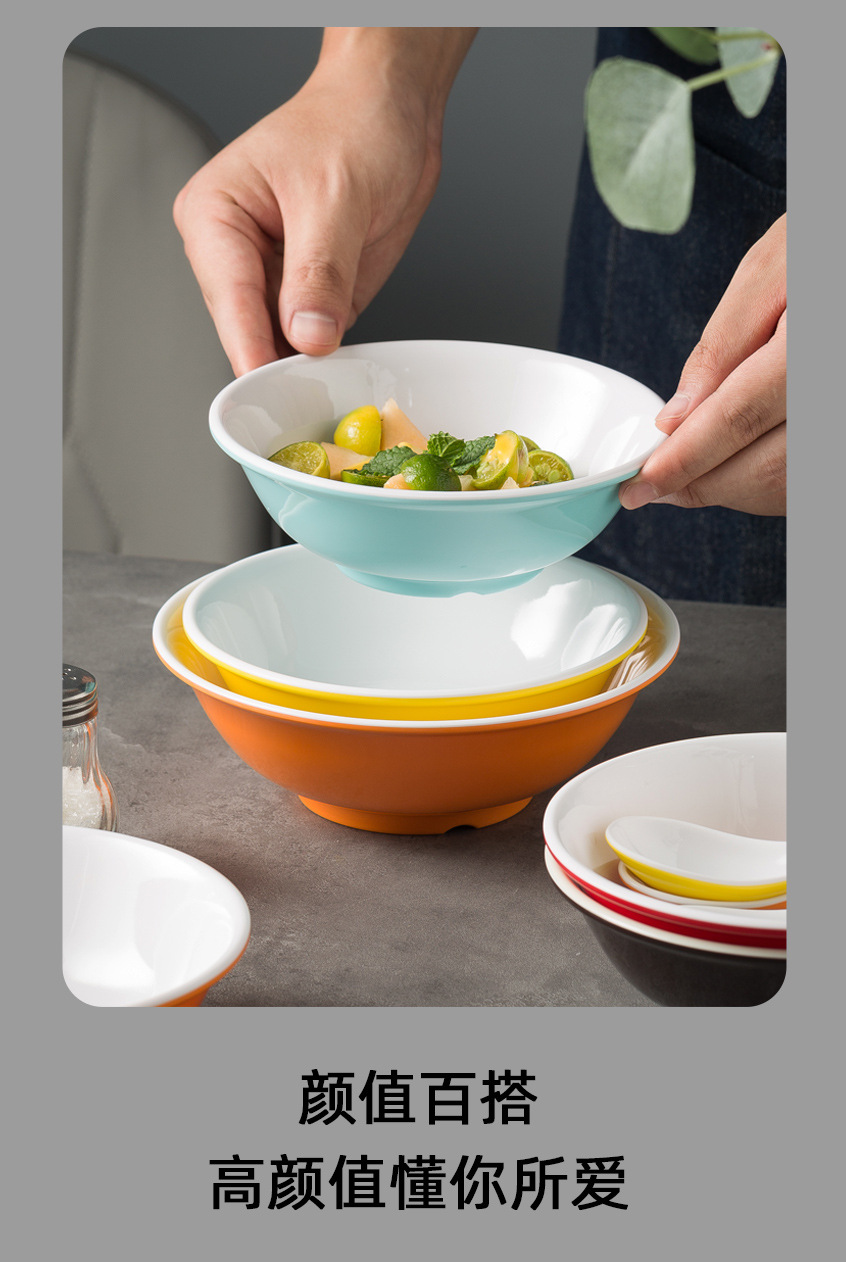 A5双色塑料反口碗仿瓷早餐店粥碗豆浆碗馄饨碗稀饭米饭碗商用密胺