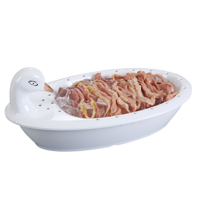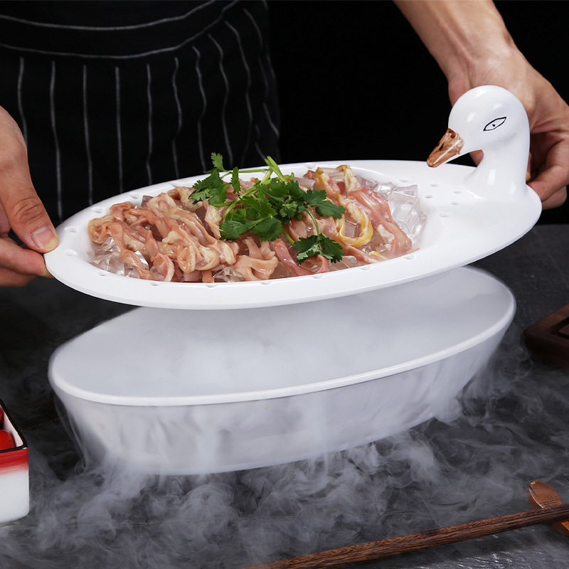 干冰冒烟干冰 创意意境菜船形盘纯色毛肚干冰盘 鸭鹅肠中式盘密胺