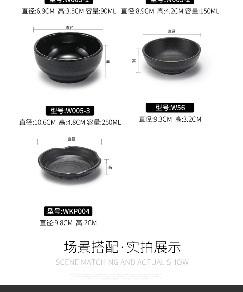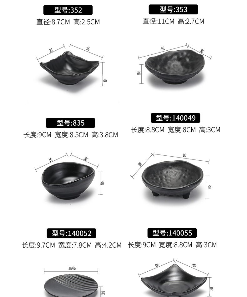 密胺黑色调料碗蘸料碟火锅餐具磨砂小吃碟凉菜日式小碟酱油碟味碟