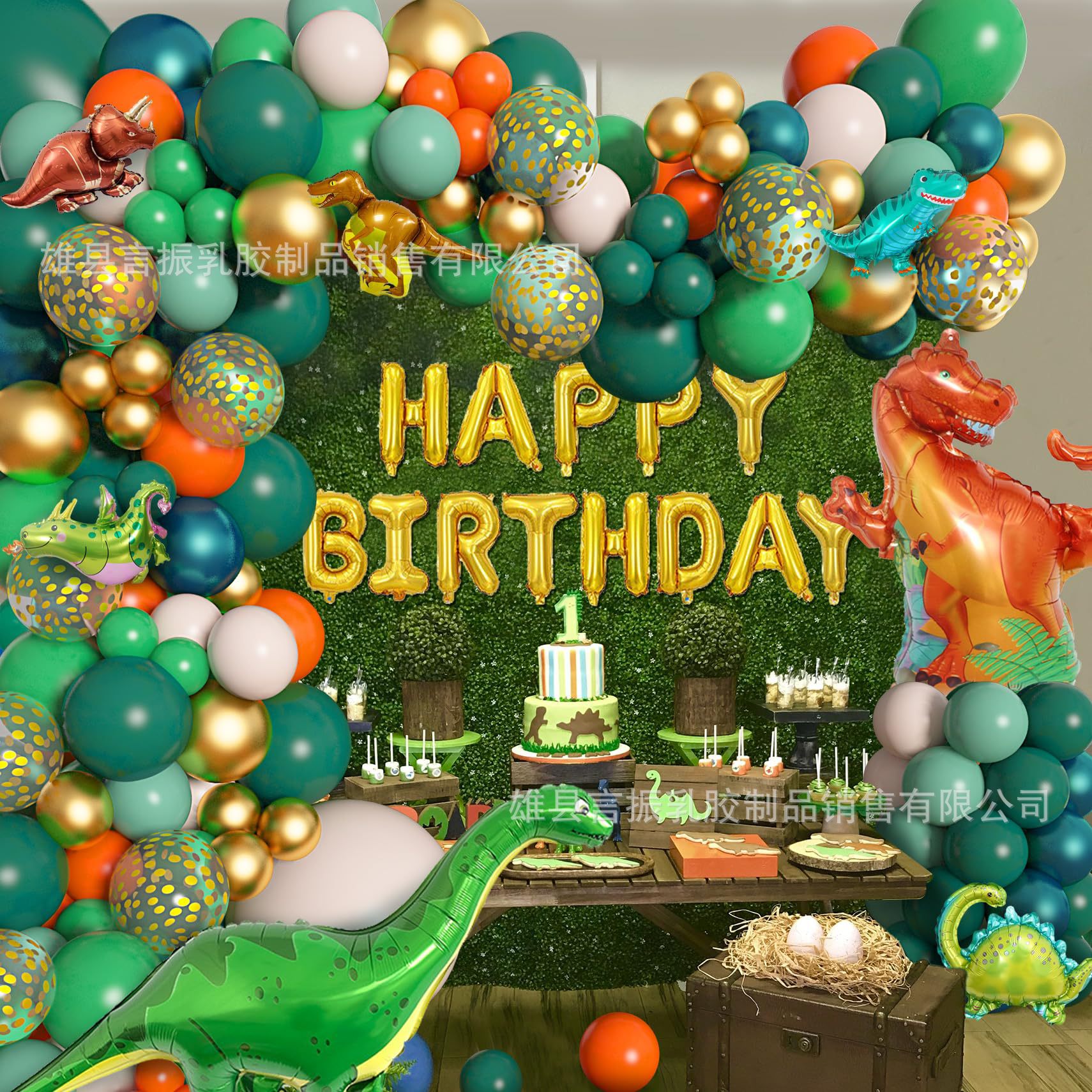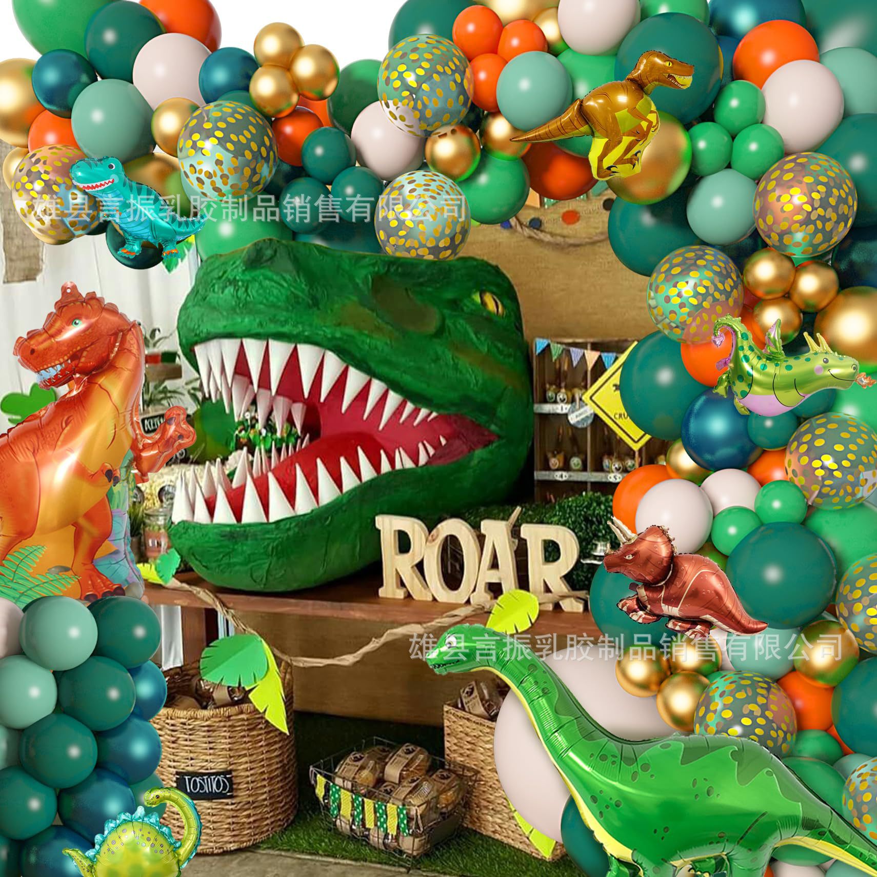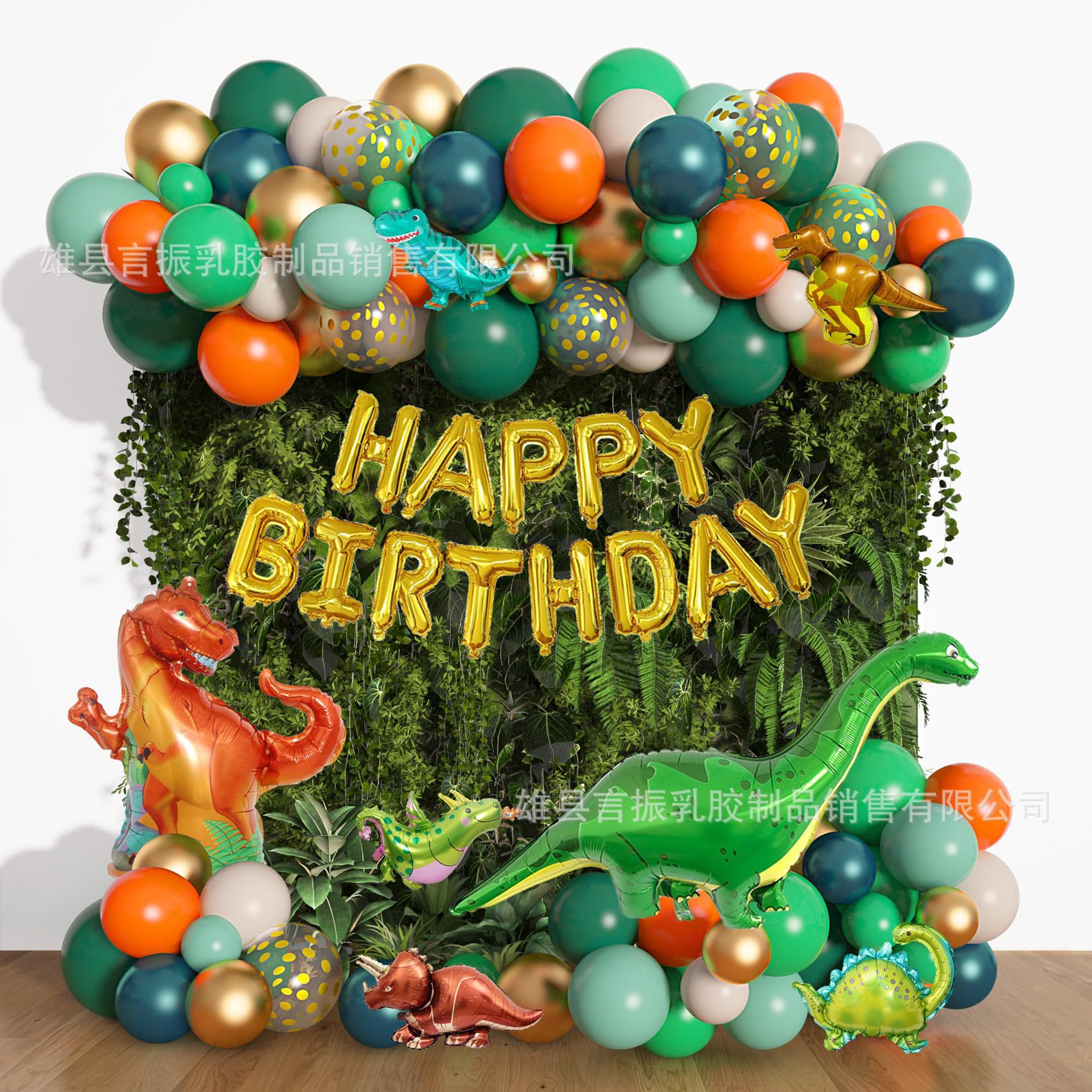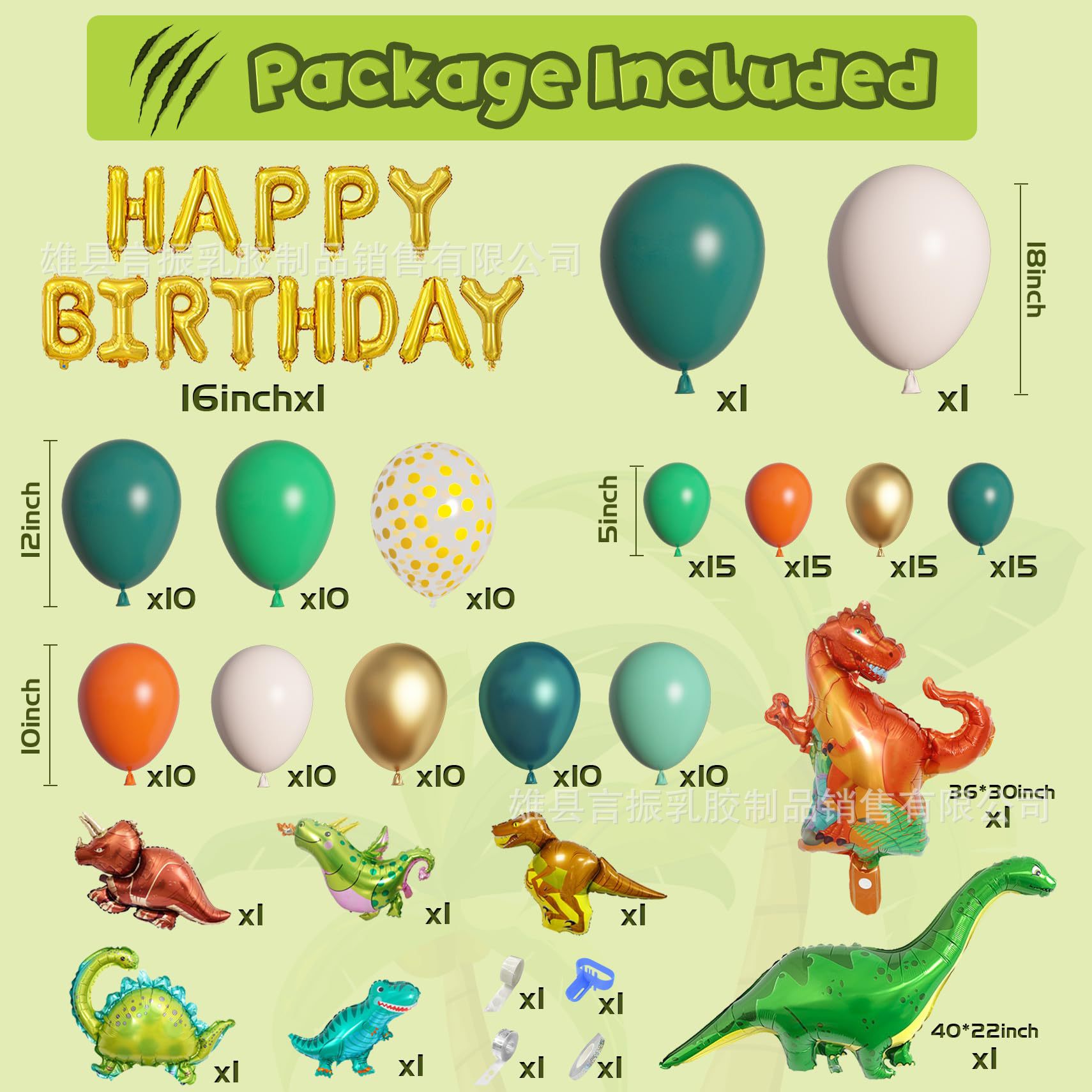 跨境亚马逊167 件恐龙气球链套装男孩儿童生日铝膜气球绿色桔色