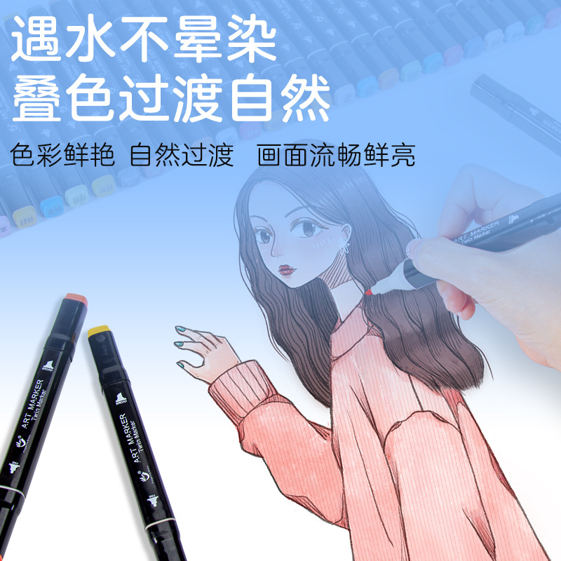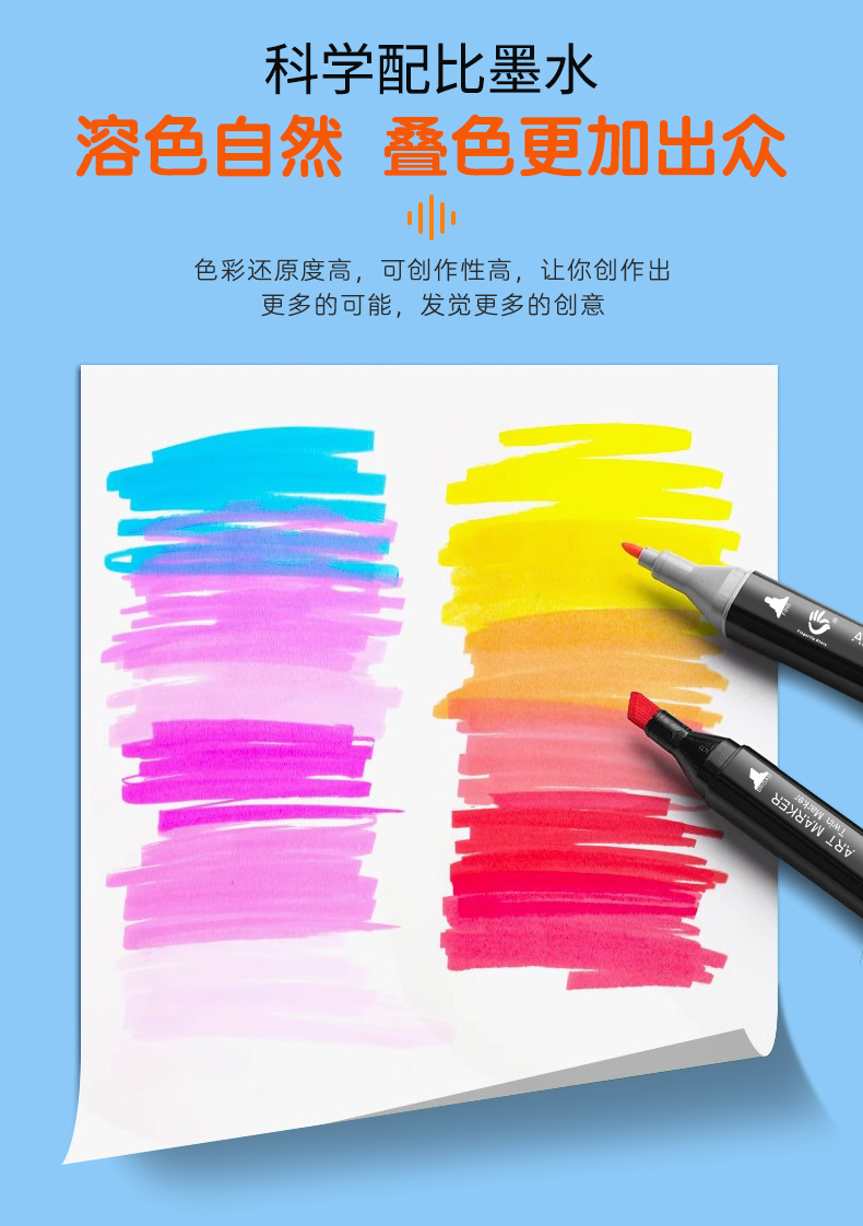 跨境酒精马克笔套装双头马克笔指尖故事开学季学生叠色自然彩色笔