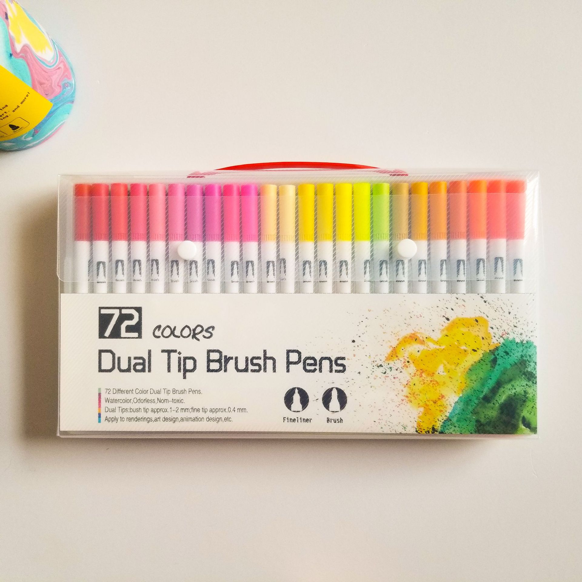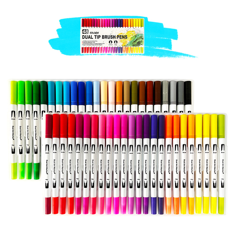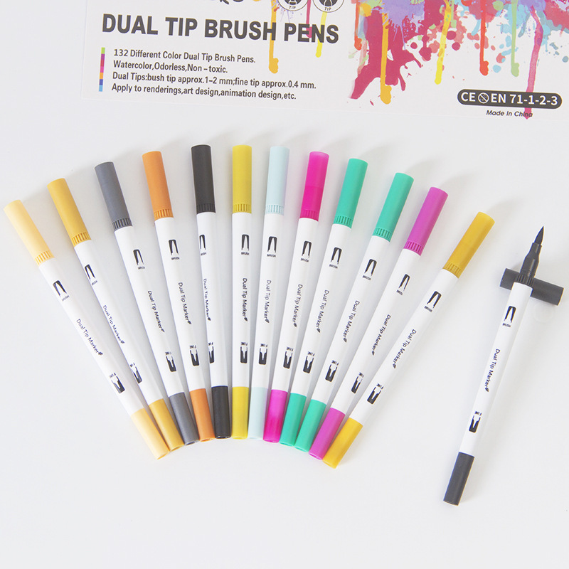 132色水彩笔套装彩色勾线笔绘画记号笔软头笔水性双头马克笔