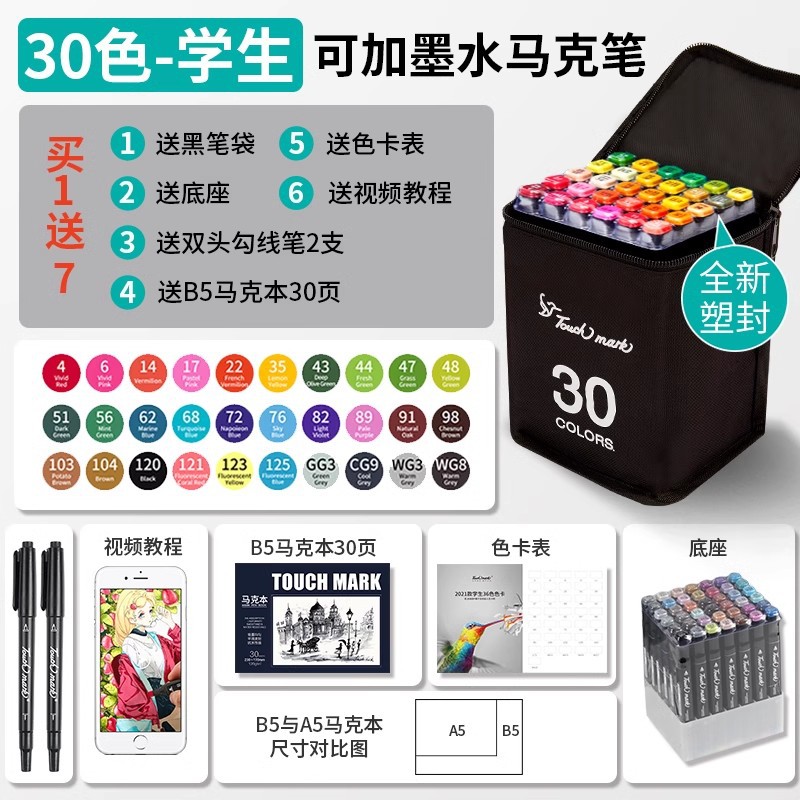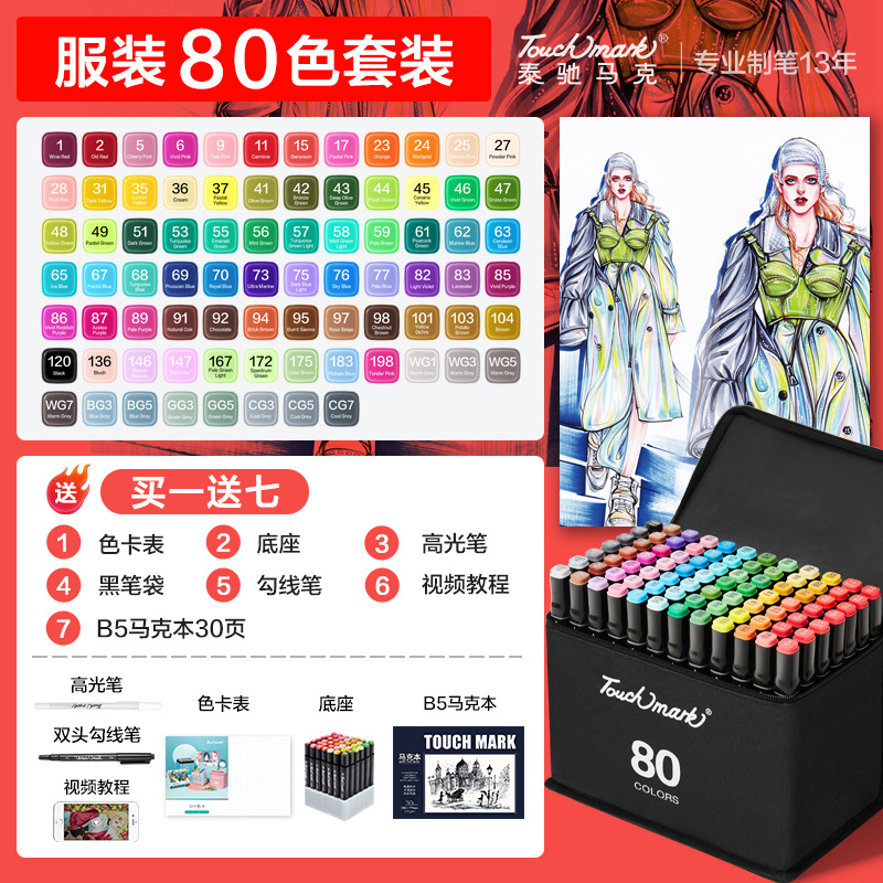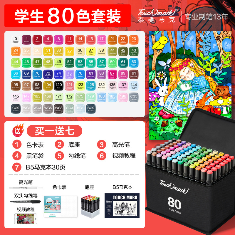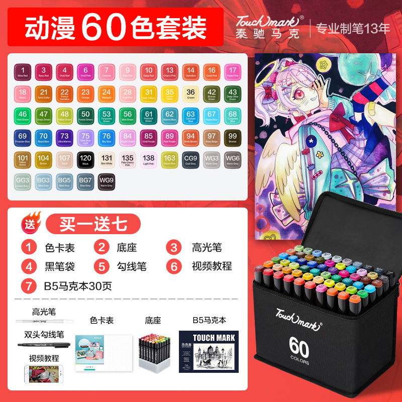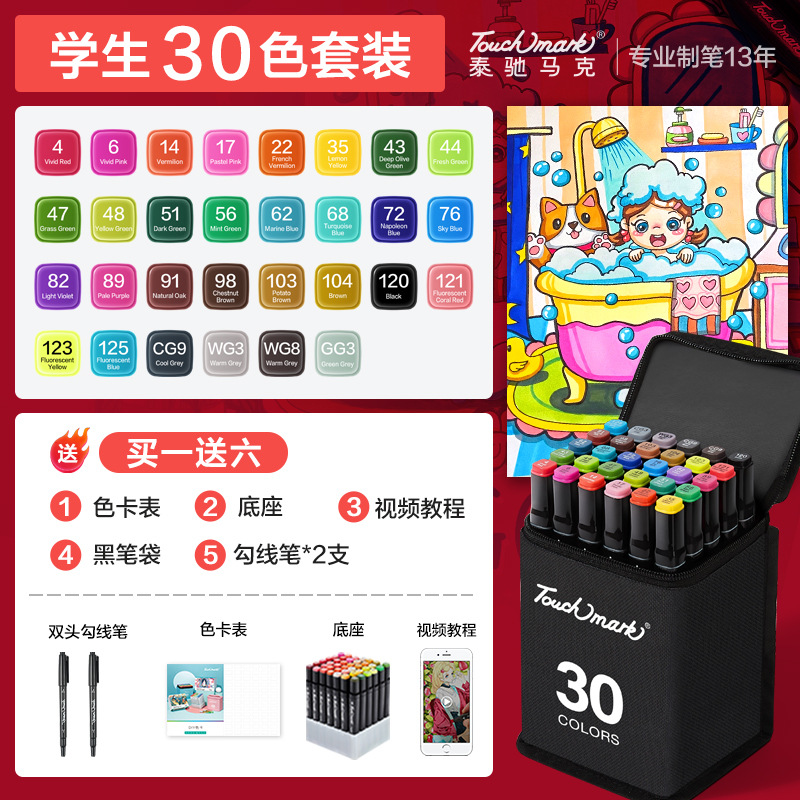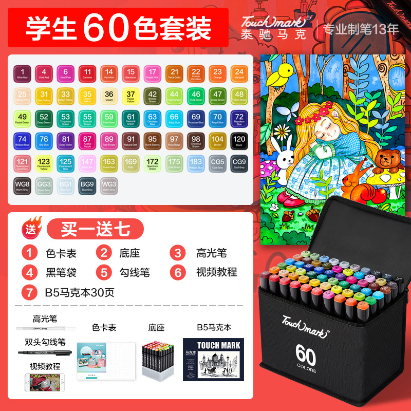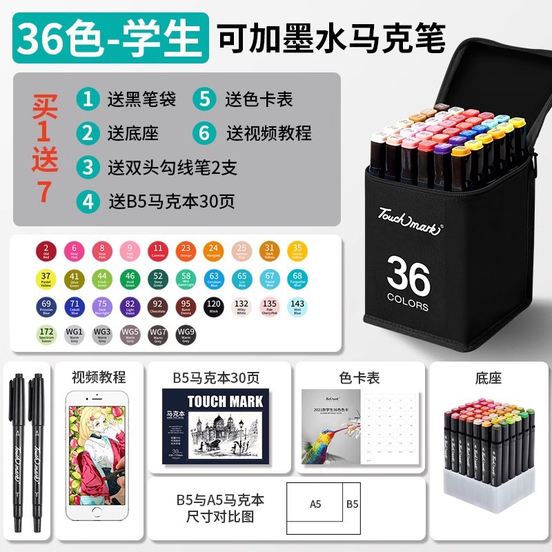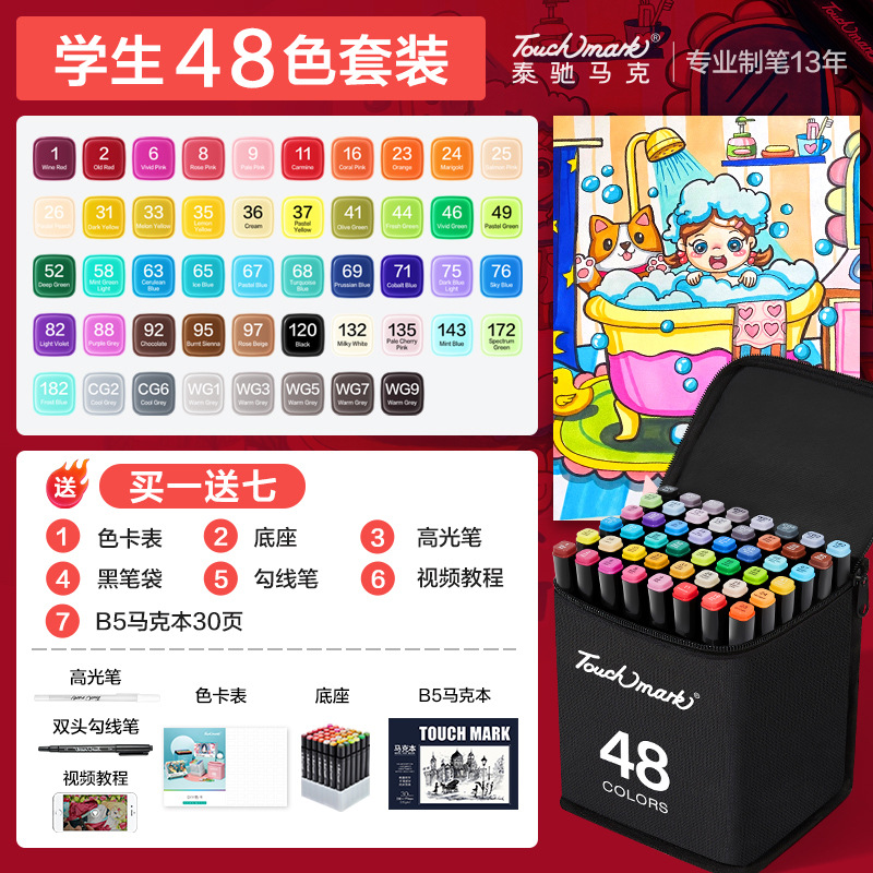 马克笔套装Touchmark底座48色双硬头36色酒精油性学生美术马克笔
