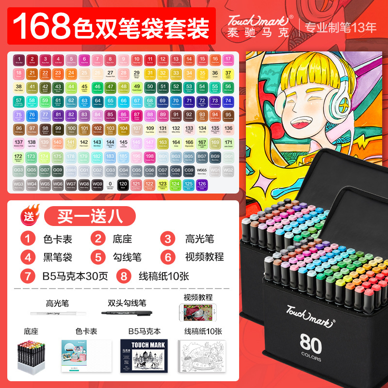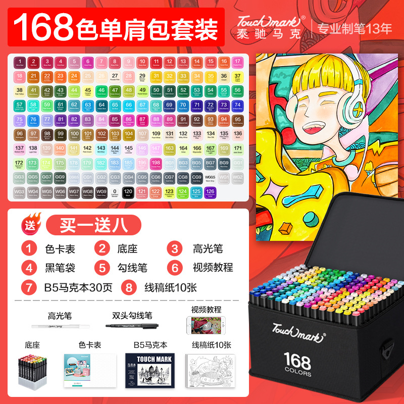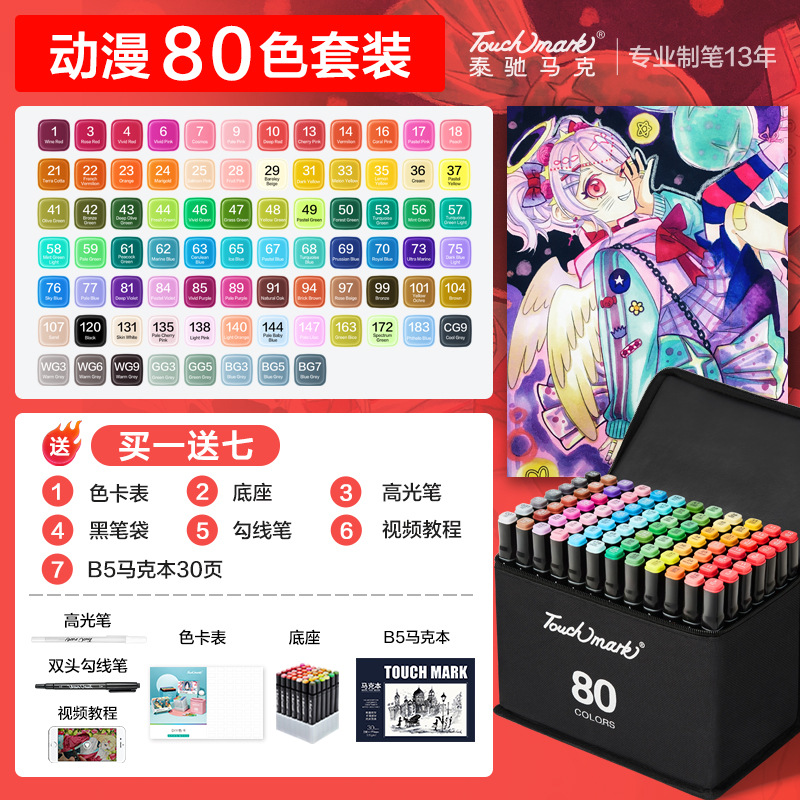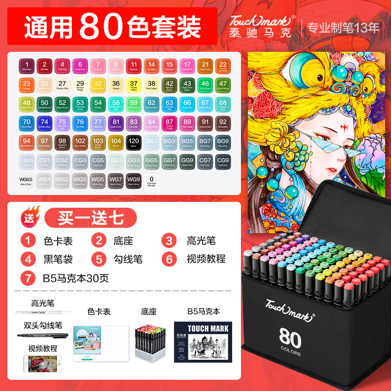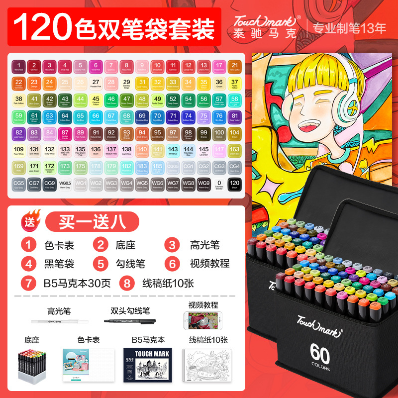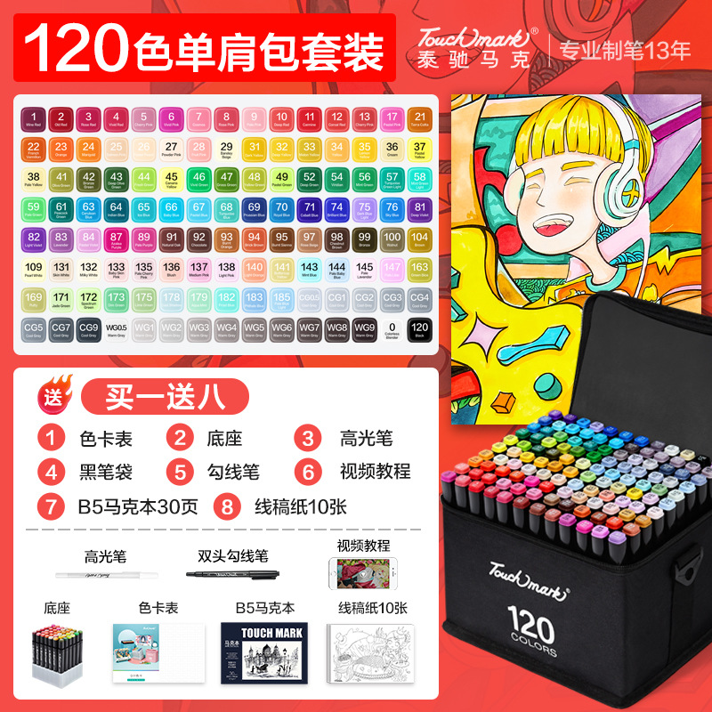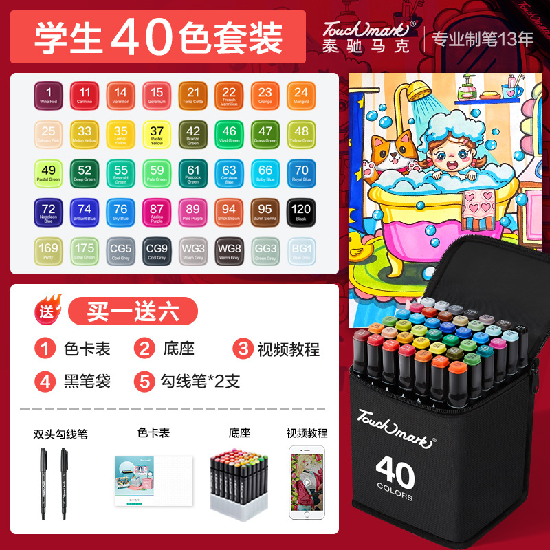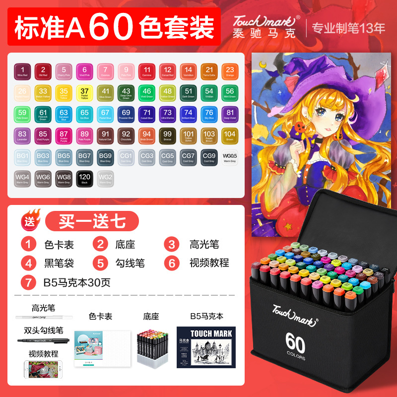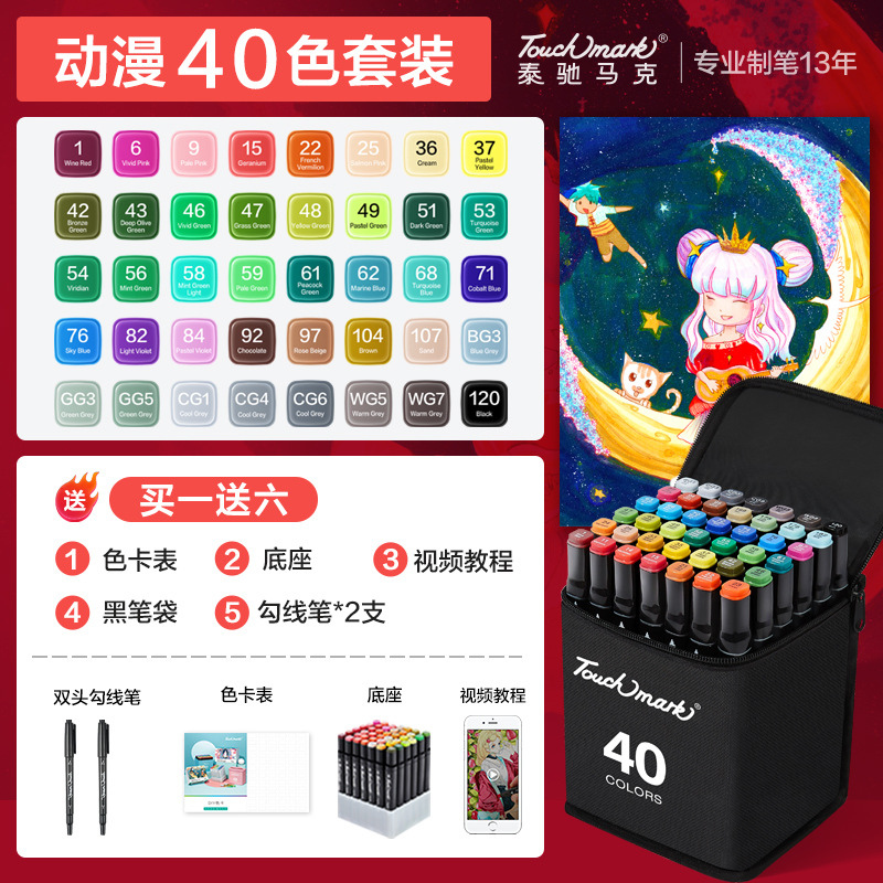 马克笔套装Touchmark底座48色双硬头36色酒精油性学生美术马克笔