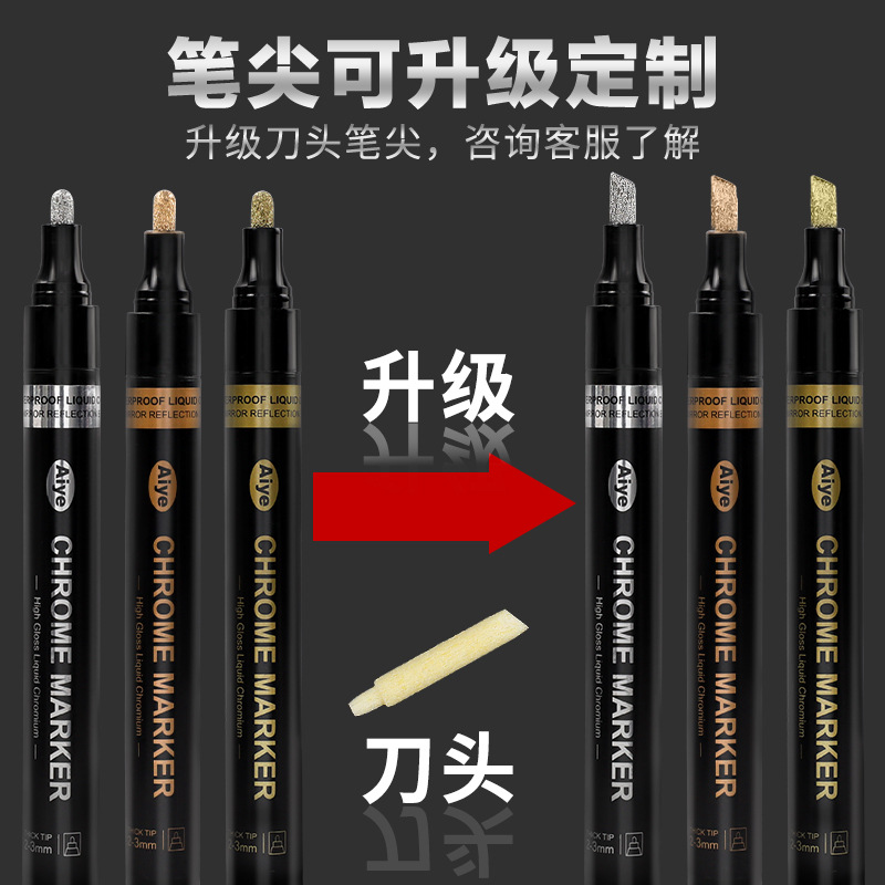 金色笔反光油漆金属笔镀铬银色马克笔DIY液态签名模型高光电镀笔