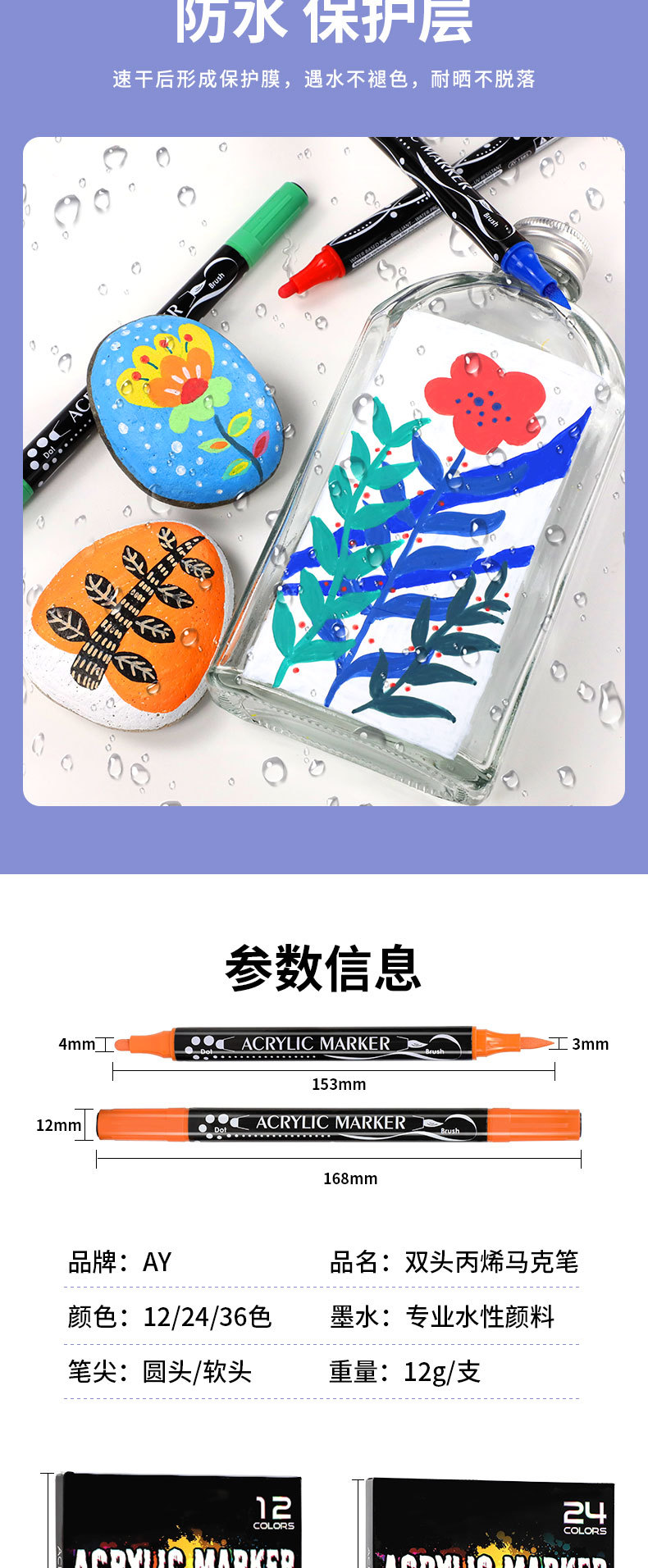 抖音美客多跨境爆款双头丙烯马克笔学生涂鸦叠色马克笔厂家批发