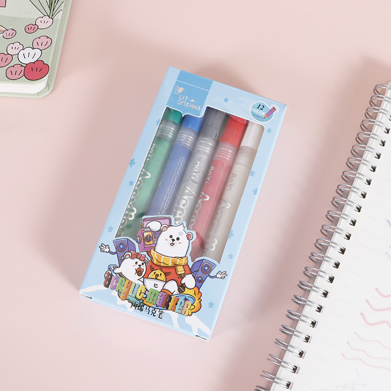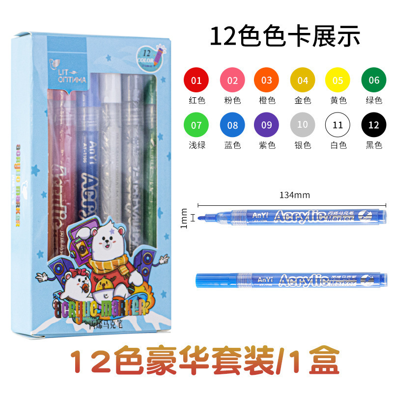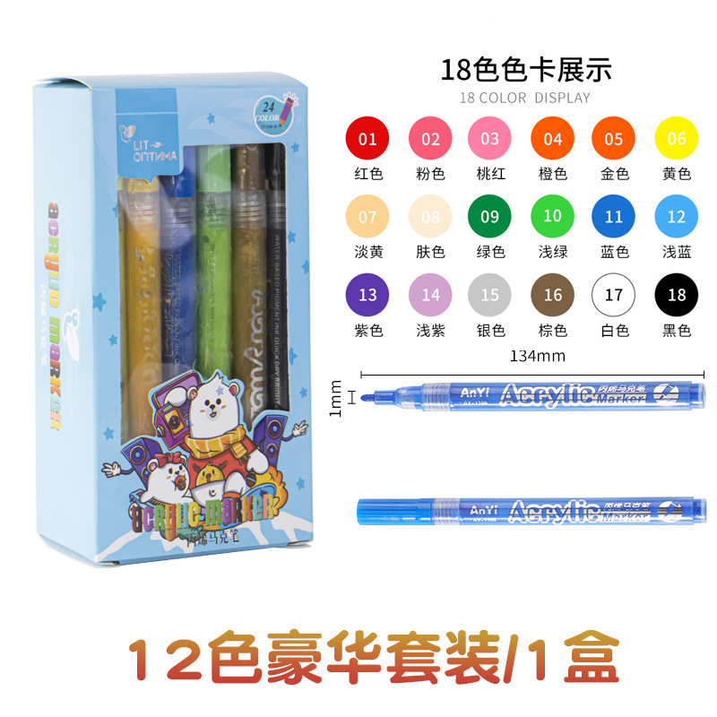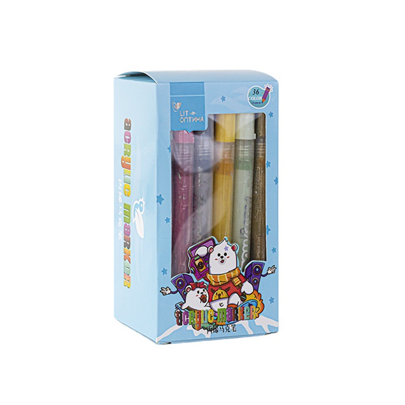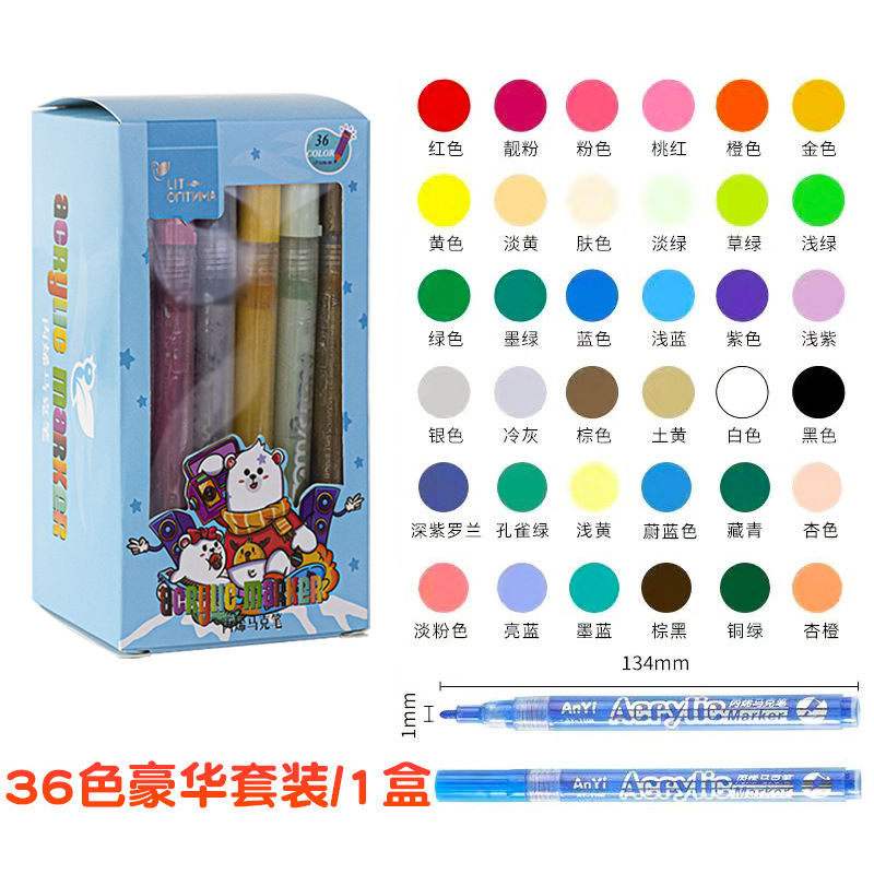 儿童丙烯马克笔跨境热卖卡通36色套装石头陶瓷绘画阀门水性记号笔