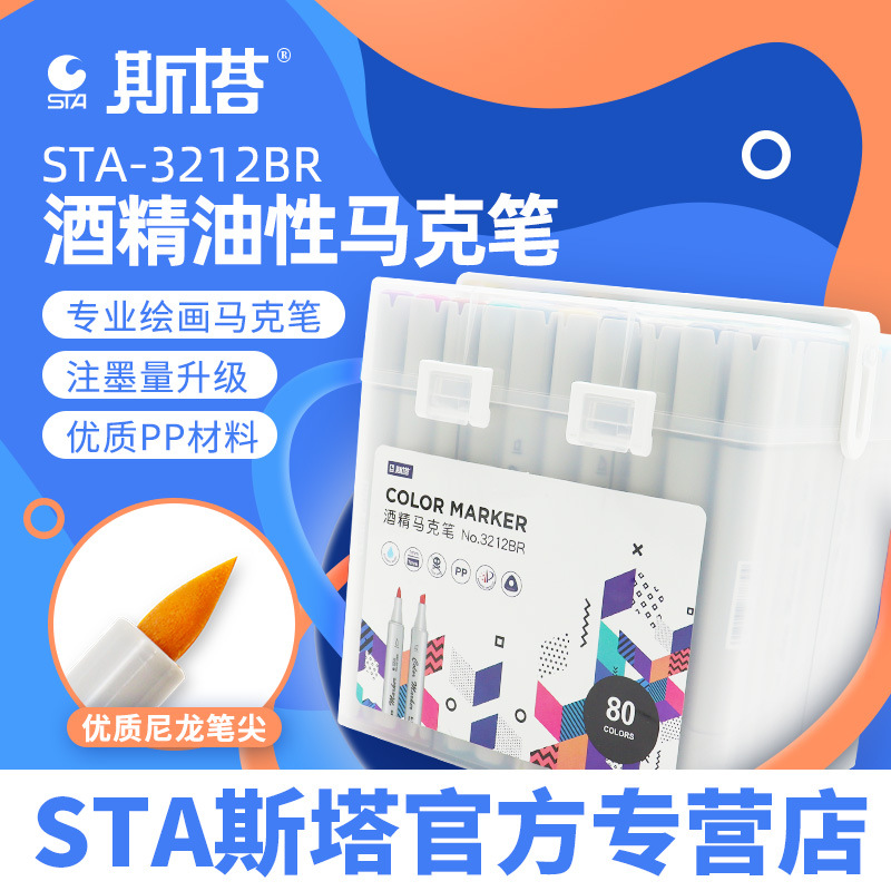 斯塔3212BR酒精马克笔软头手绘动漫设计专用168色油性马克笔套装
