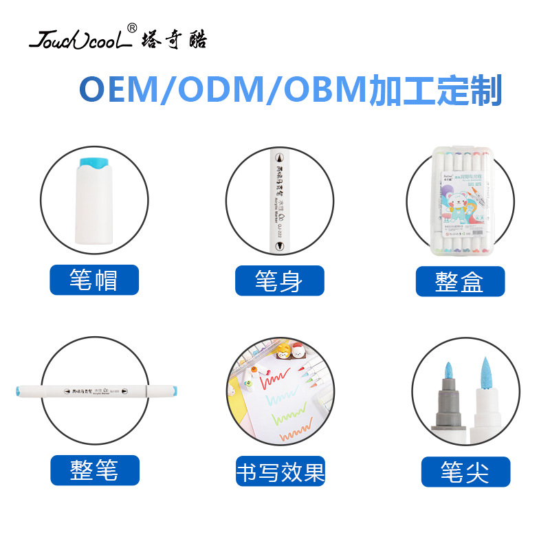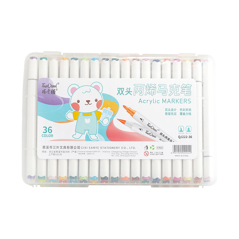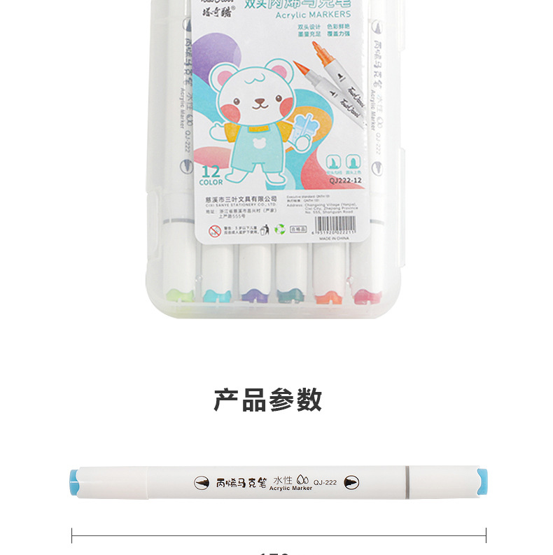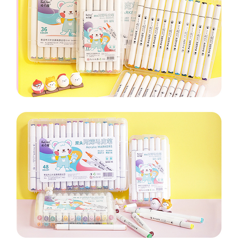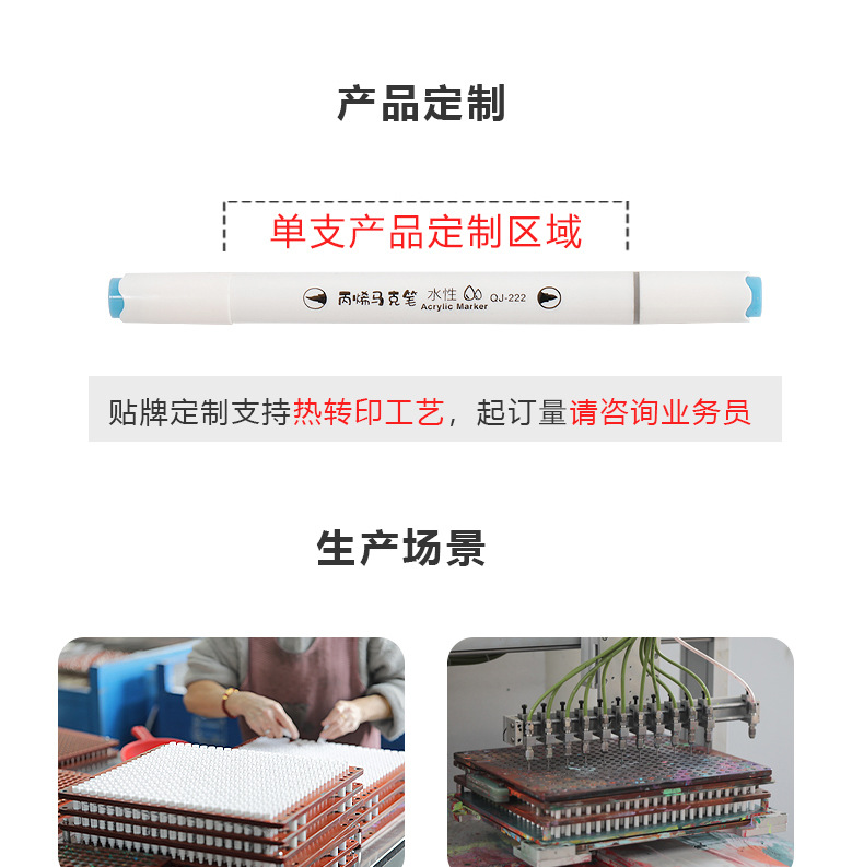 定制双头水性丙烯马克笔防水速干软头儿童涂鸦笔水彩笔覆盖力强
