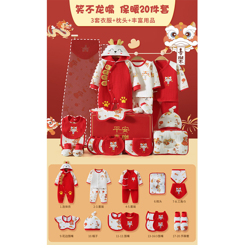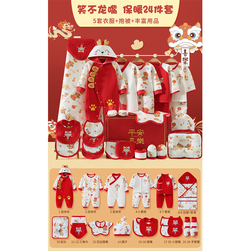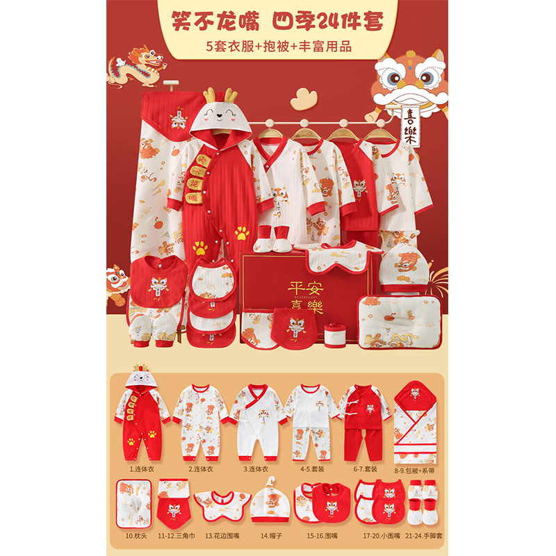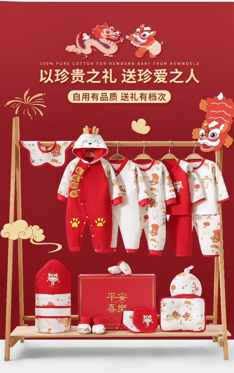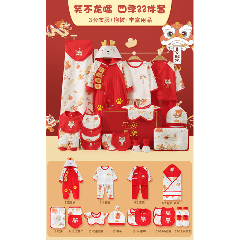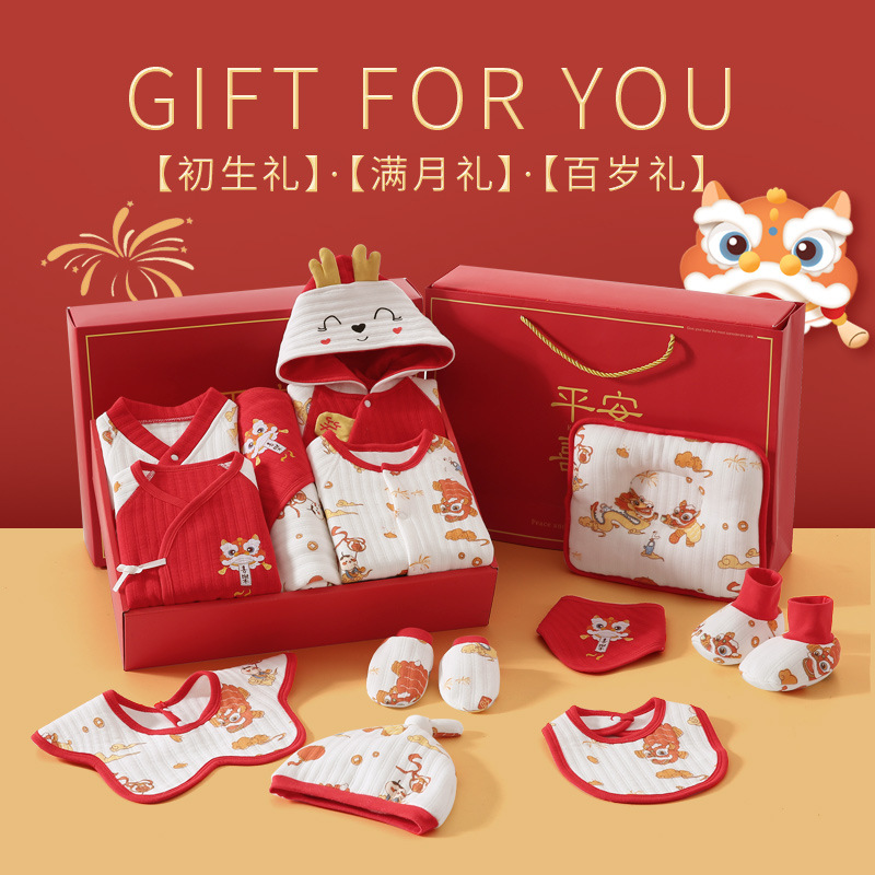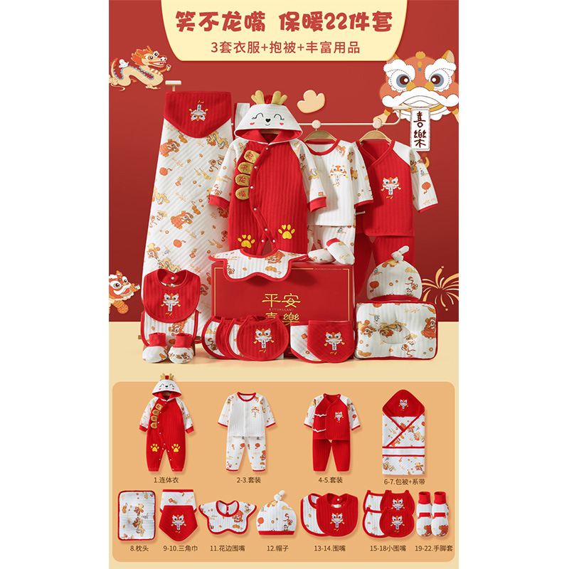 龙年宝宝新初生婴儿衣服礼盒男女春夏满月见面礼纯棉套装待产用品