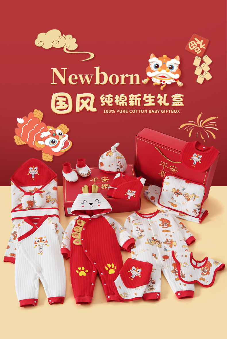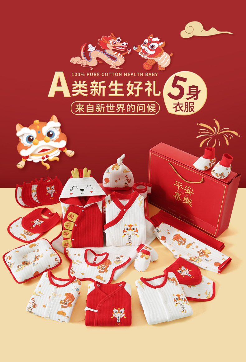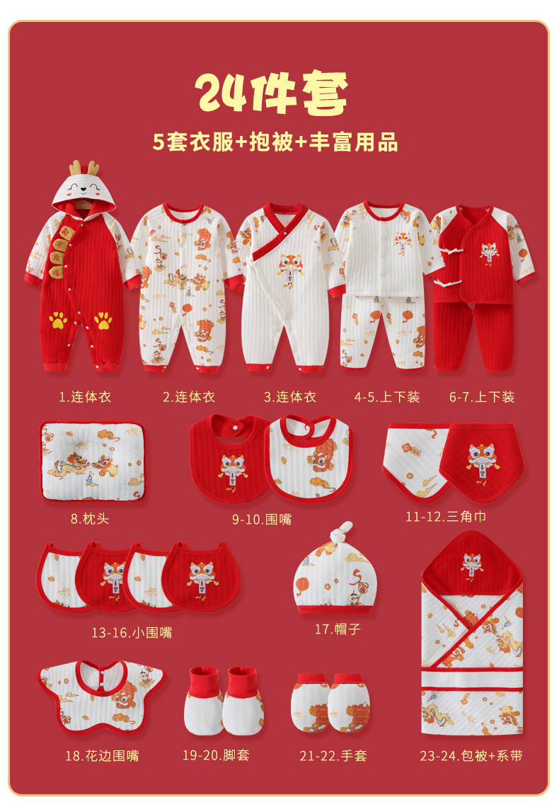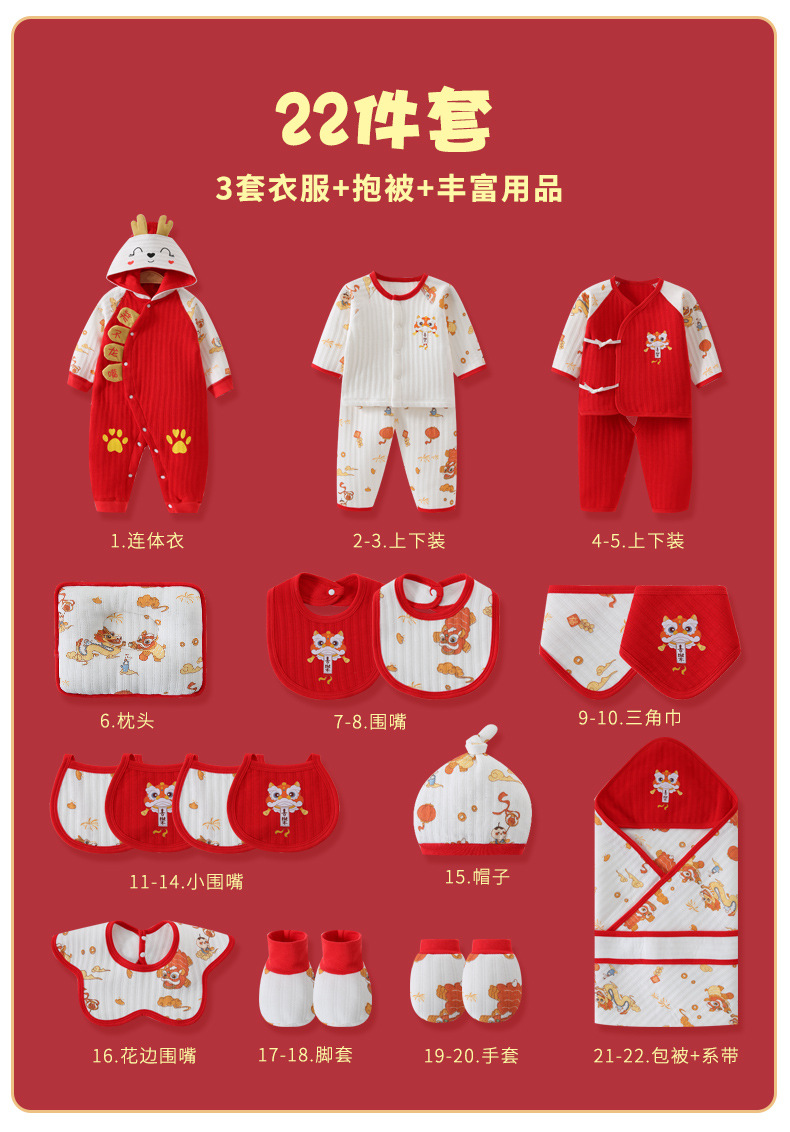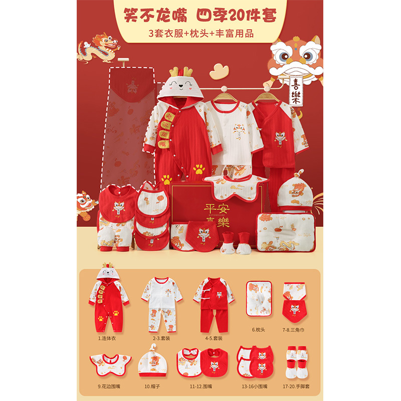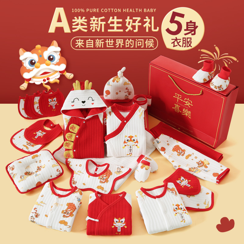 龙年宝宝新初生婴儿衣服礼盒男女春夏满月见面礼纯棉套装待产用品