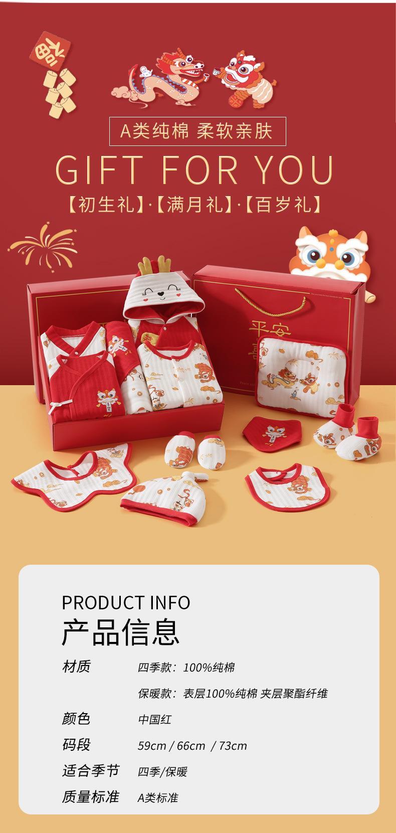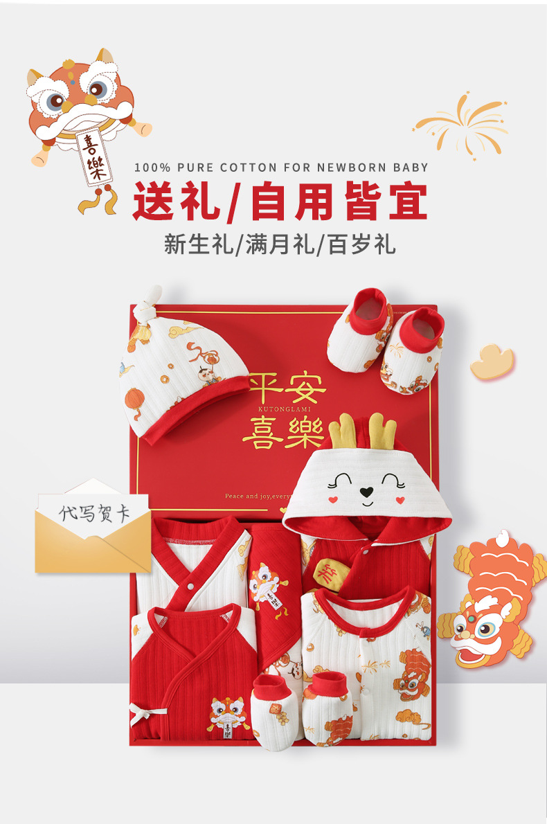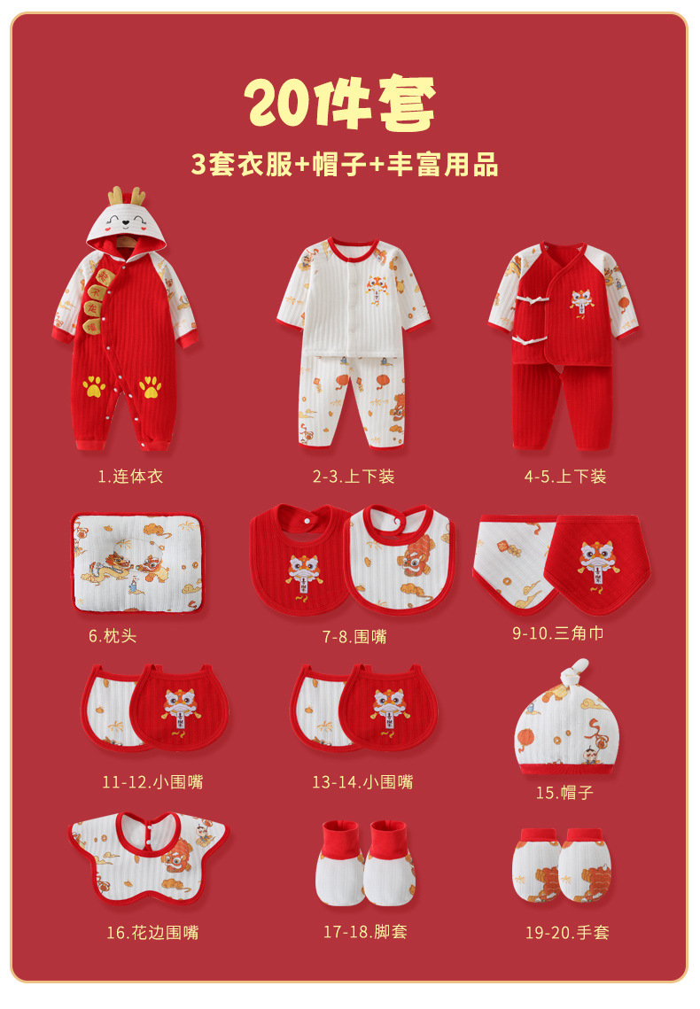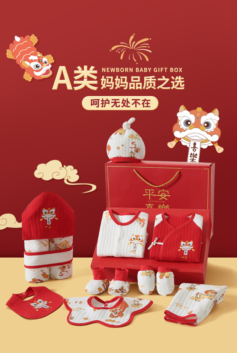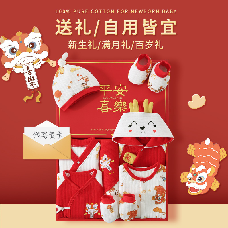 龙年宝宝新初生婴儿衣服礼盒男女春夏满月见面礼纯棉套装待产用品