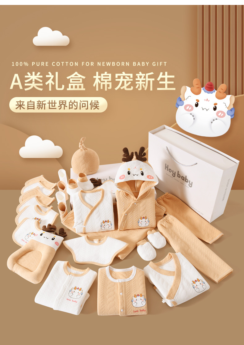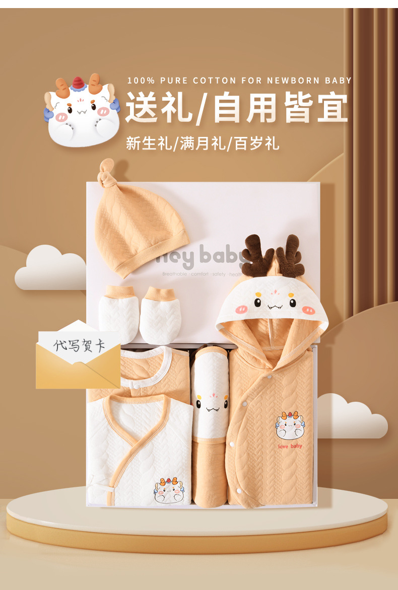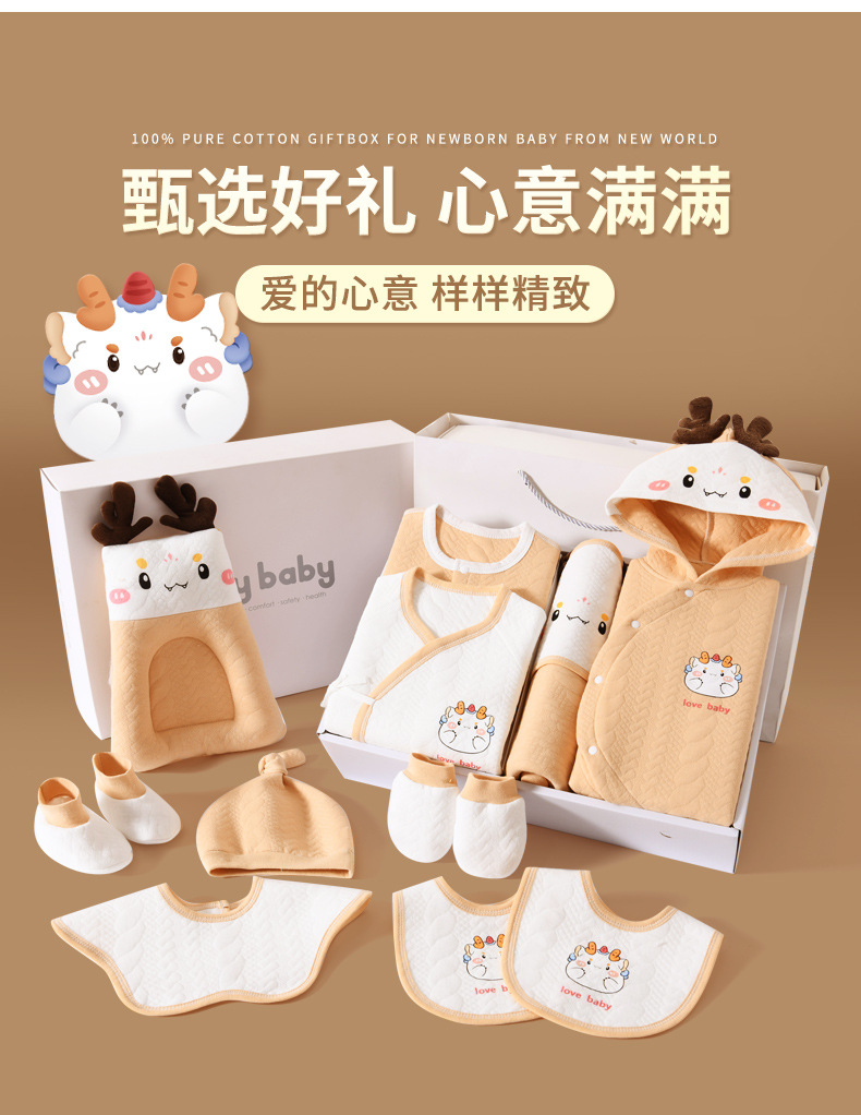 龙年纯棉婴儿衣服秋夏季新生儿礼盒初生男女宝宝套装满月礼物用品