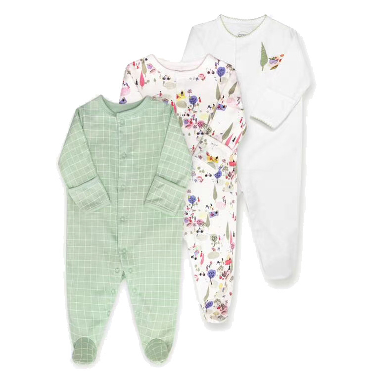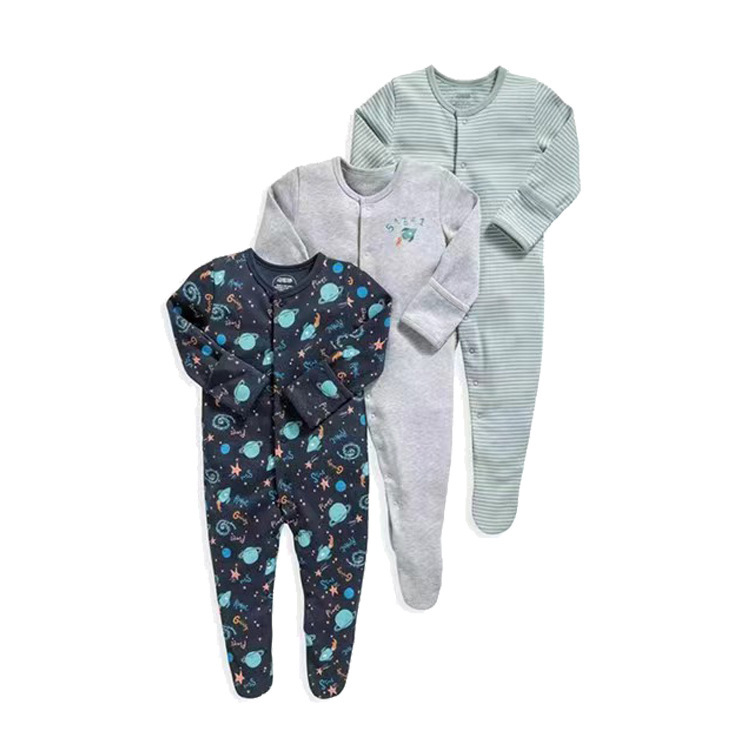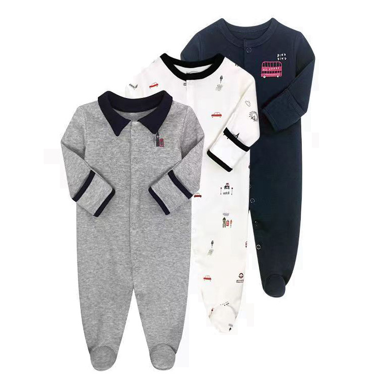 外贸童装春秋款宝宝连体衣长袖包脚爬服睡衣新生婴儿礼盒跨境专供