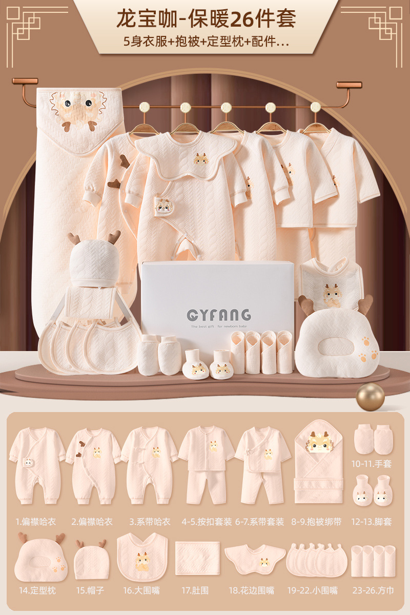 龙年初生婴儿礼盒新生儿衣服秋冬纯棉套装男女宝宝满月用品大全