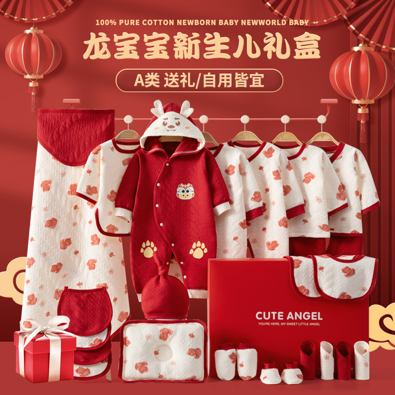 龙年新生婴儿衣服礼盒夏季纯棉出生兔宝宝套装初生薄款的儿见