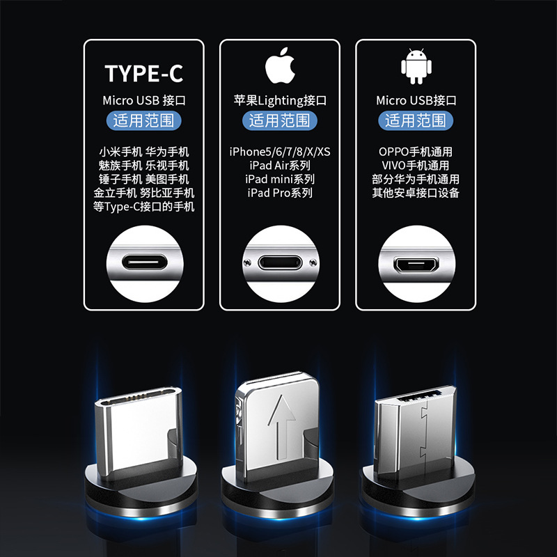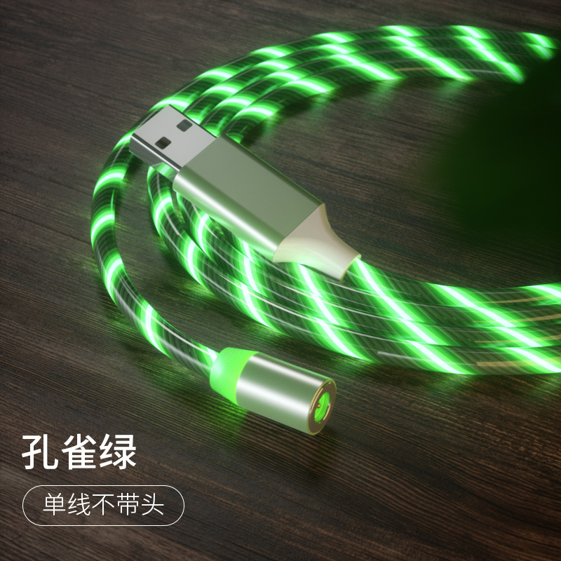 发光磁吸数据线三合一适用苹果安卓华为手机七彩流光充电线一拖三