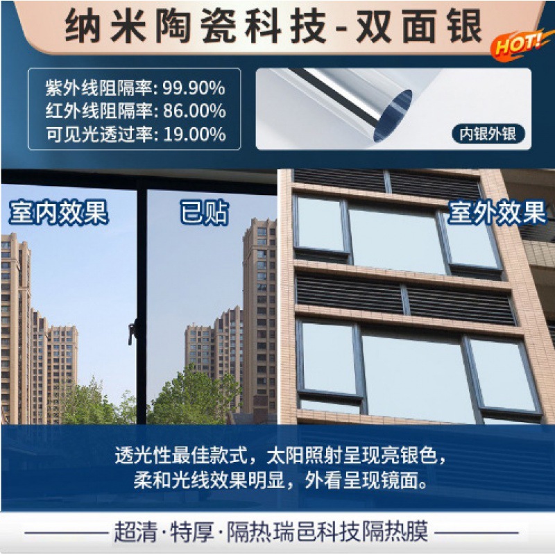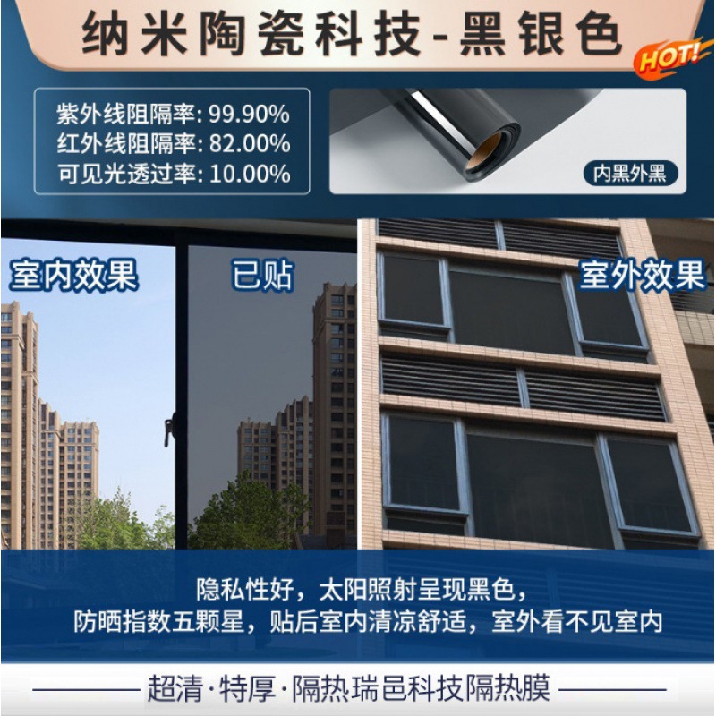 窗户玻璃贴膜单向透视防晒隔热膜家用阳台阳光房遮光玻璃贴纸防窥