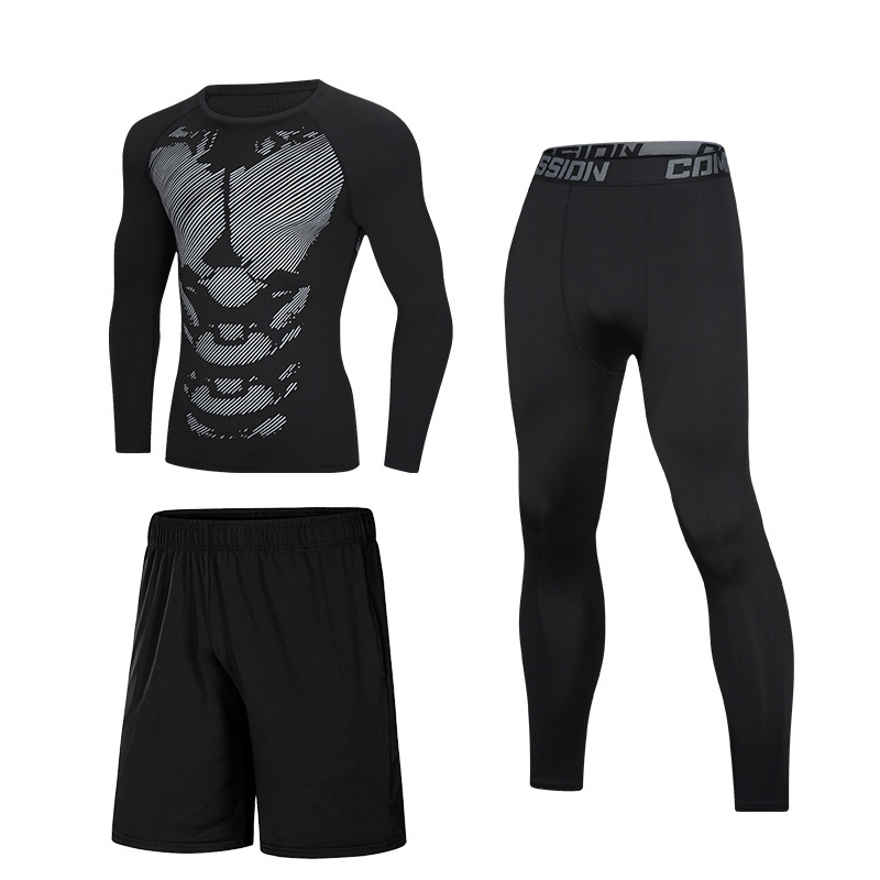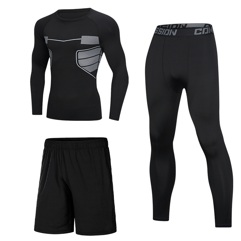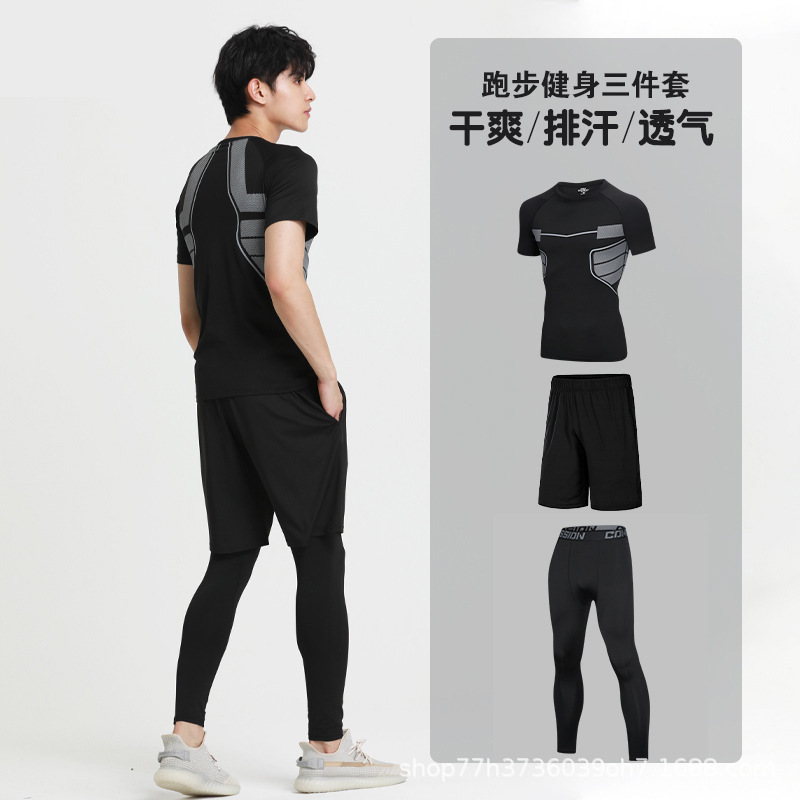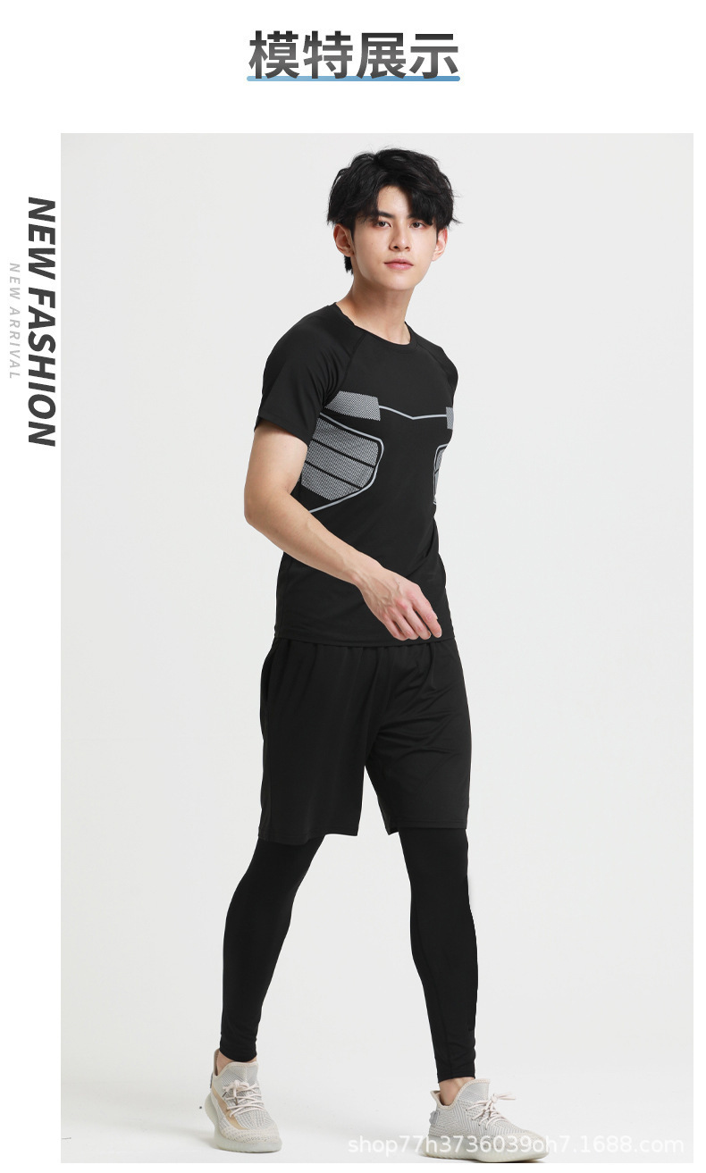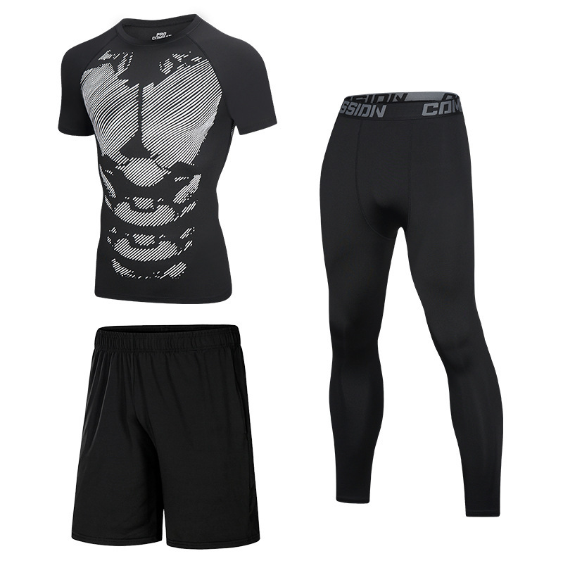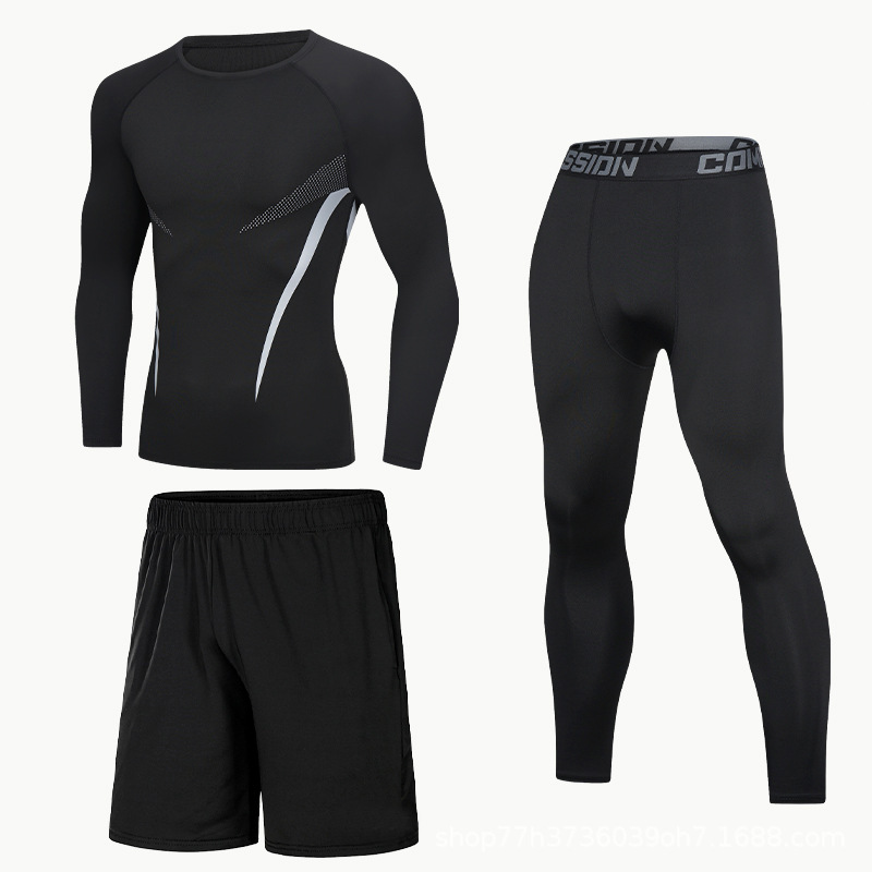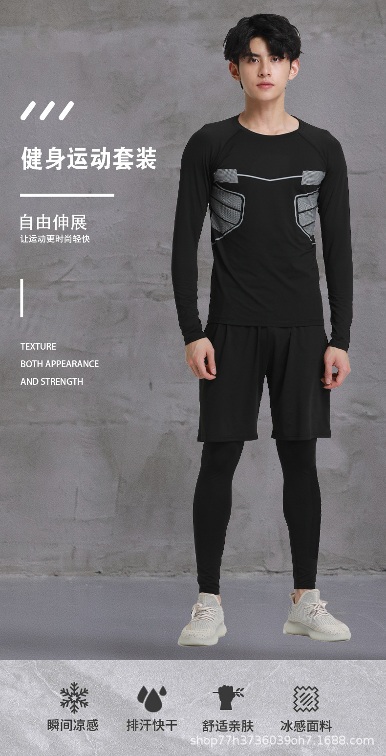 健身服男士二三件套装 运动紧身速干弹力跑步服骑行篮球足球打底