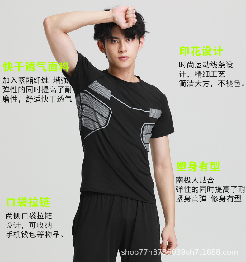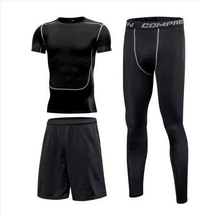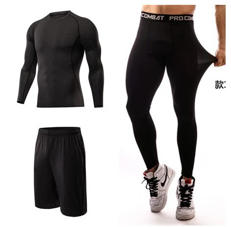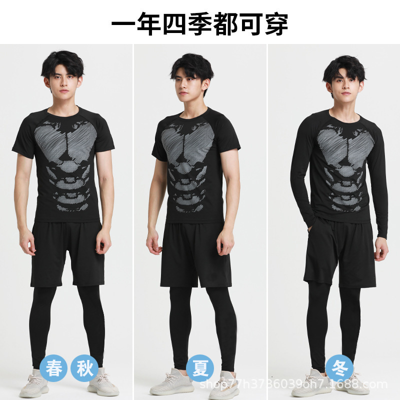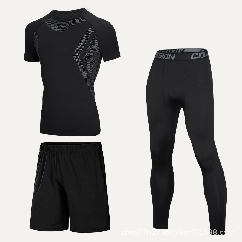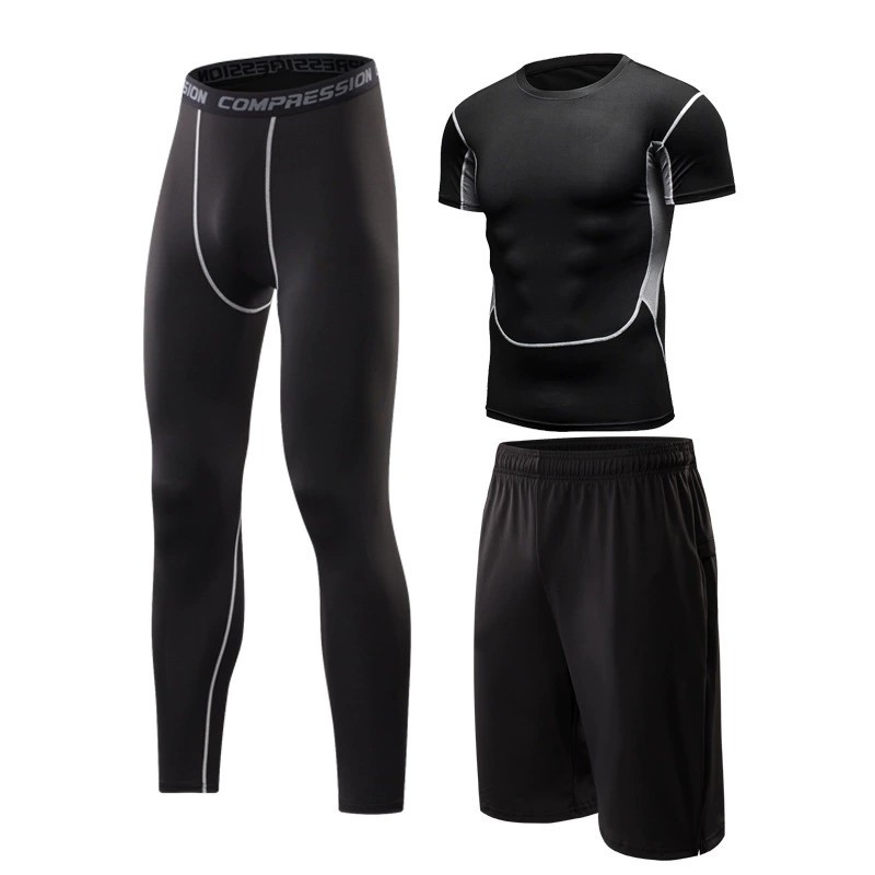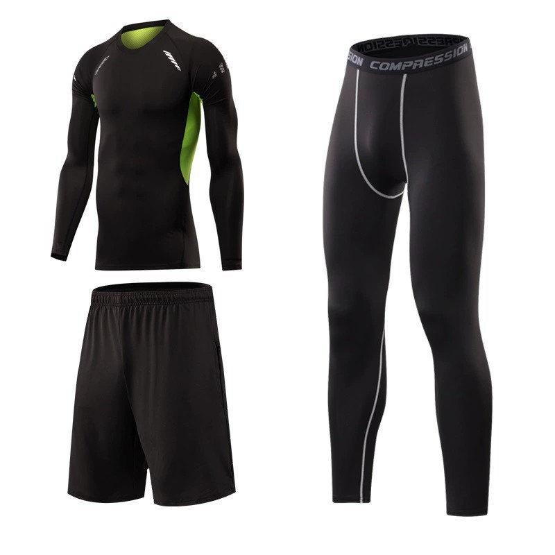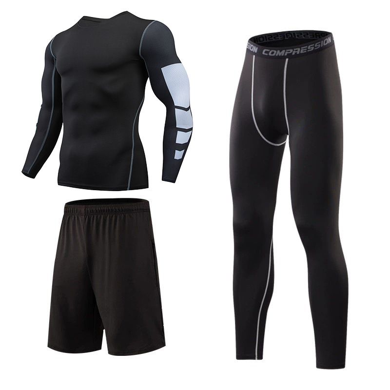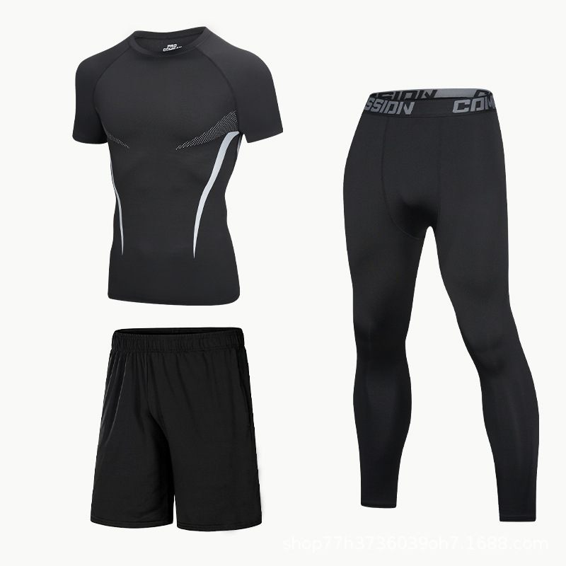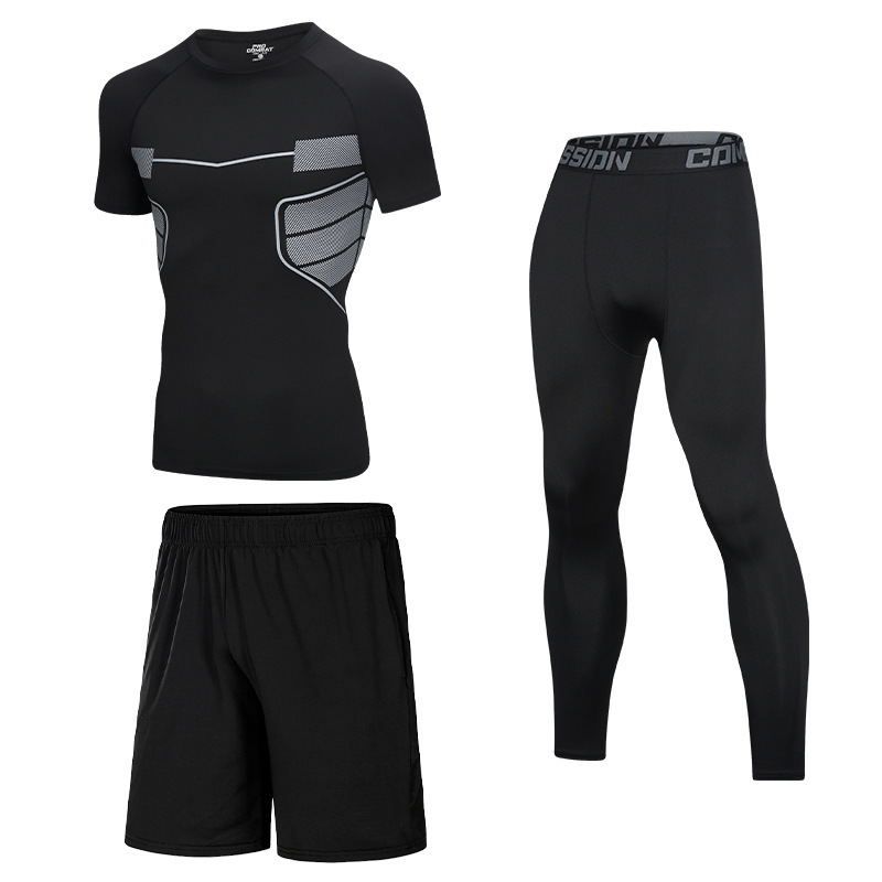 健身服男士二三件套装 运动紧身速干弹力跑步服骑行篮球足球打底