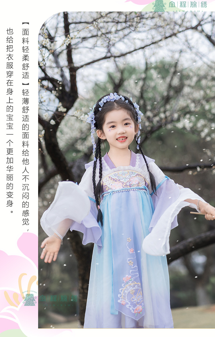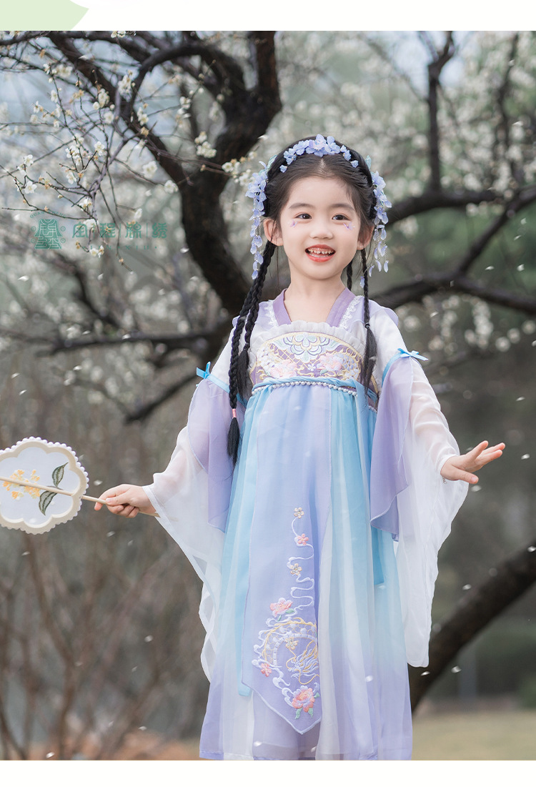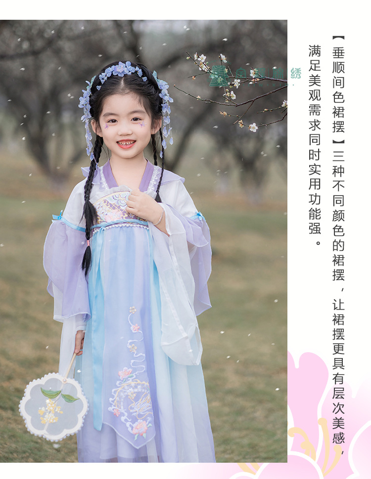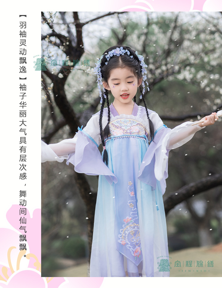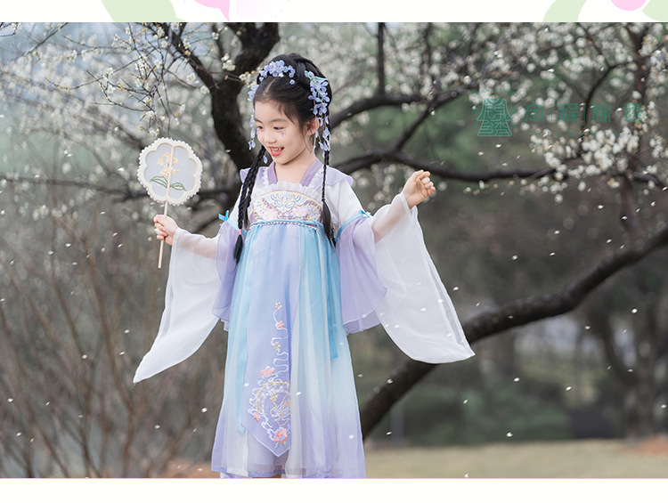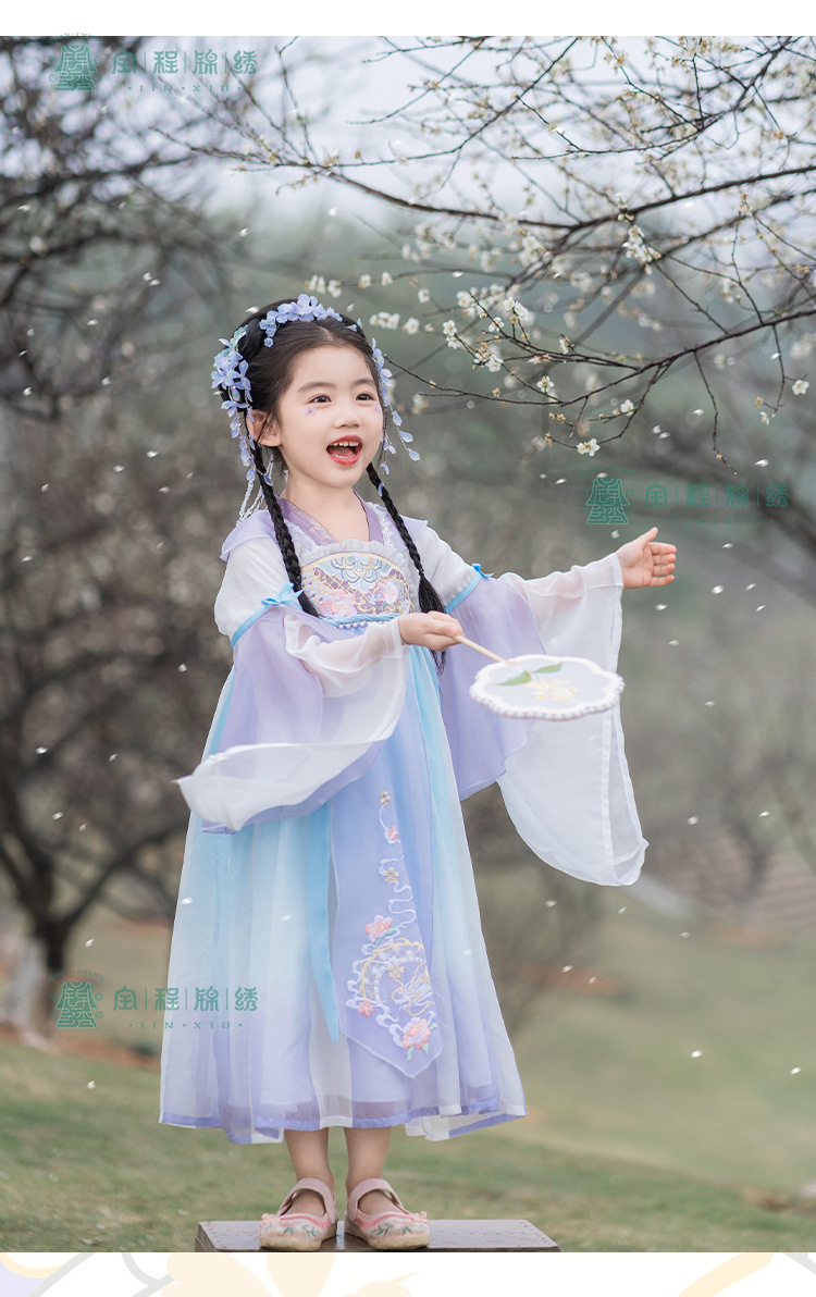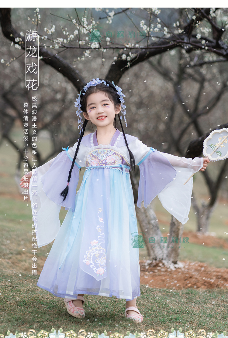 2024春款新品儿童汉服中大童古装长袖连衣裙女童国风襦裙一件代发