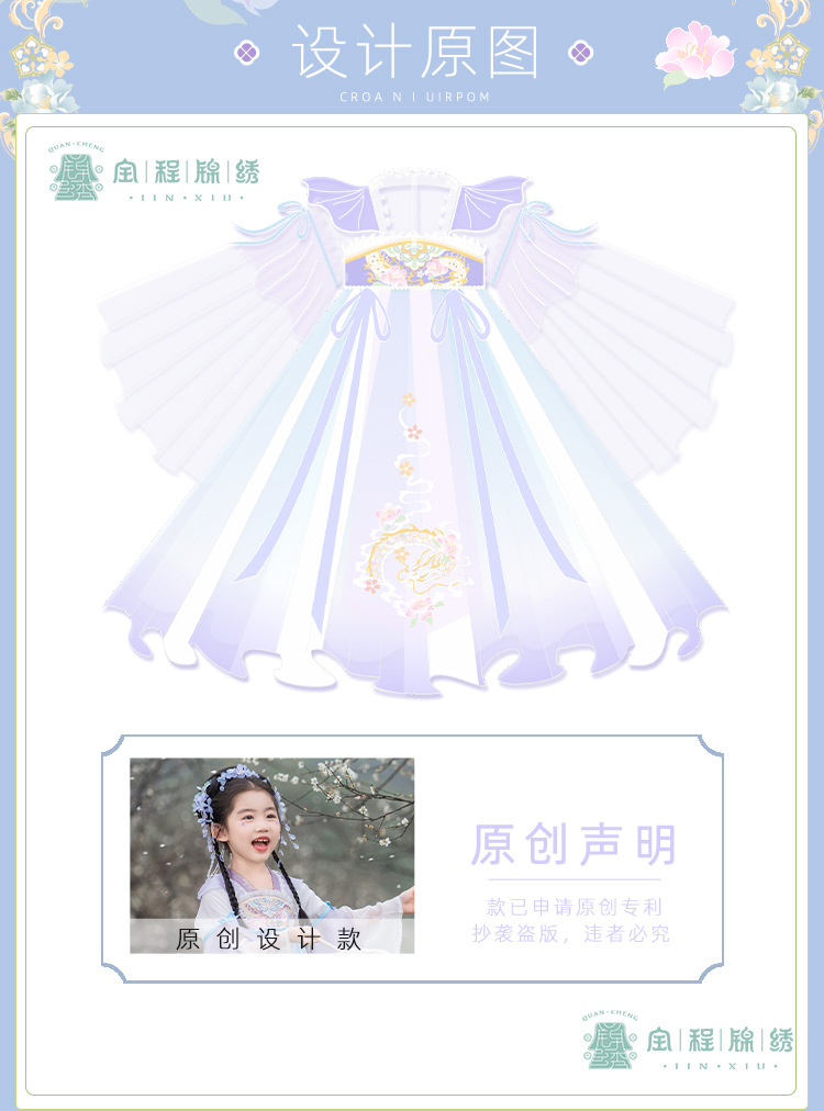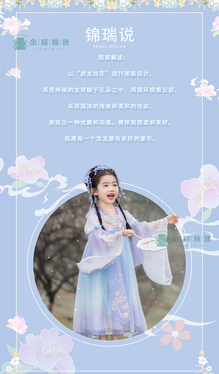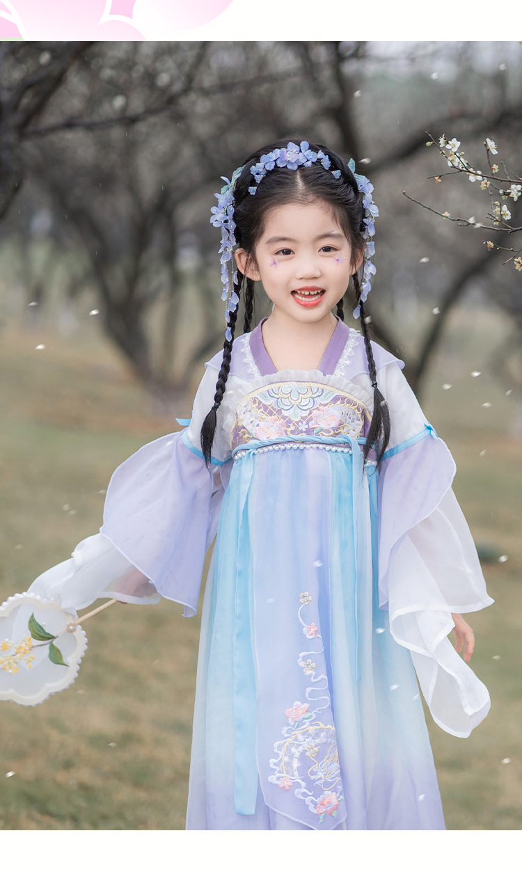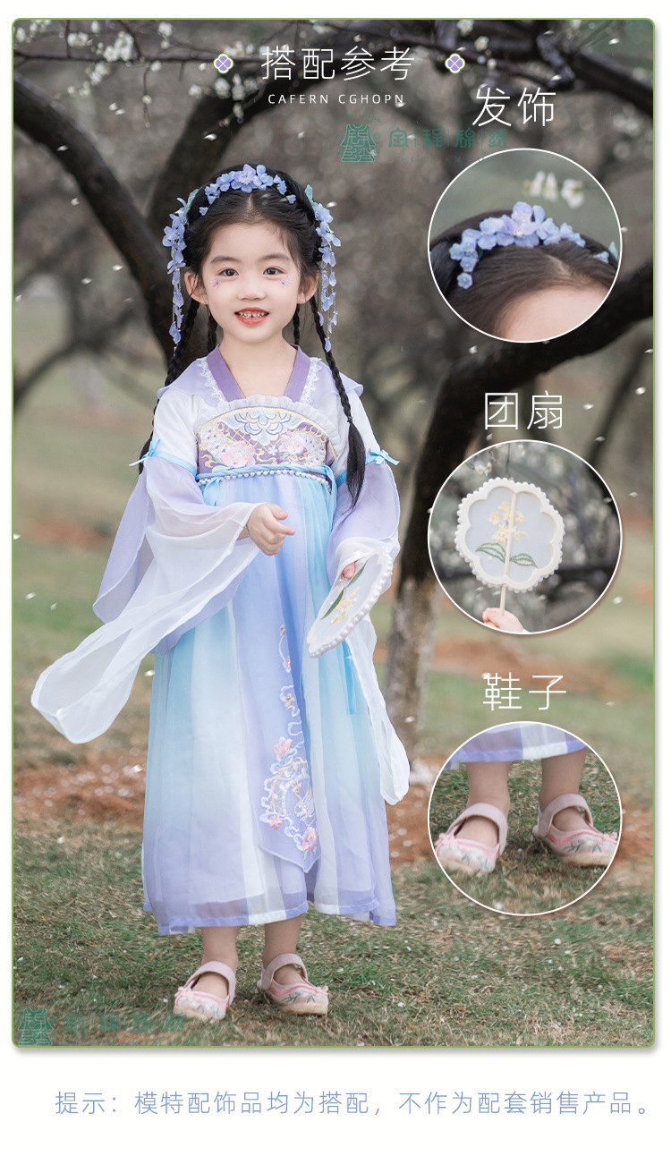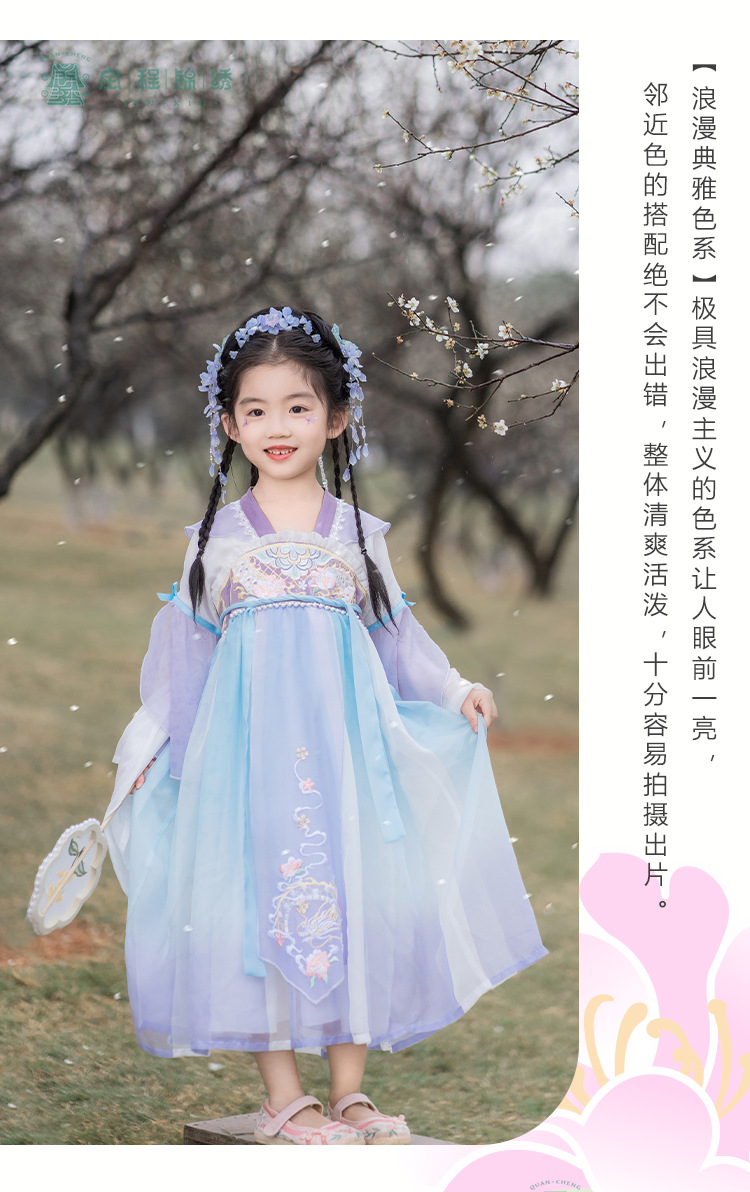 2024春款新品儿童汉服中大童古装长袖连衣裙女童国风襦裙一件代发