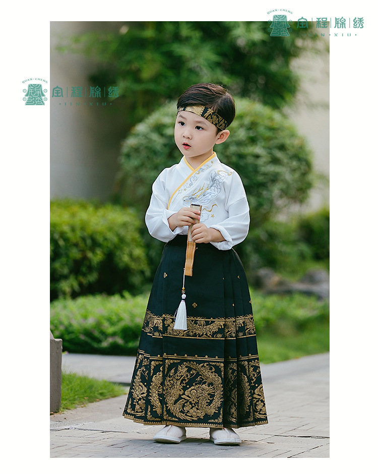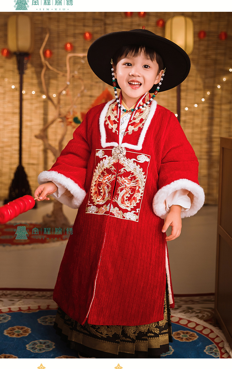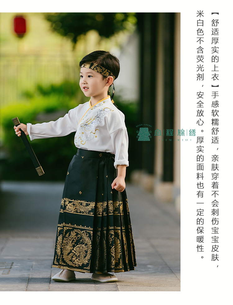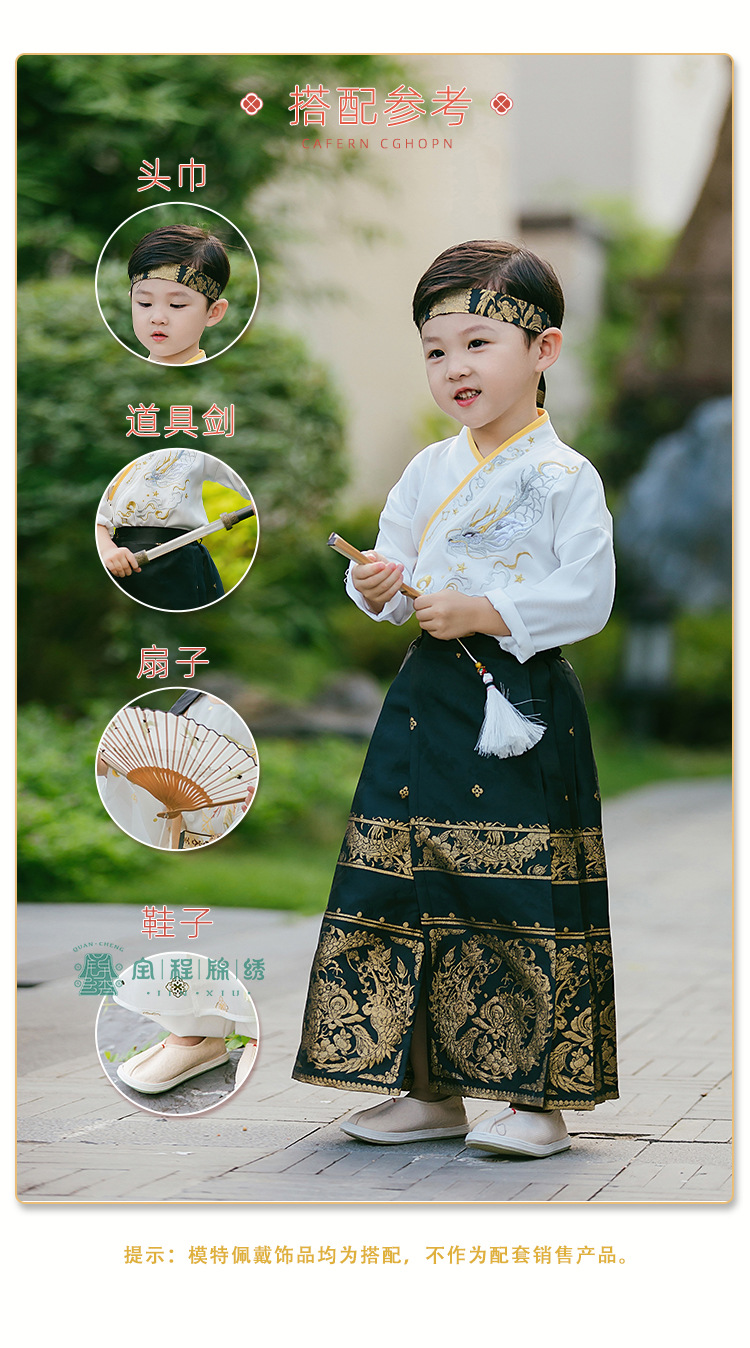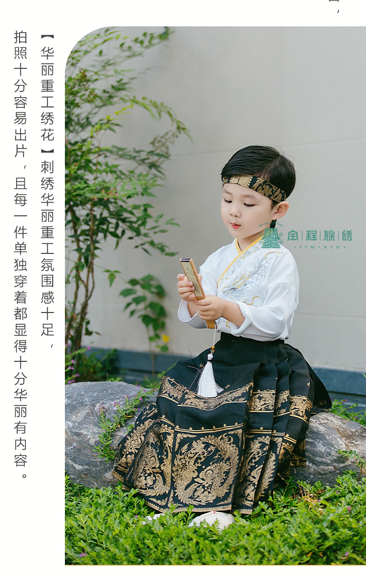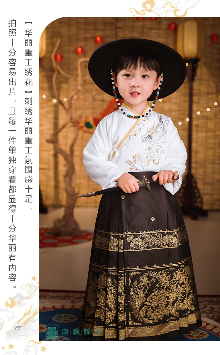 男童汉服马面裙改良秋冬日常明制古装高端中大童儿童套装一件代发