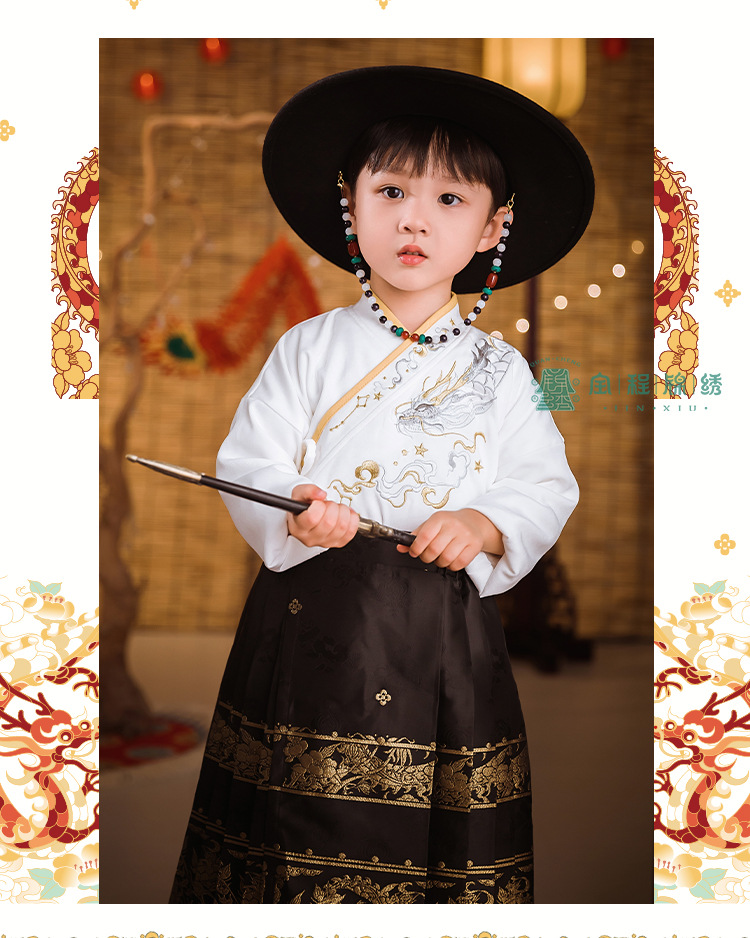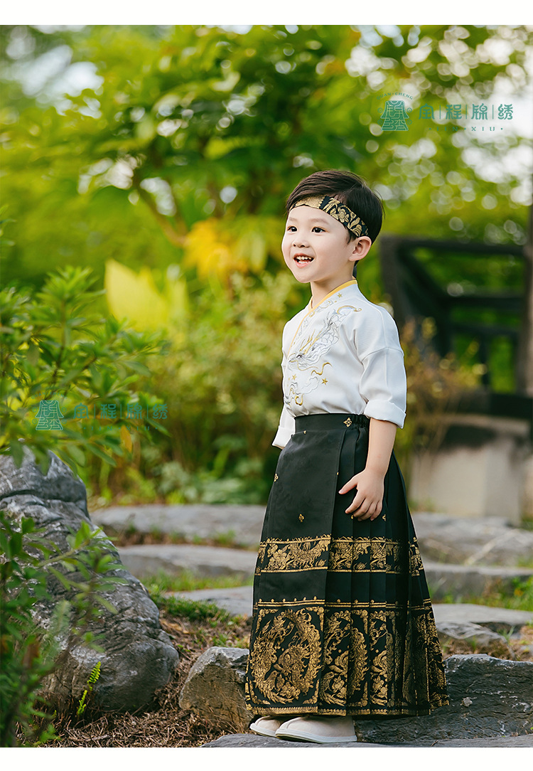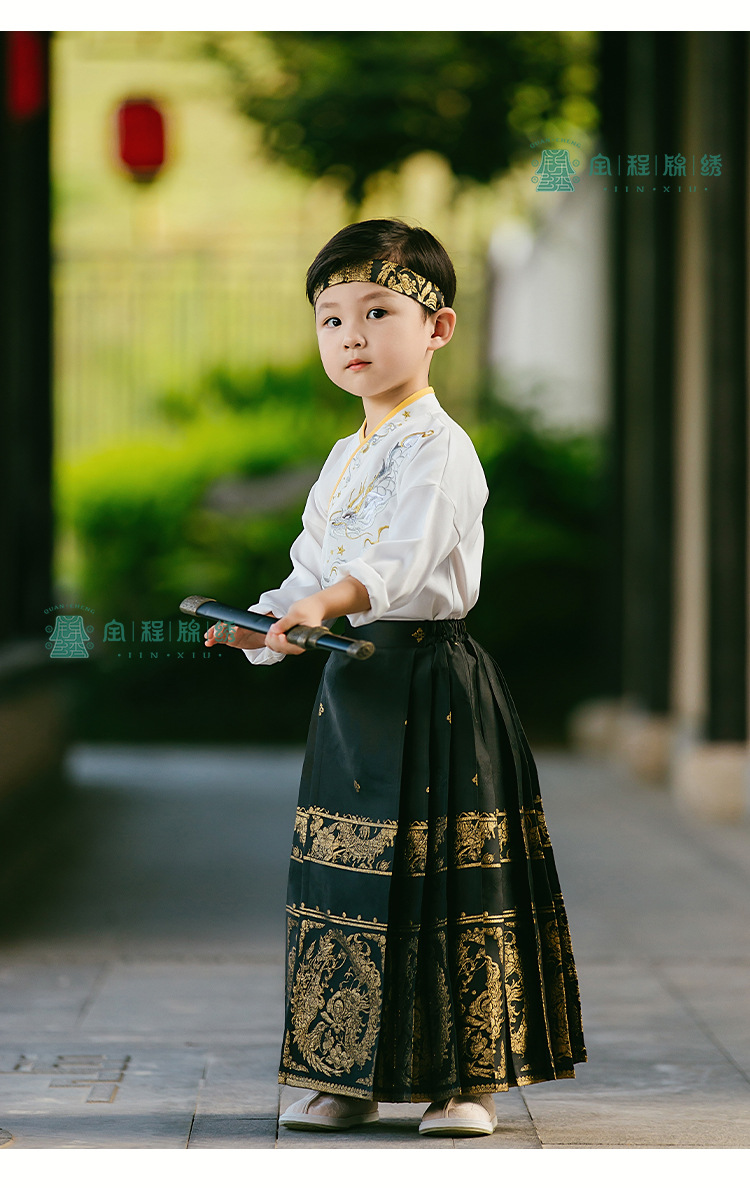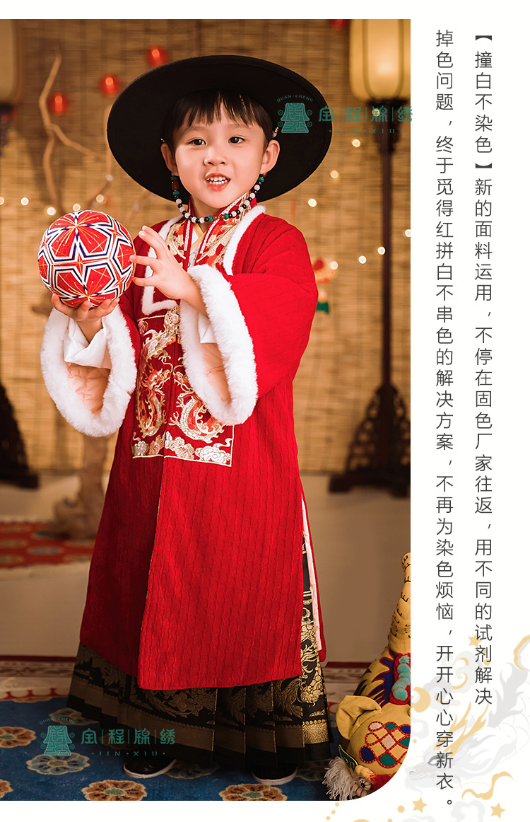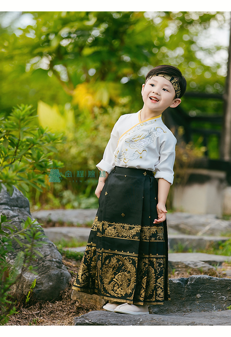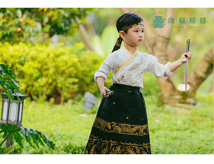男童汉服马面裙改良秋冬日常明制古装高端中大童儿童套装一件代发