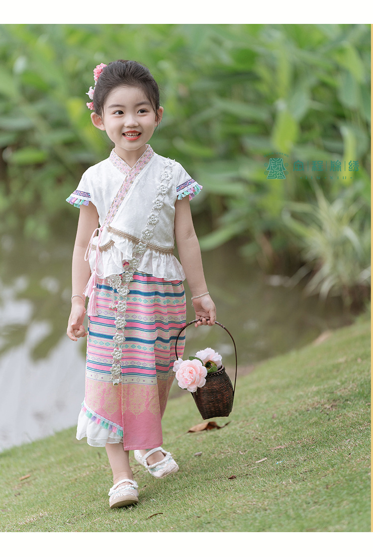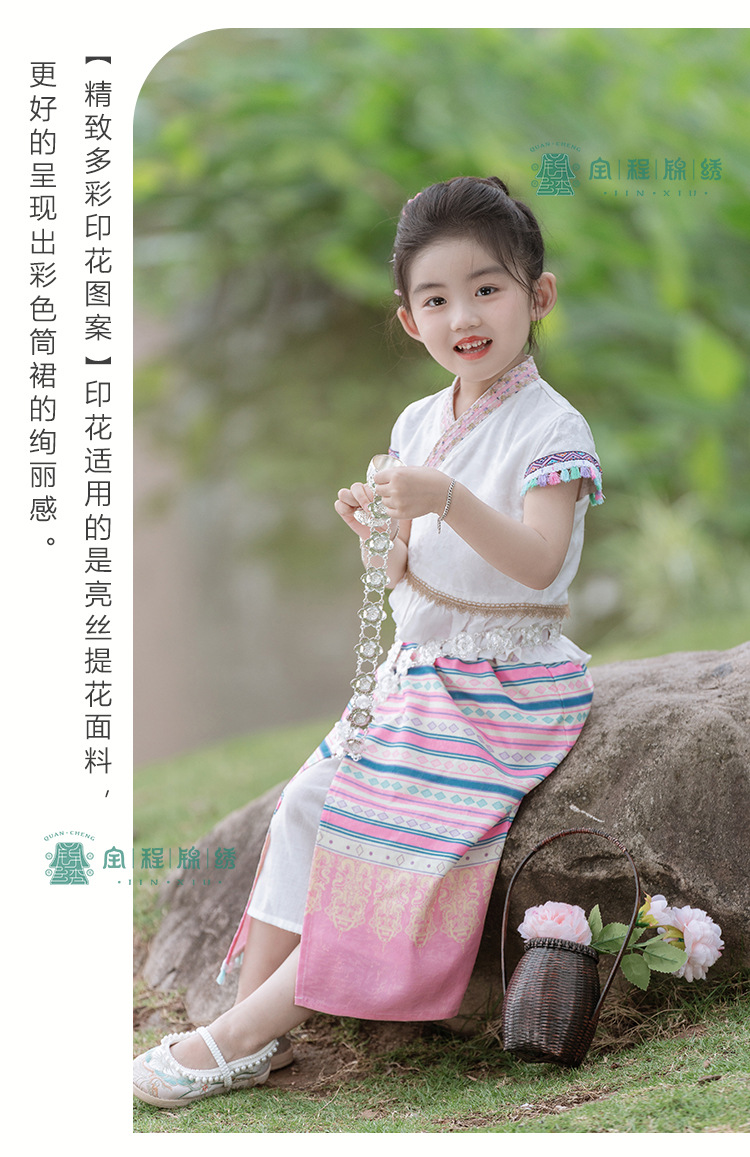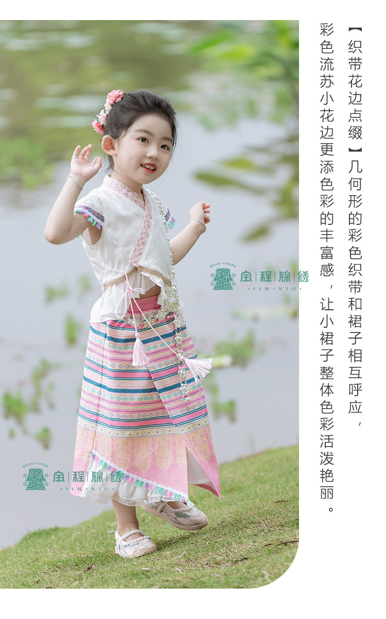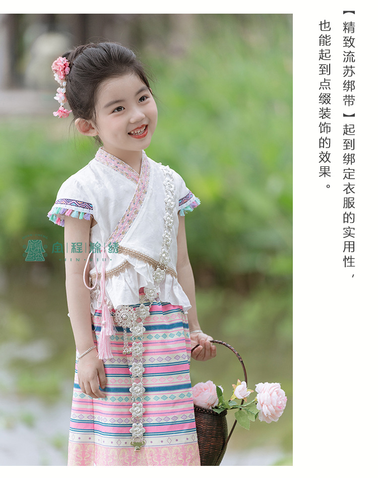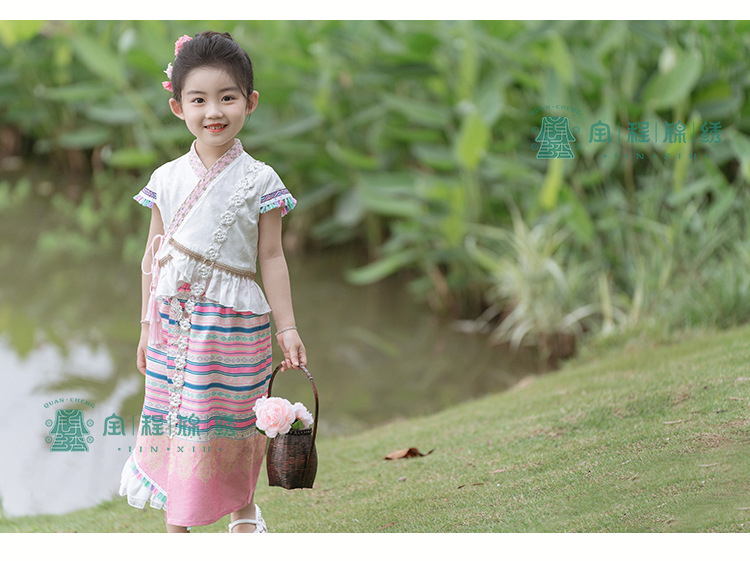 夏季条纹童裙儿童汉服国风童装小女孩民族风套装幼儿园表演服批发
