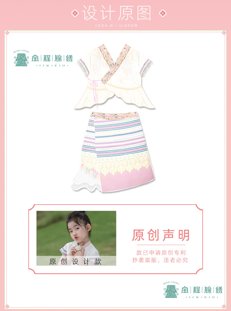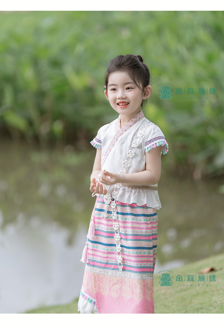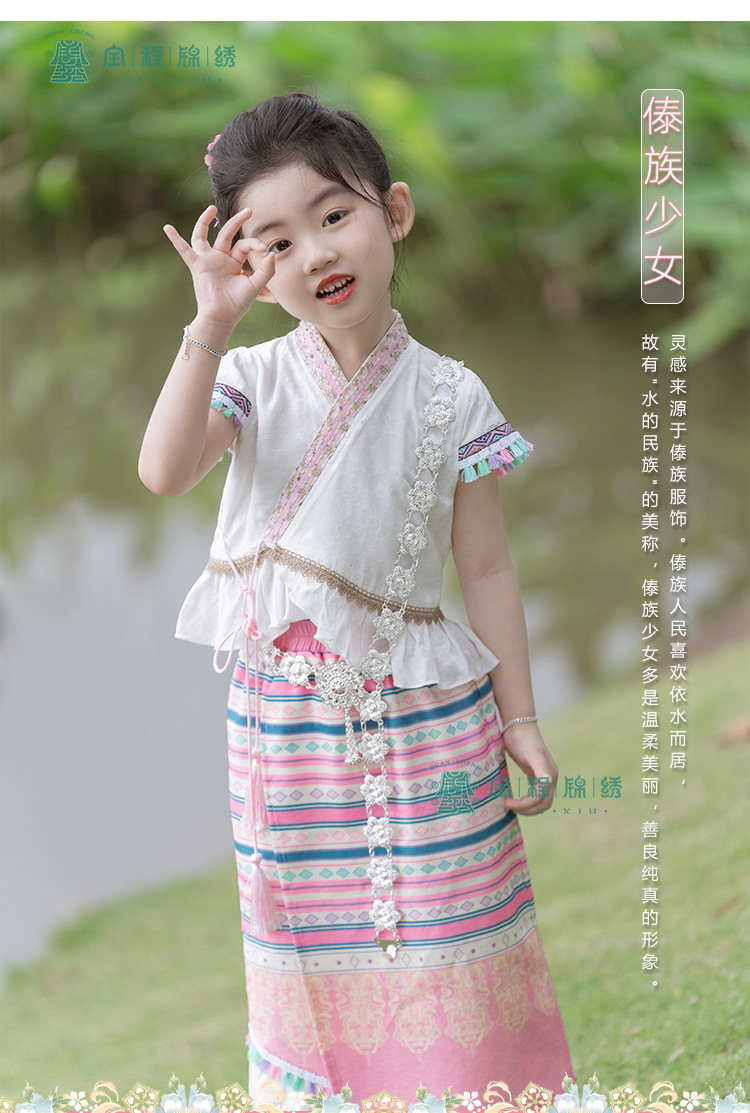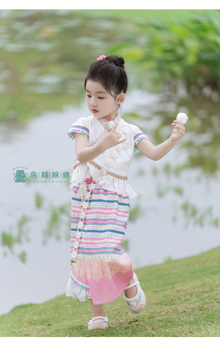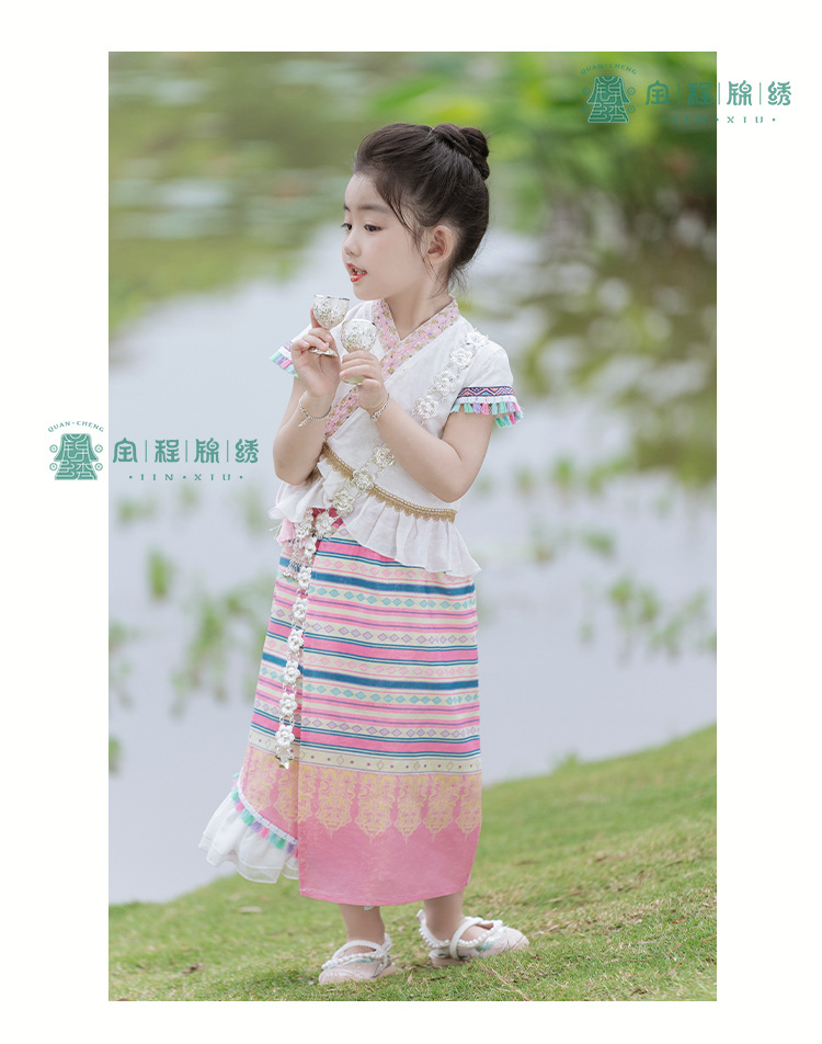 夏季条纹童裙儿童汉服国风童装小女孩民族风套装幼儿园表演服批发