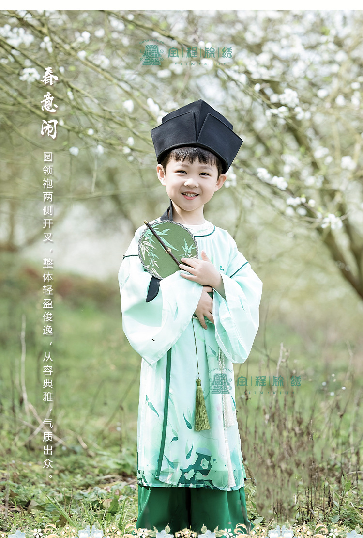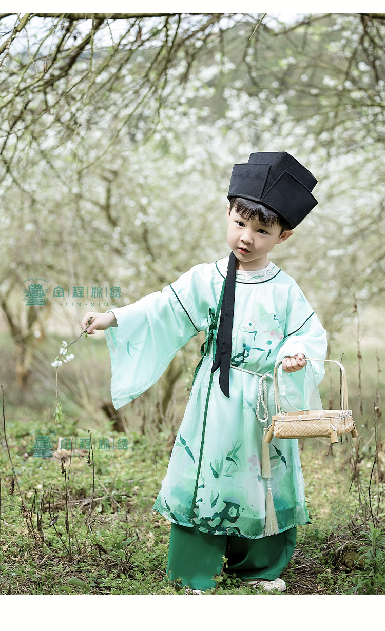 2024春款新品男童汉服国风两件套儿童长袖中国风圆领改良古装批发