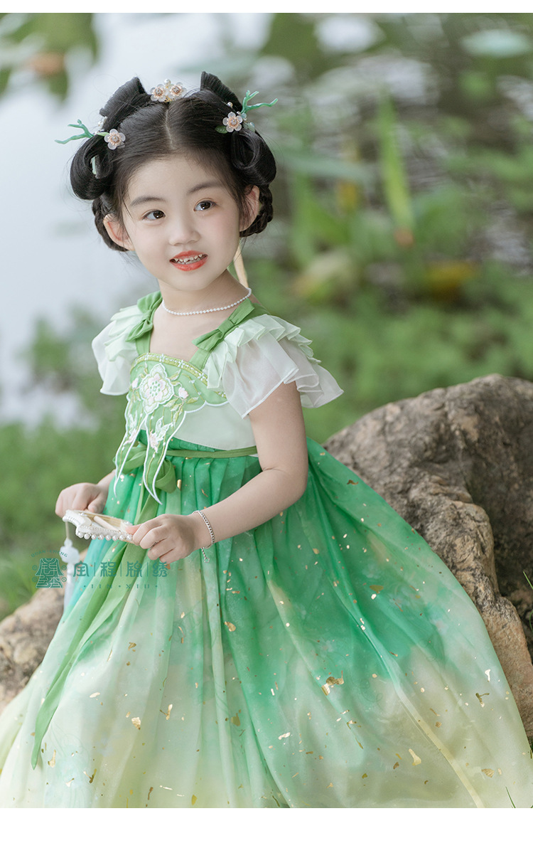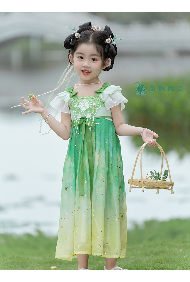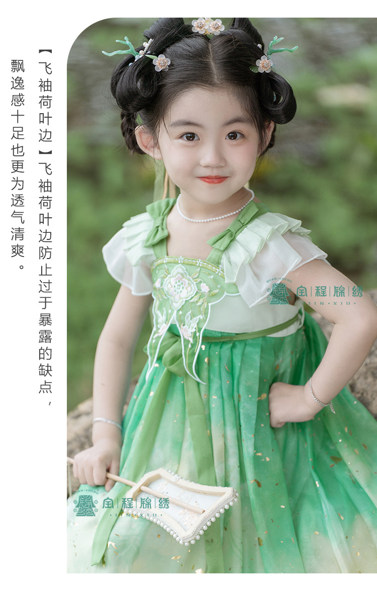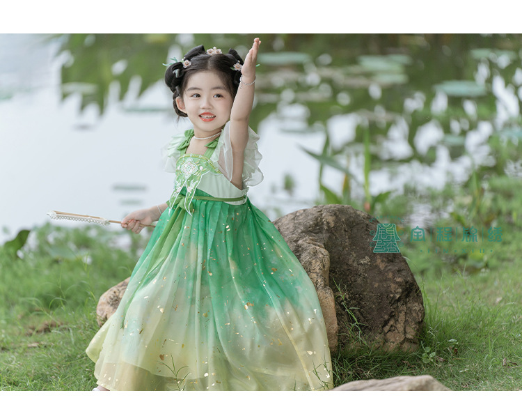 夏新款古风连衣裙童装汉服女童古装儿童高级公主襦裙唐装一件代发