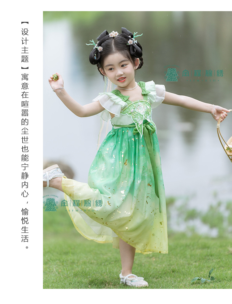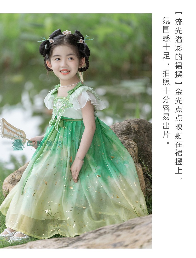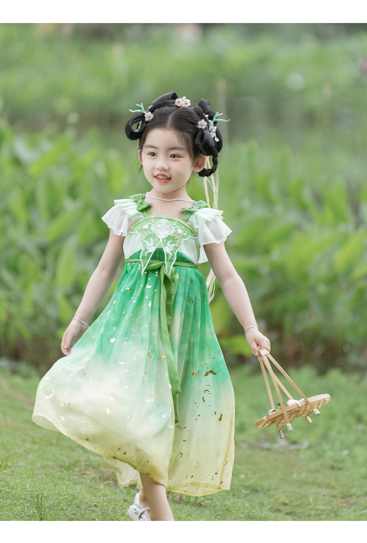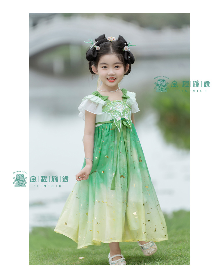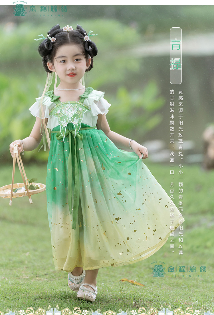 夏新款古风连衣裙童装汉服女童古装儿童高级公主襦裙唐装一件代发