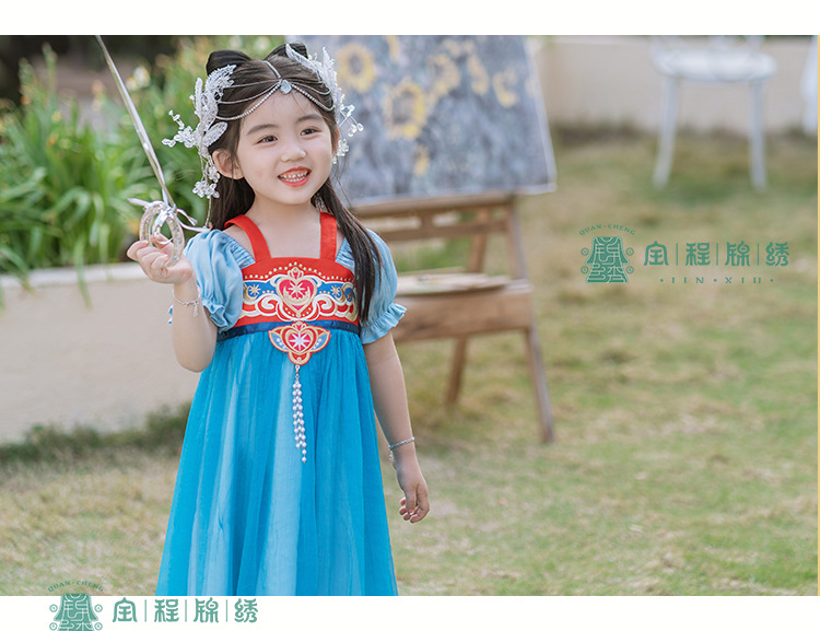 夏天新款改良女汉服童装儿童公主裙宝宝连衣裙大童中式舞蹈服批发